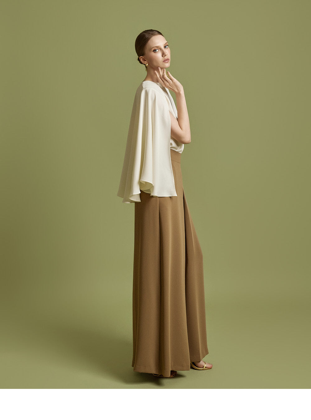 The 174cm model is wearing size ONE in IVORY.