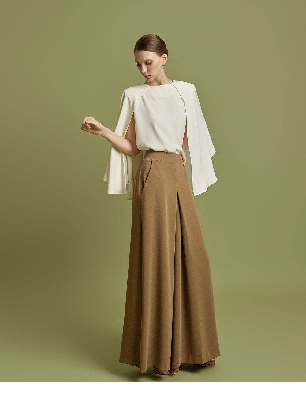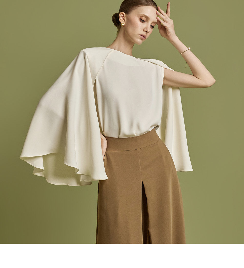 This cape blouse has a casual vibe.