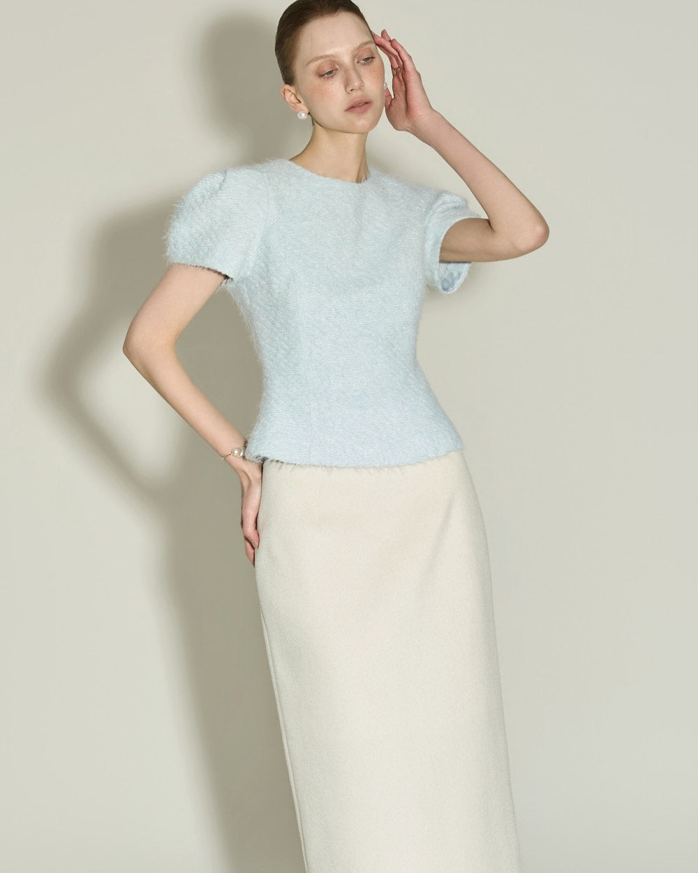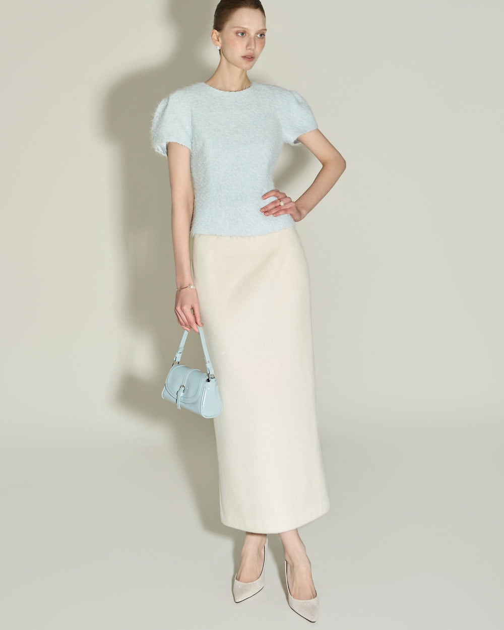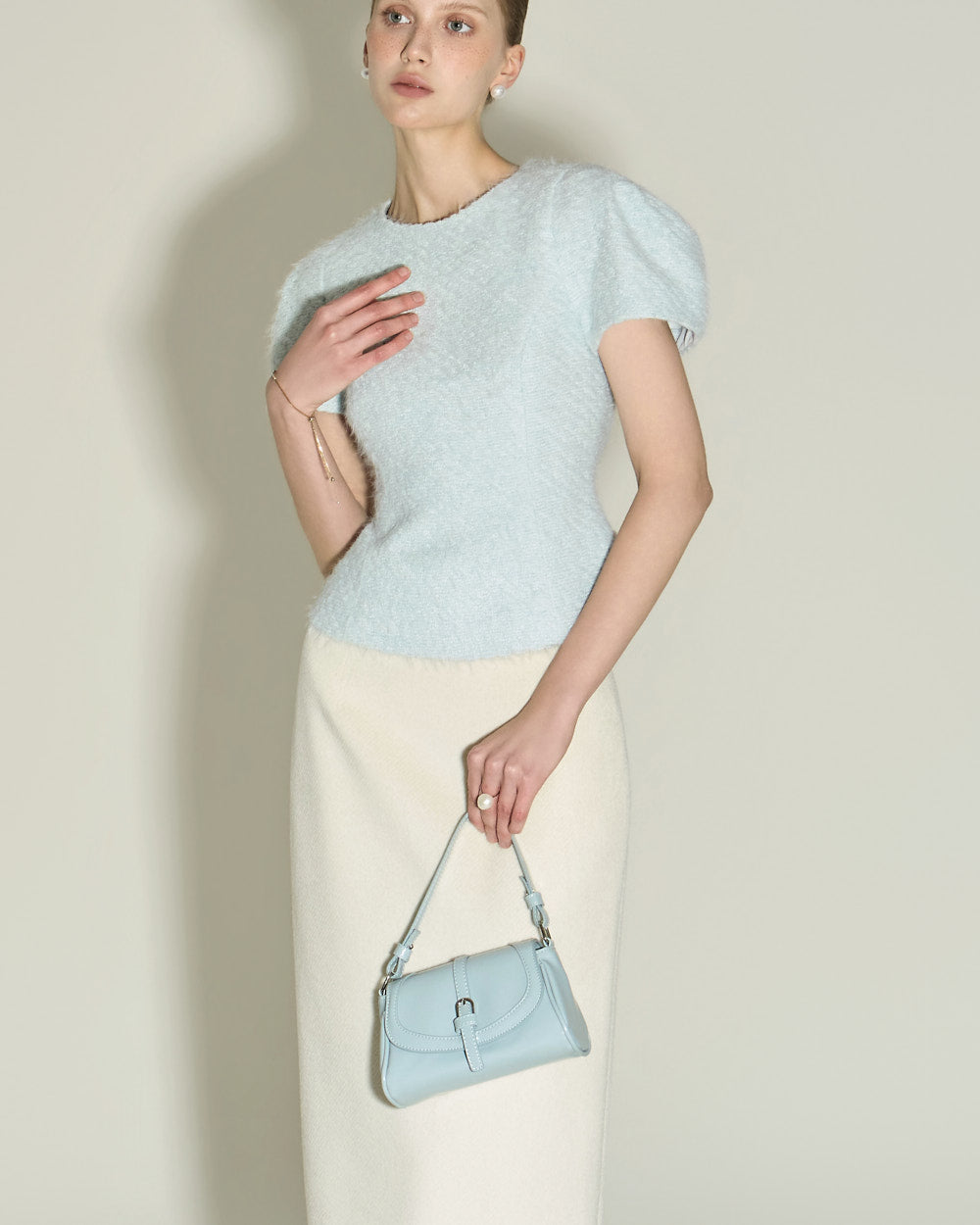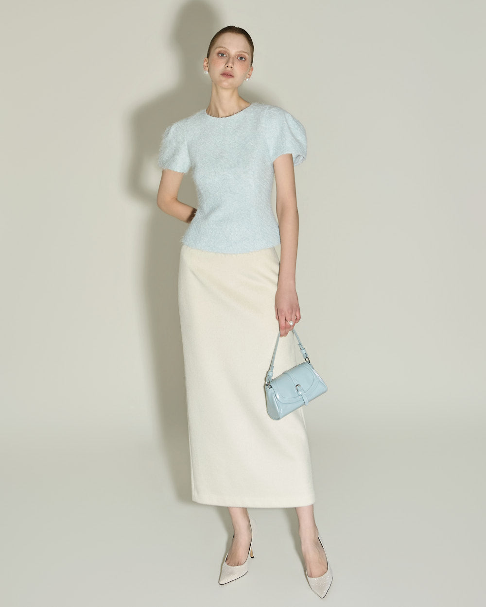Model is 174cm tall and wearing size S in SKY BLUE.