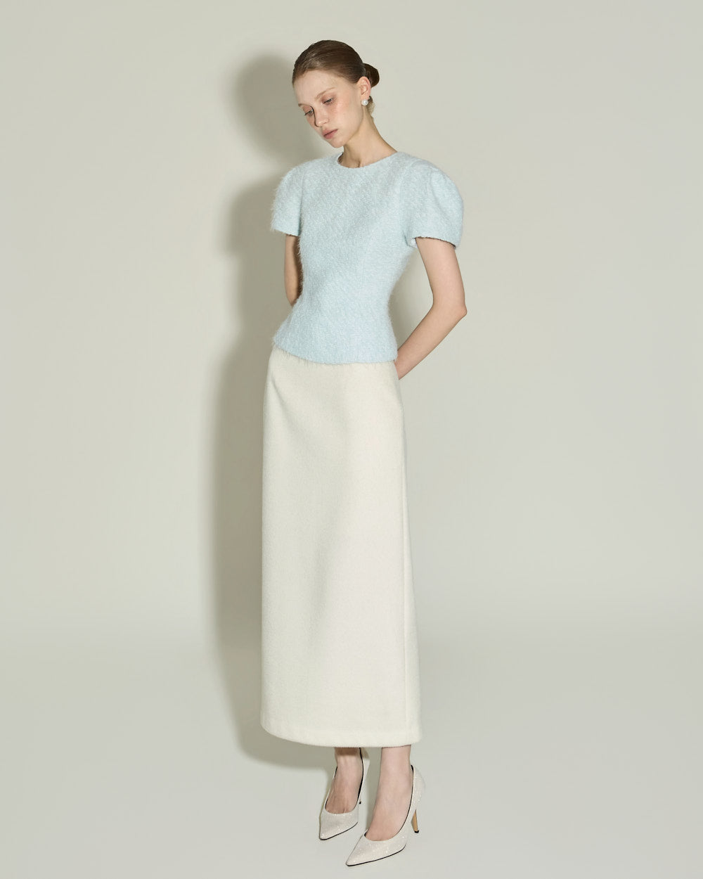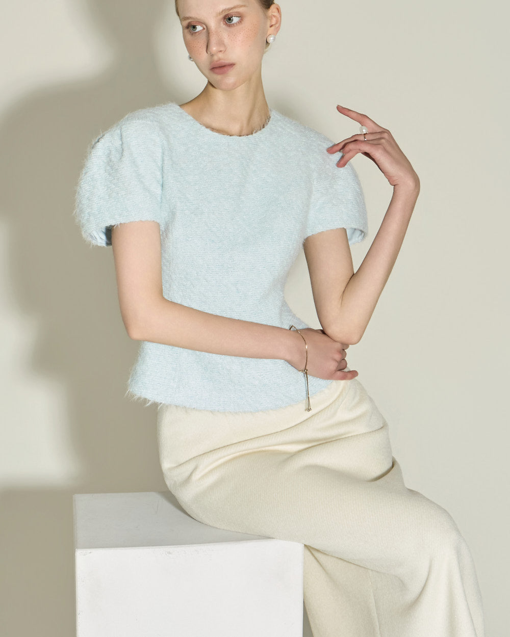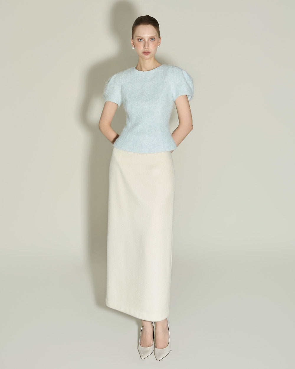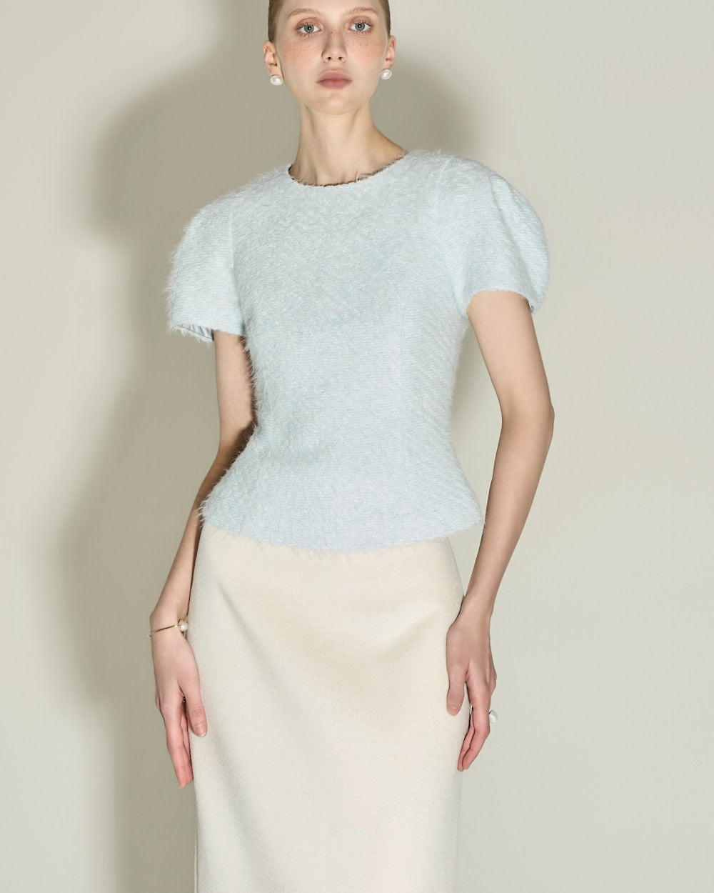 Model is 174cm tall and wearing size S in SKY BLUE.