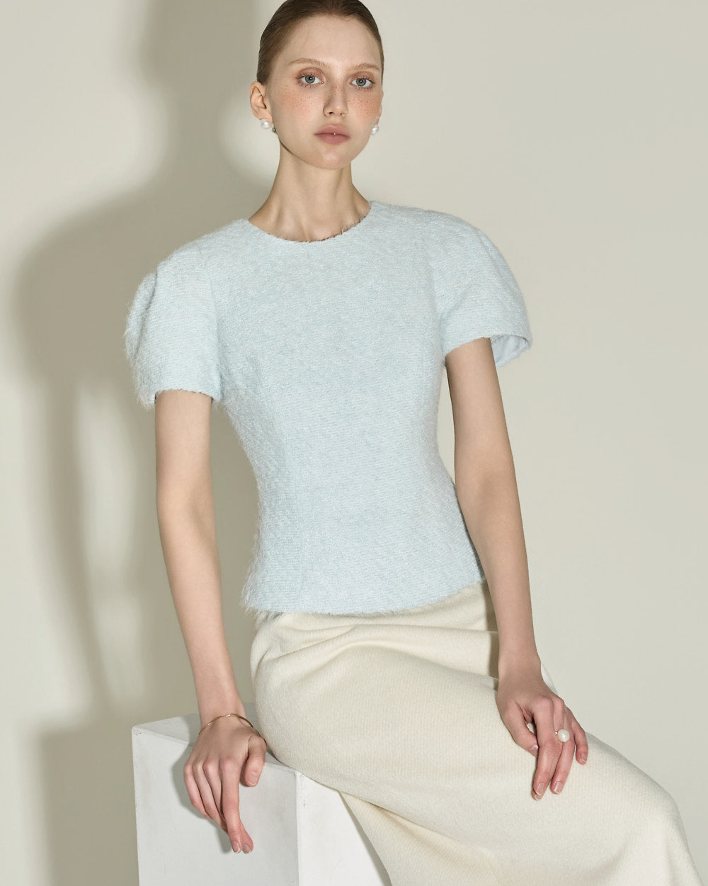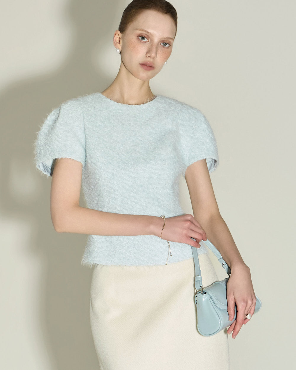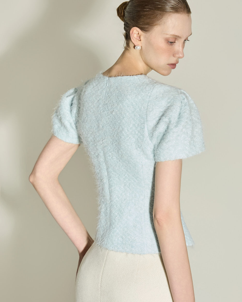 This boucle blouse has a casual vibe.