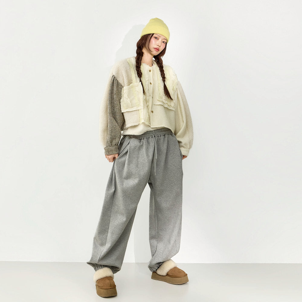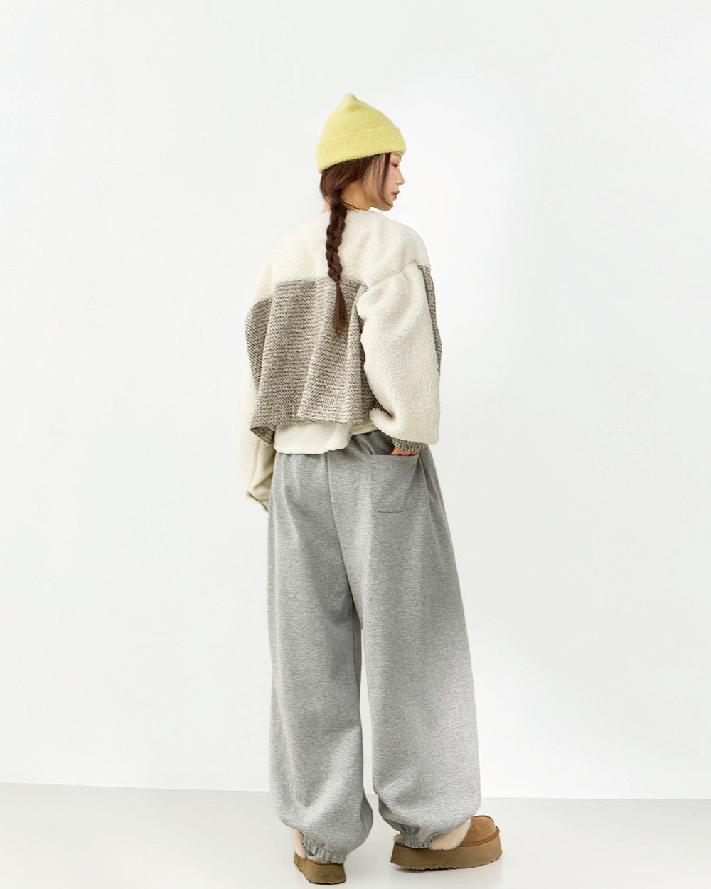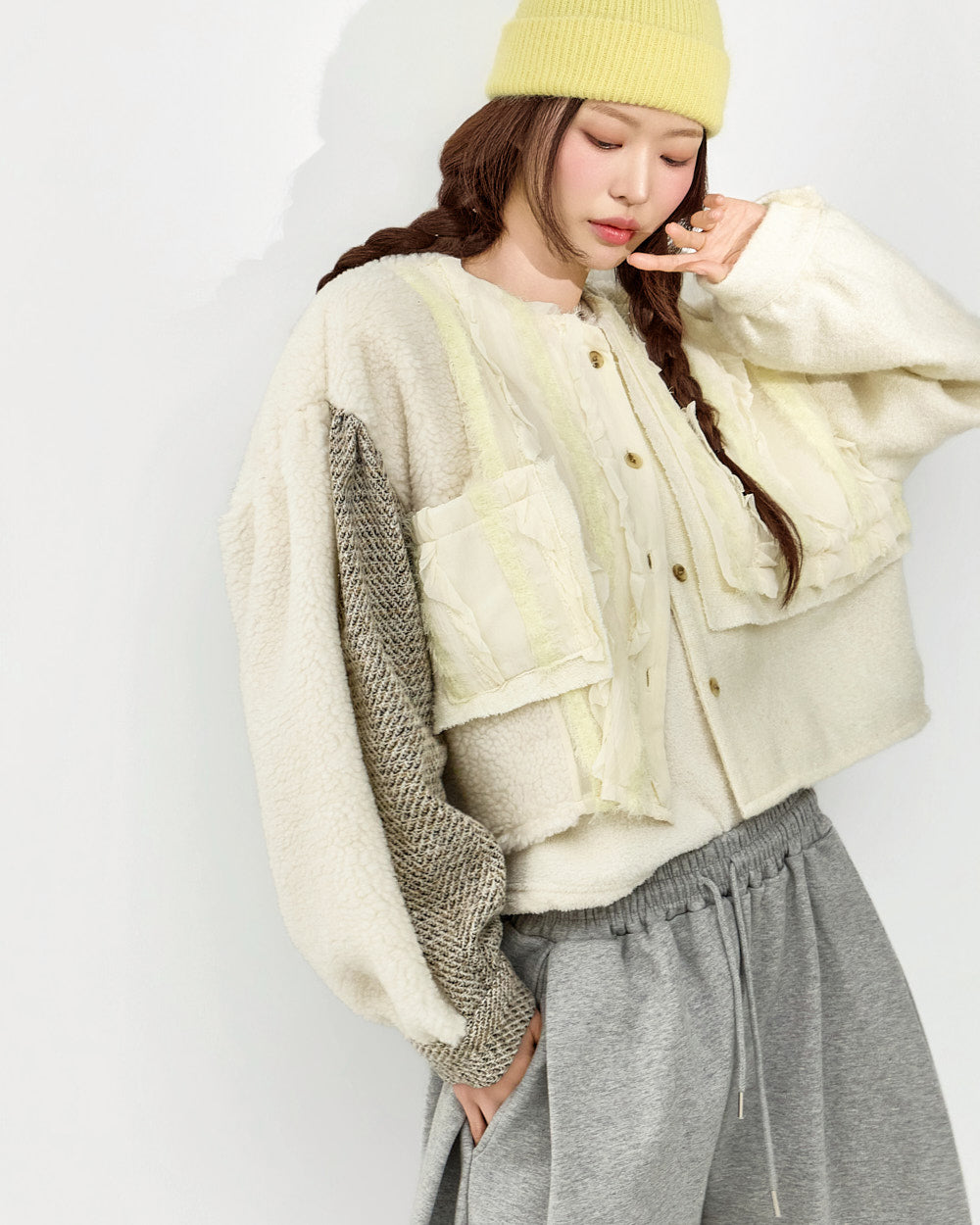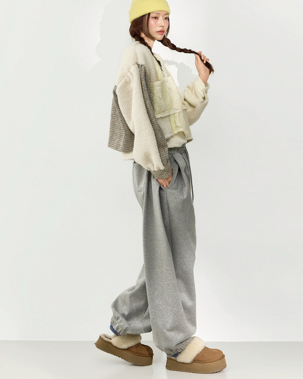 Made from a blend of polyester, wool, acrylic, and nylon,