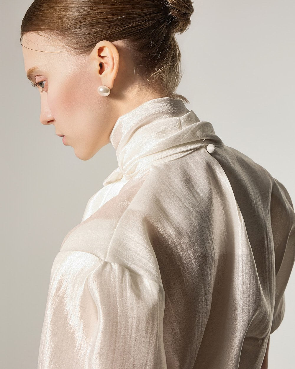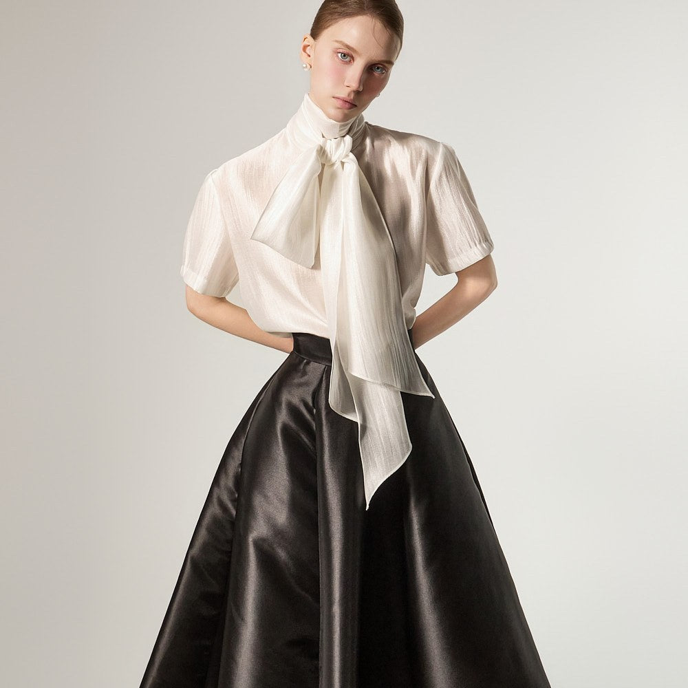 宽松的版型舒适垂坠,肩部的泡泡袖细节营造出蓬松的廓形。