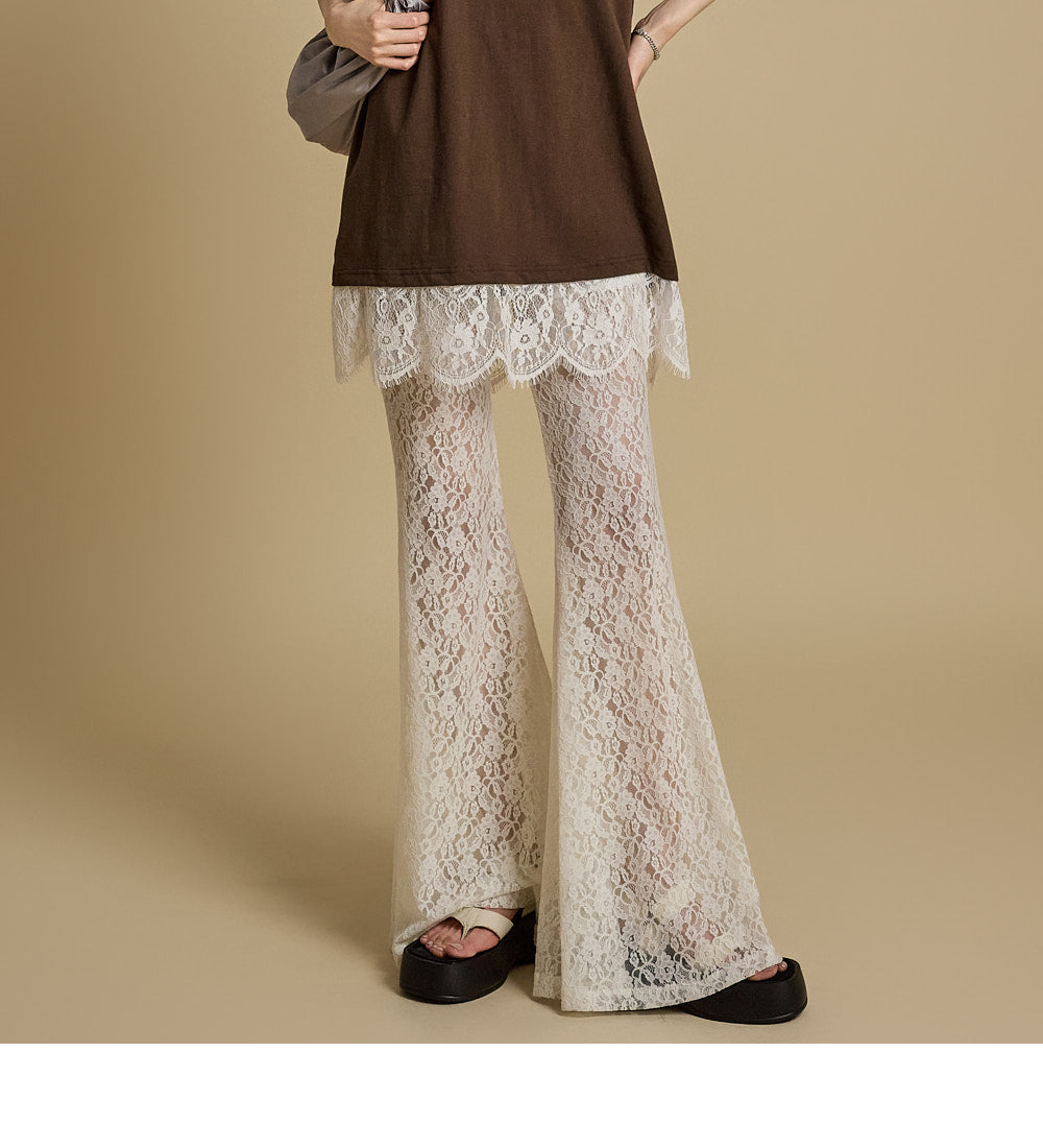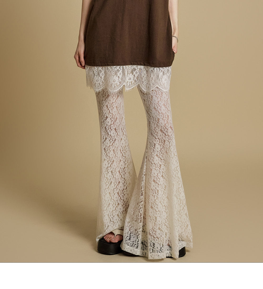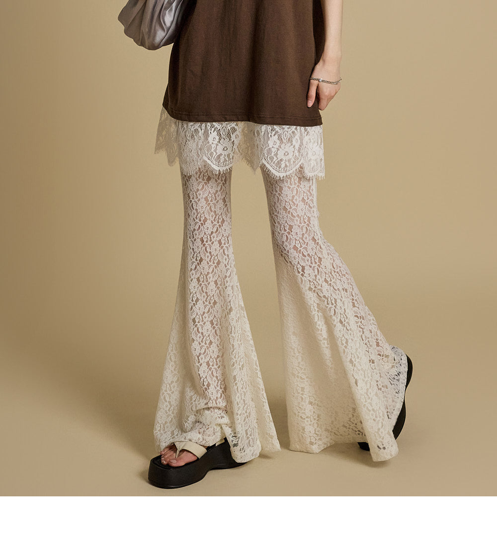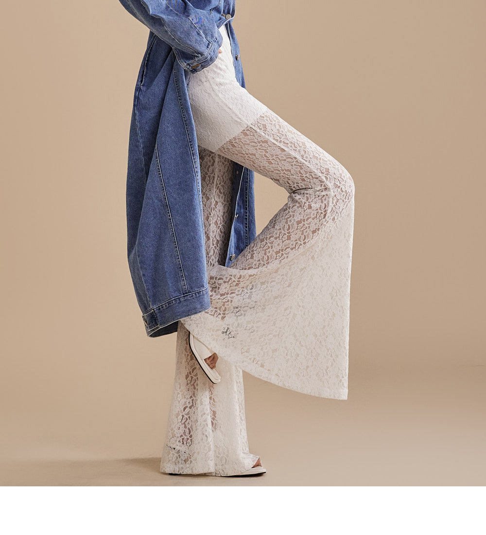 这些独特的蕾丝喇叭裤采用灵活的混纺面料制成