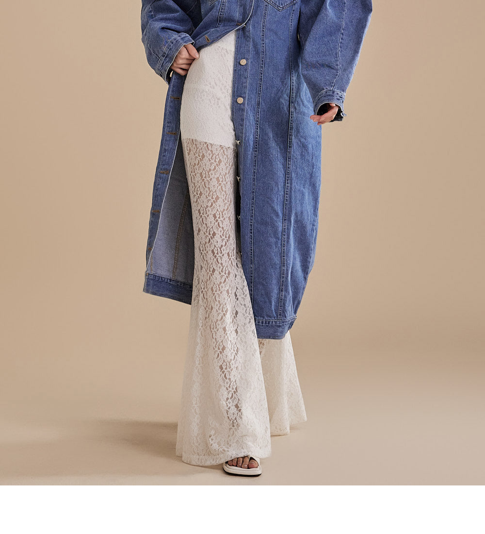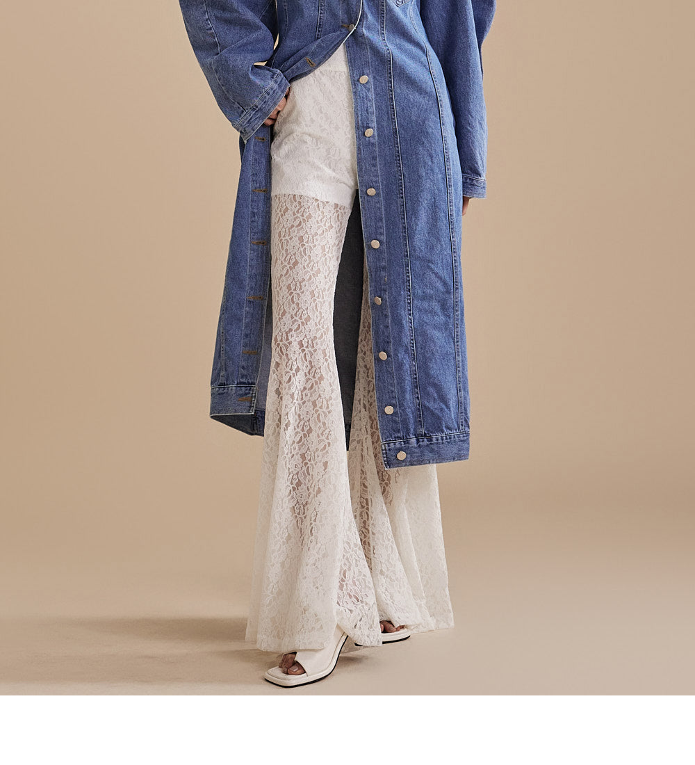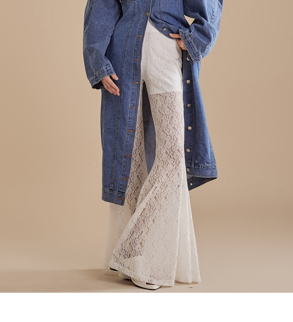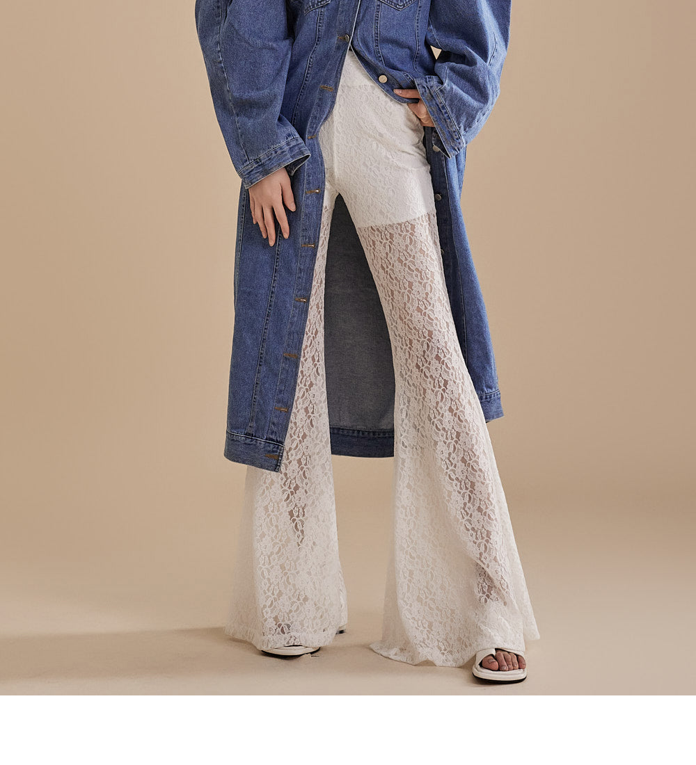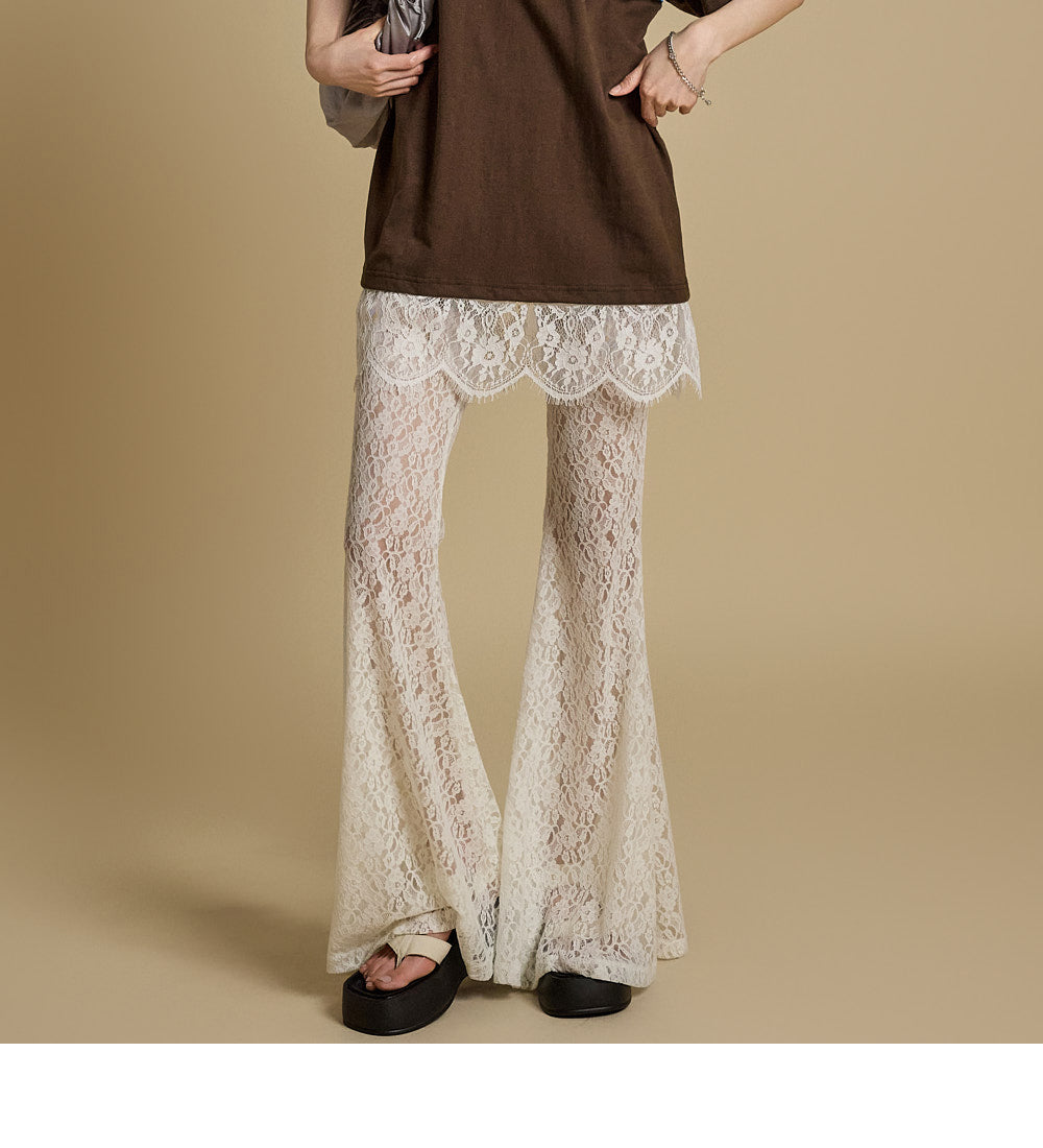 这些独特的蕾丝喇叭裤采用灵活的混纺面料制成