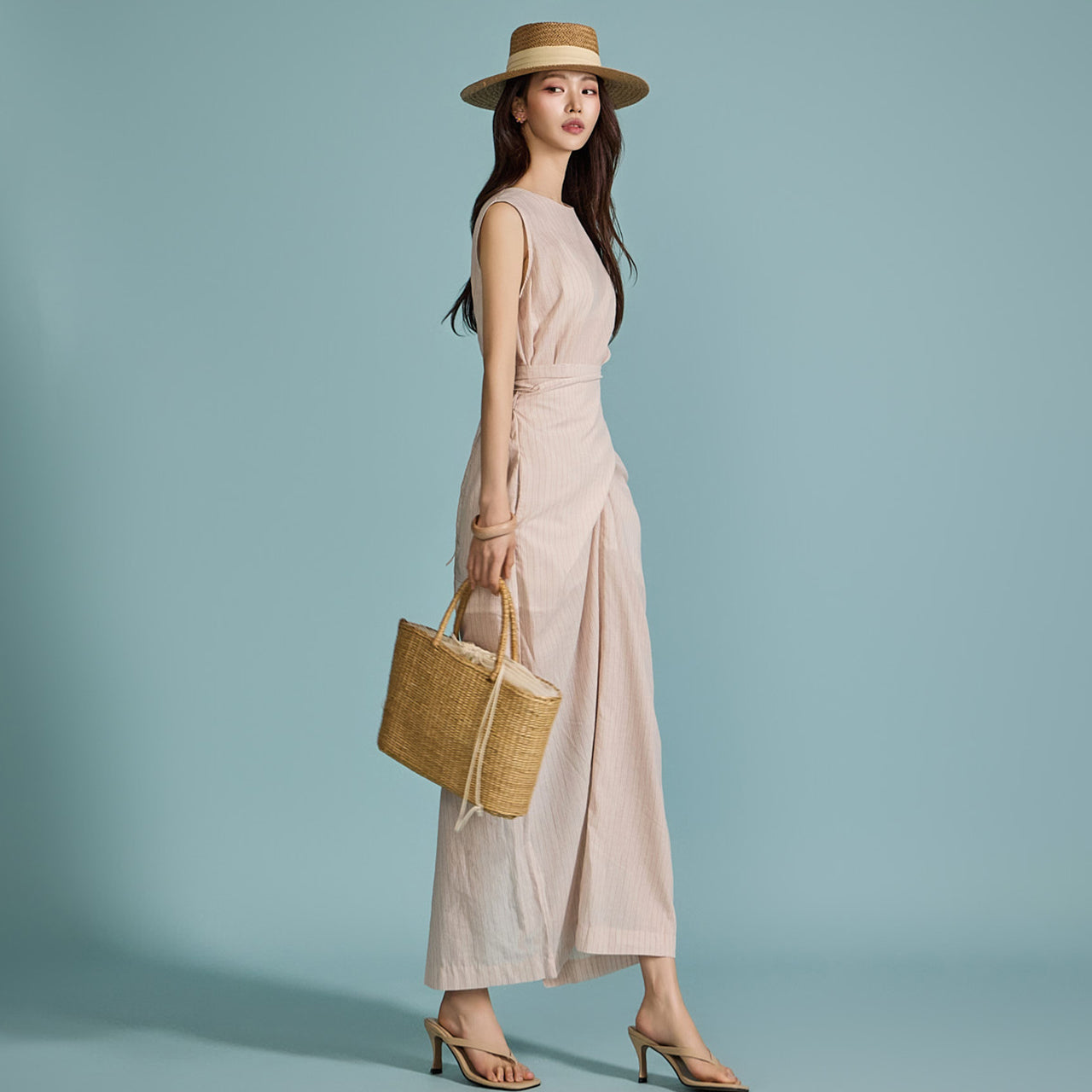 这款亚麻扭纹连衣裙即使单独穿着也能呈现出精致的外观。