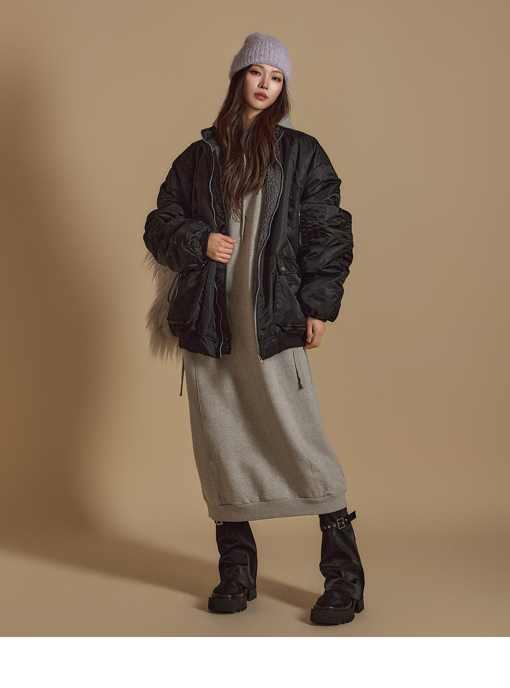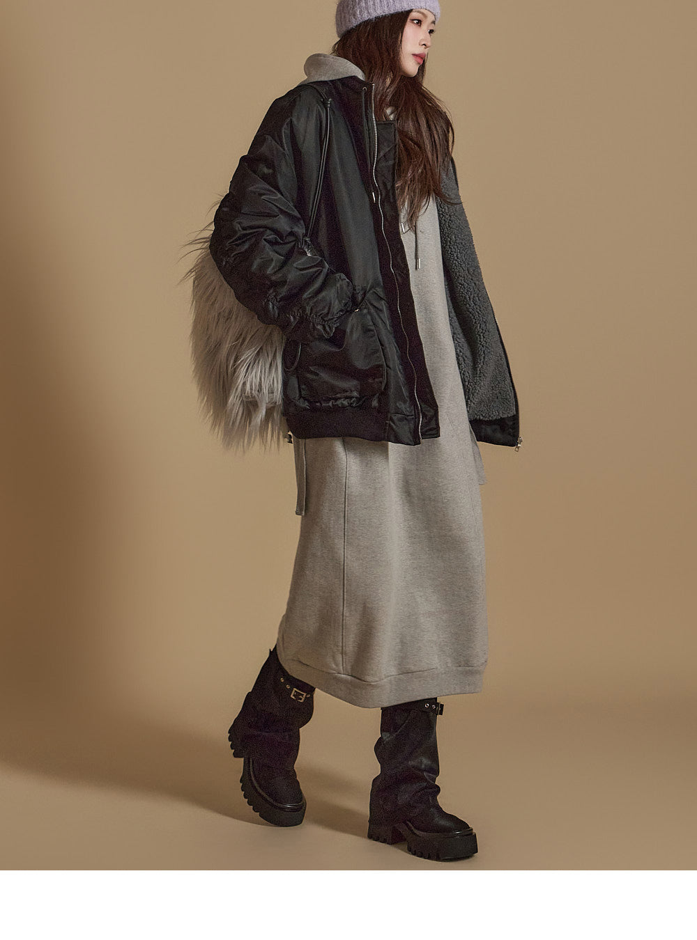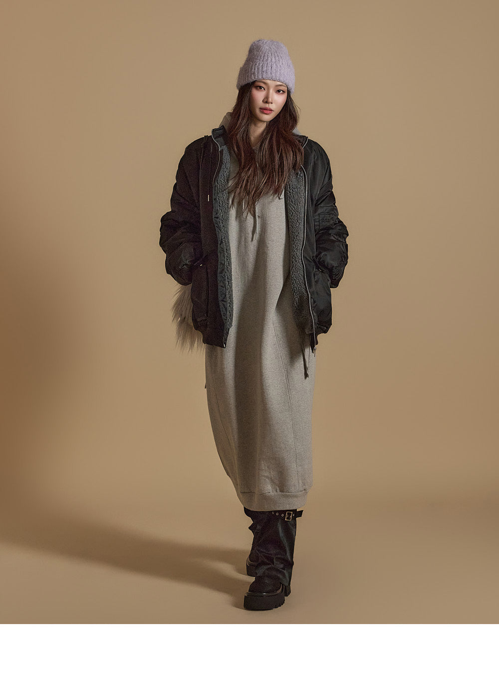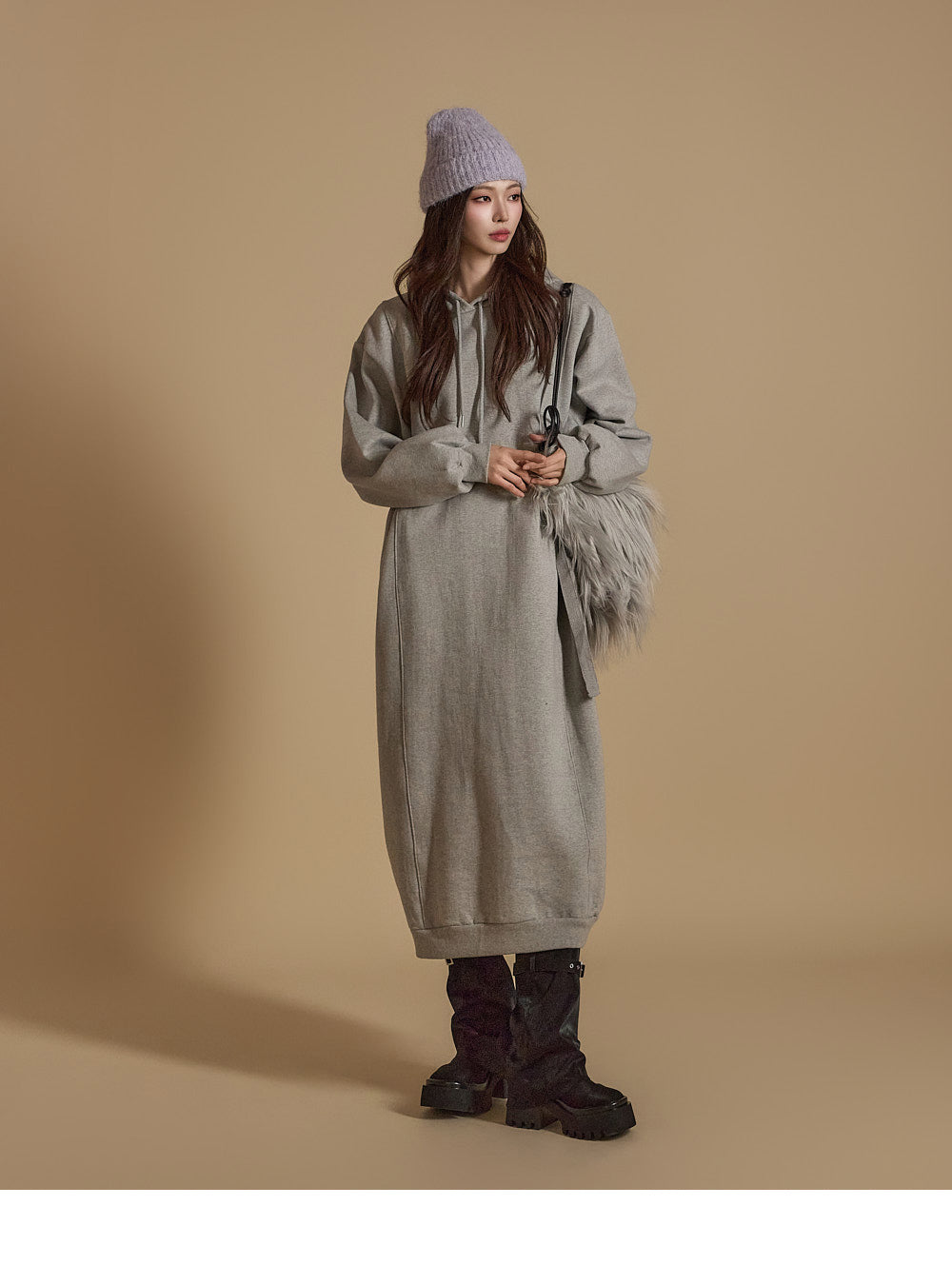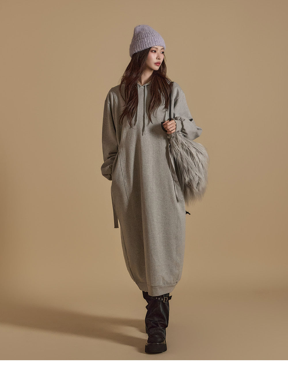 D5171 羊毛衬里连帽连衣裙