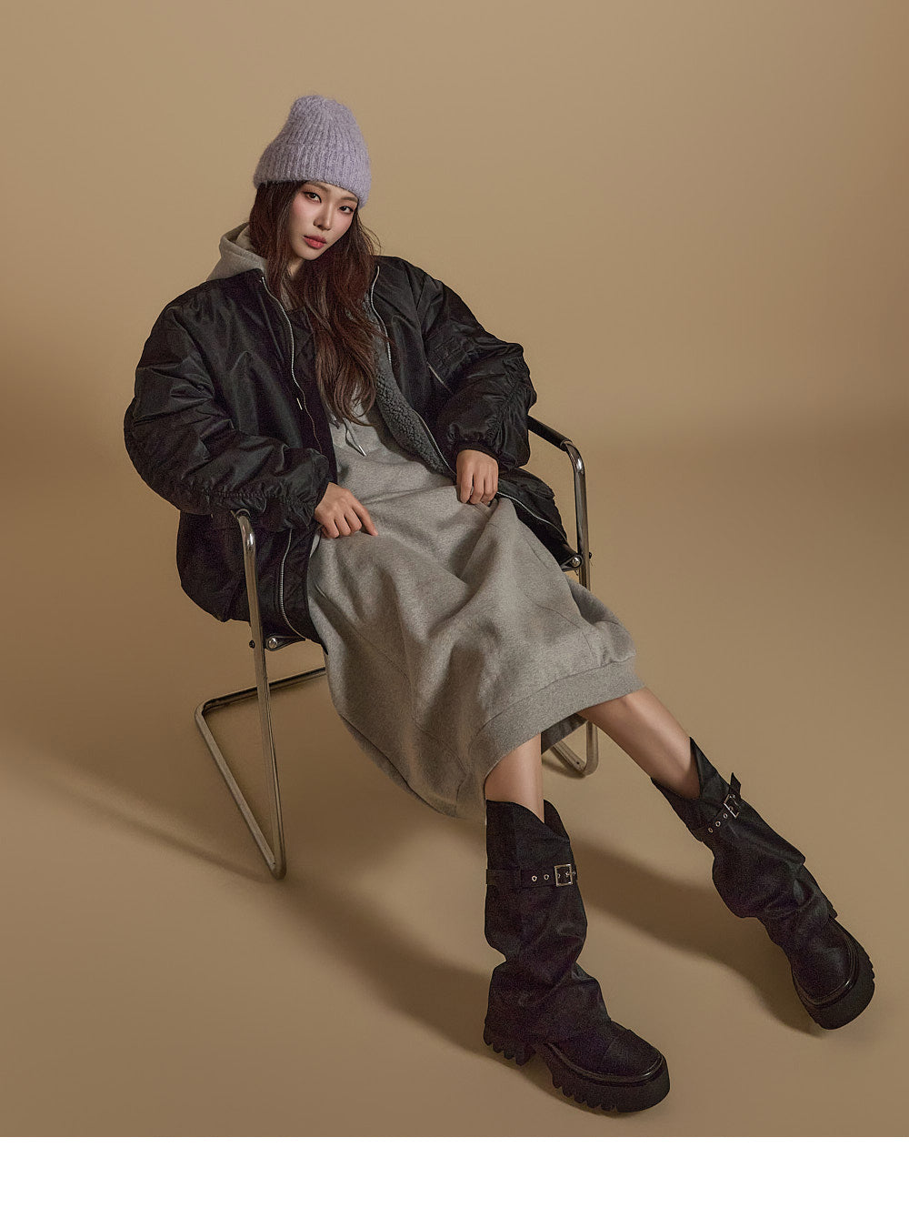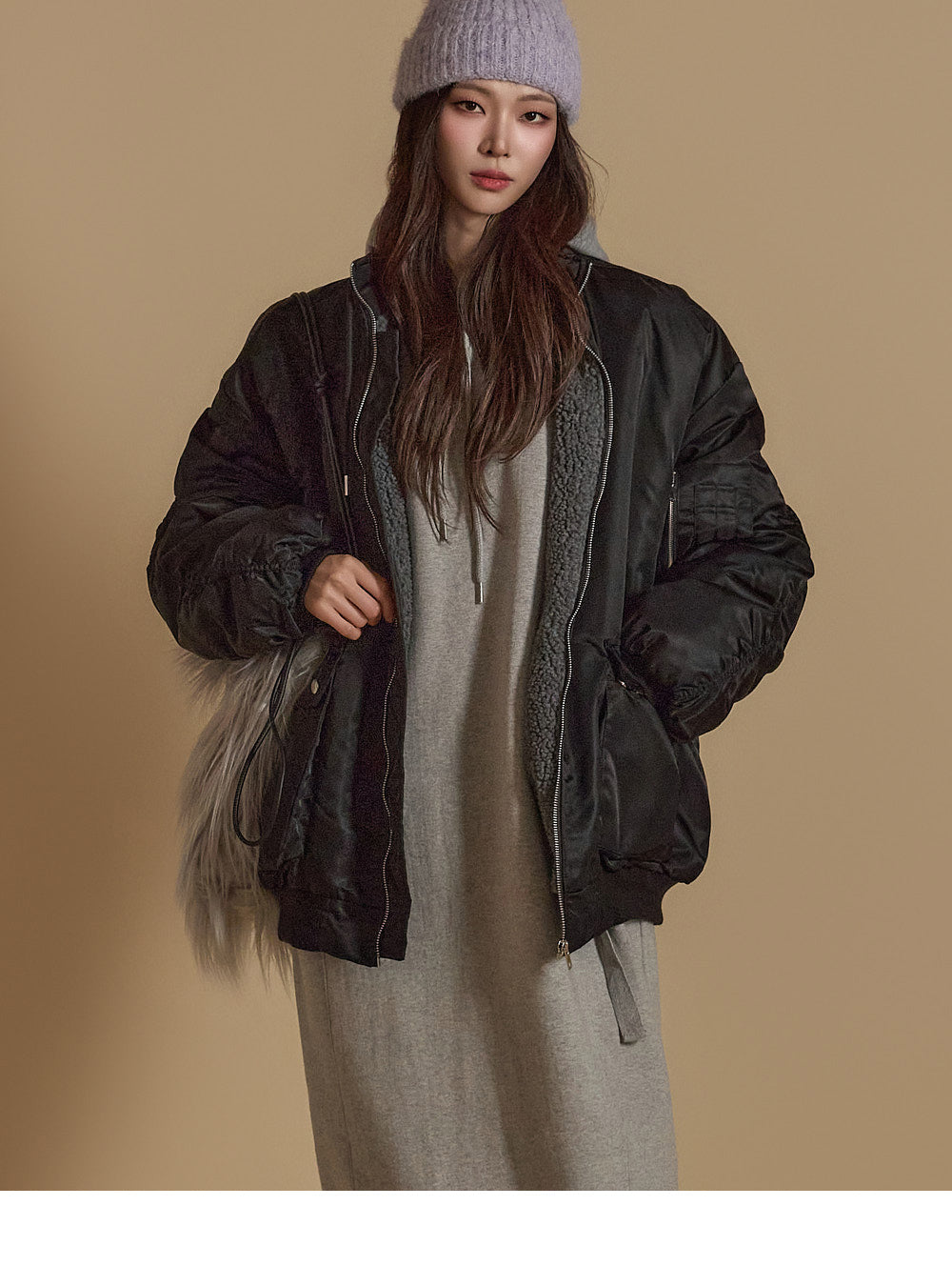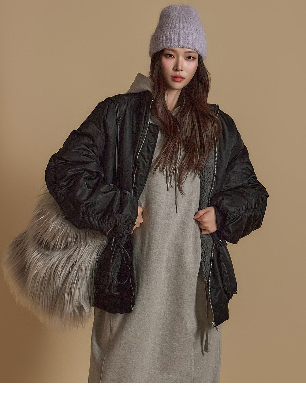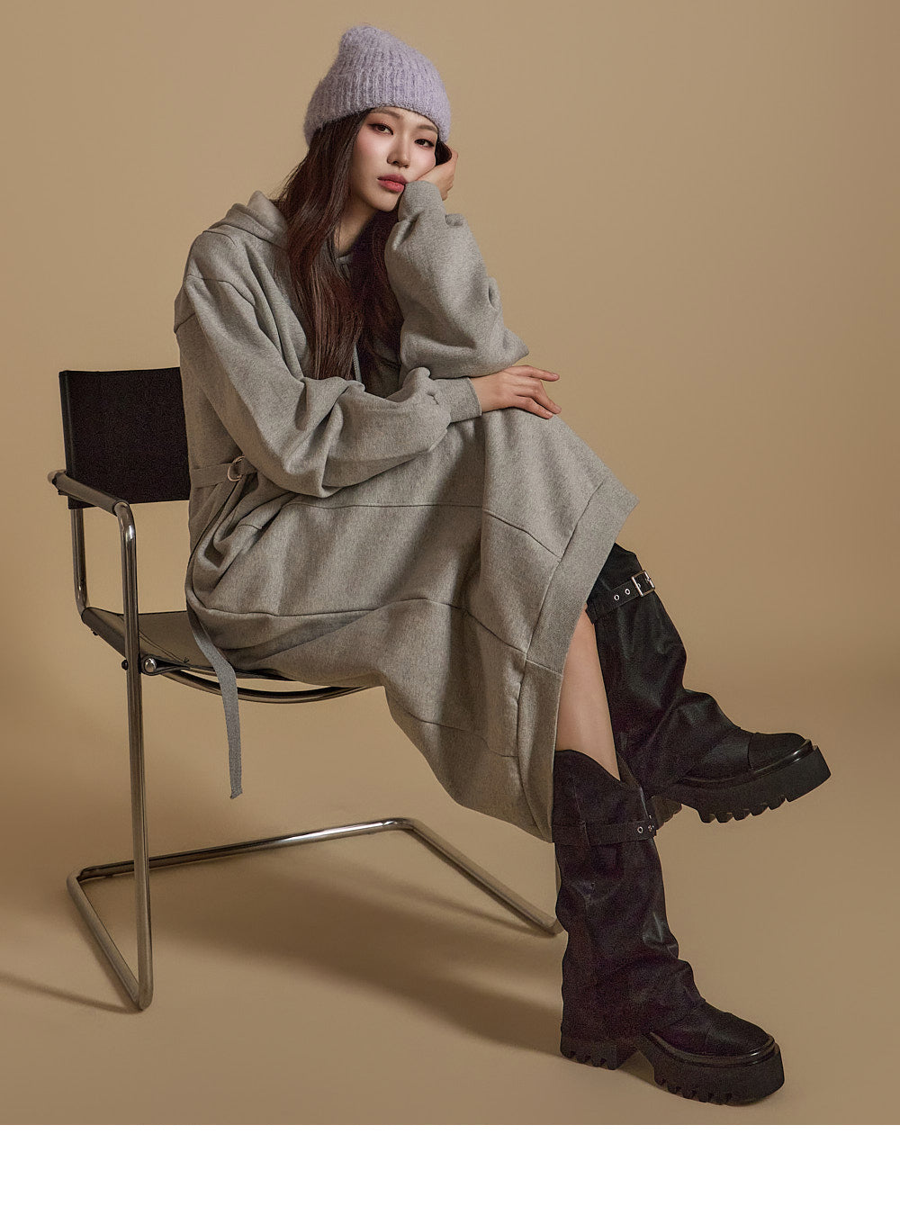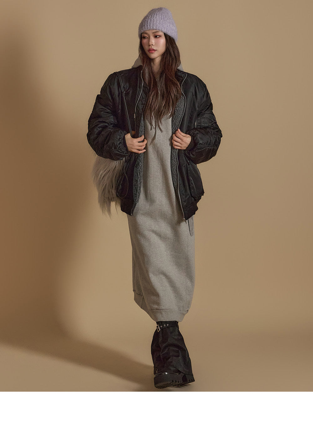 D5171 羊毛衬里连帽连衣裙