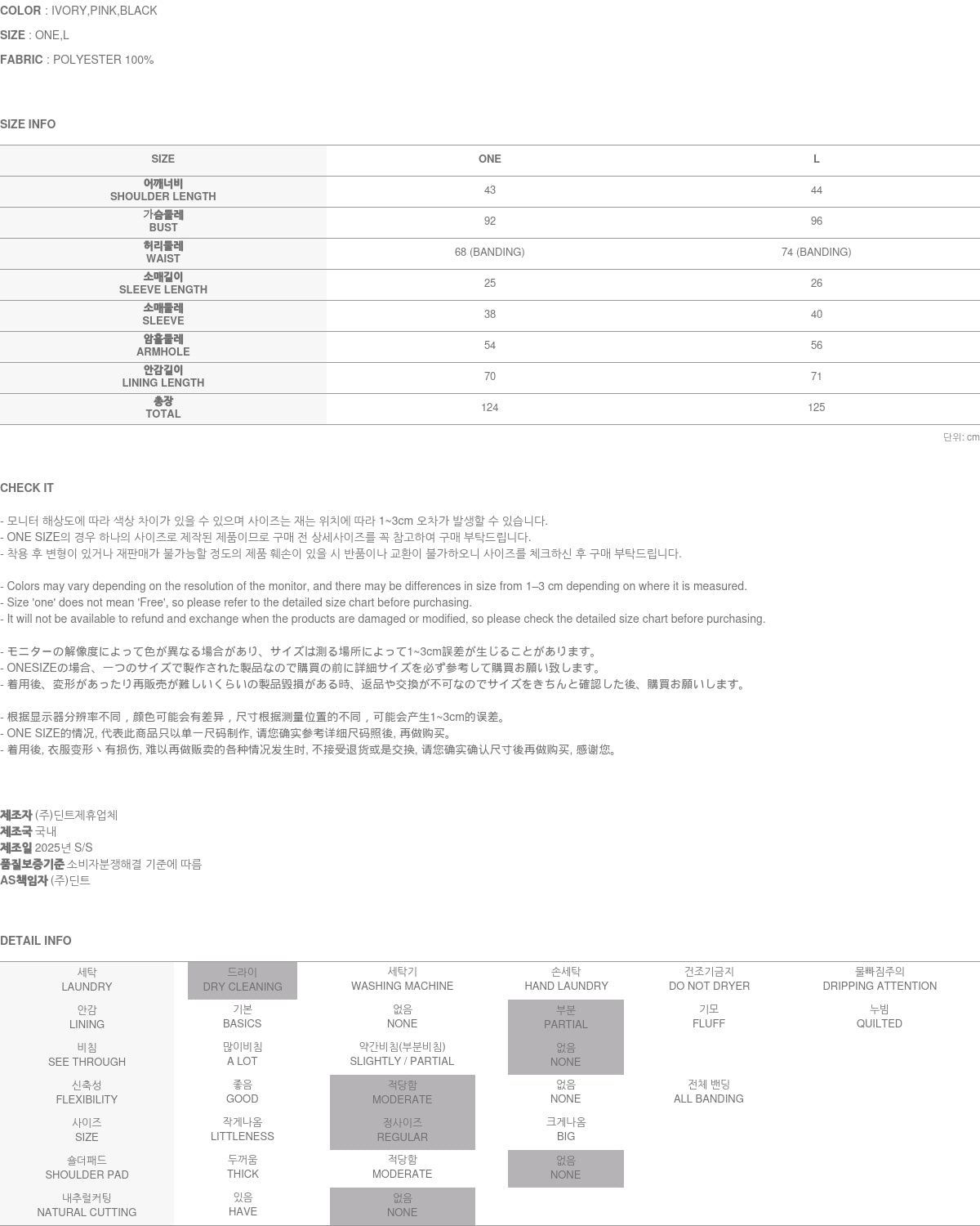 收到退回Dint的商品后,请填写随附的退货申请表,并按照收到时的包装方式重新包装(塑料袋、衣架、按金额赠送)。然后将其寄回Dint。