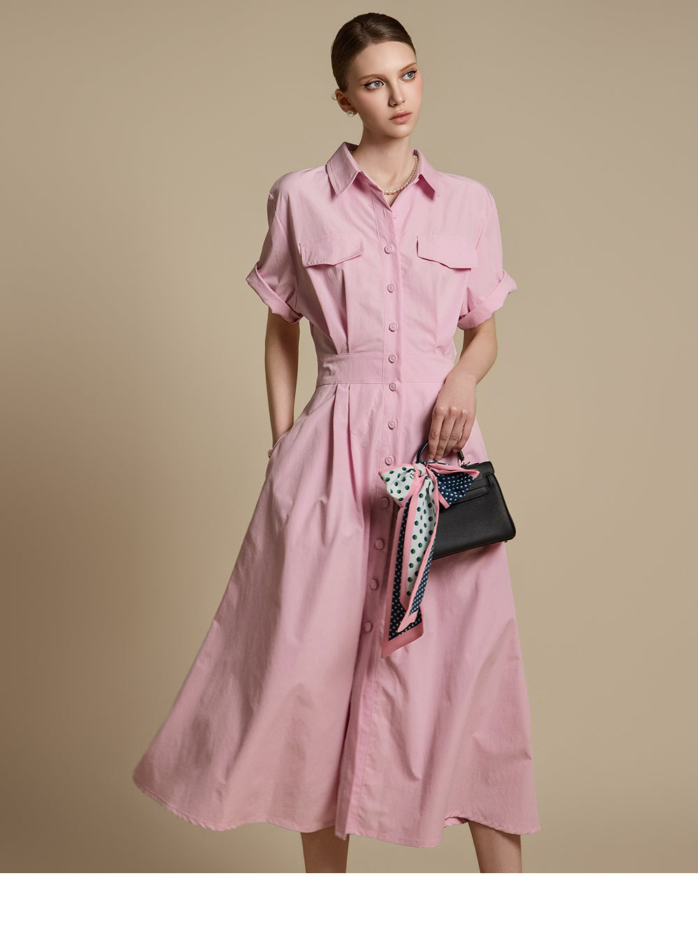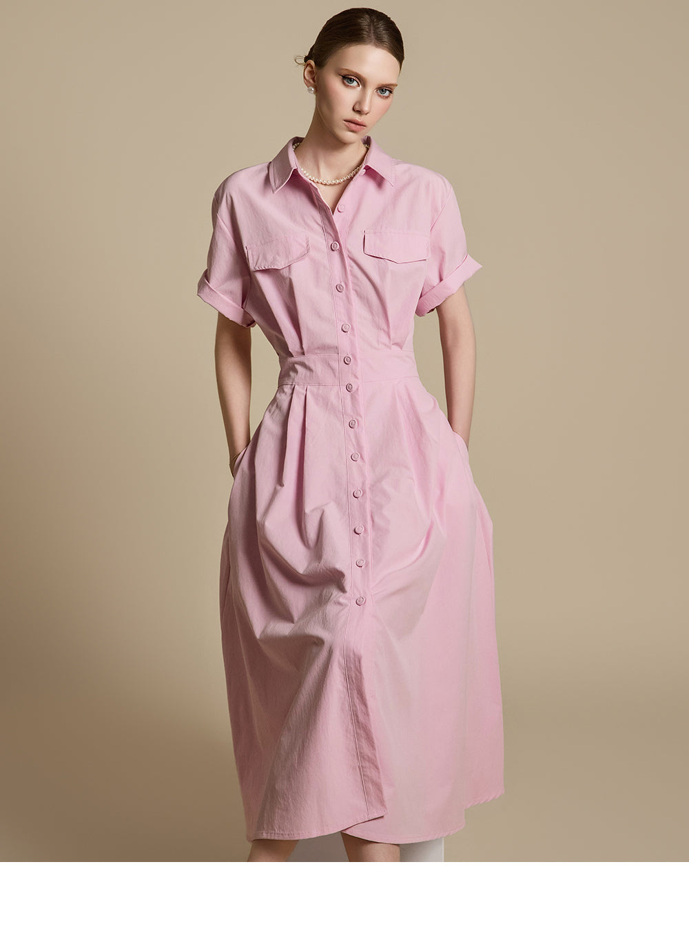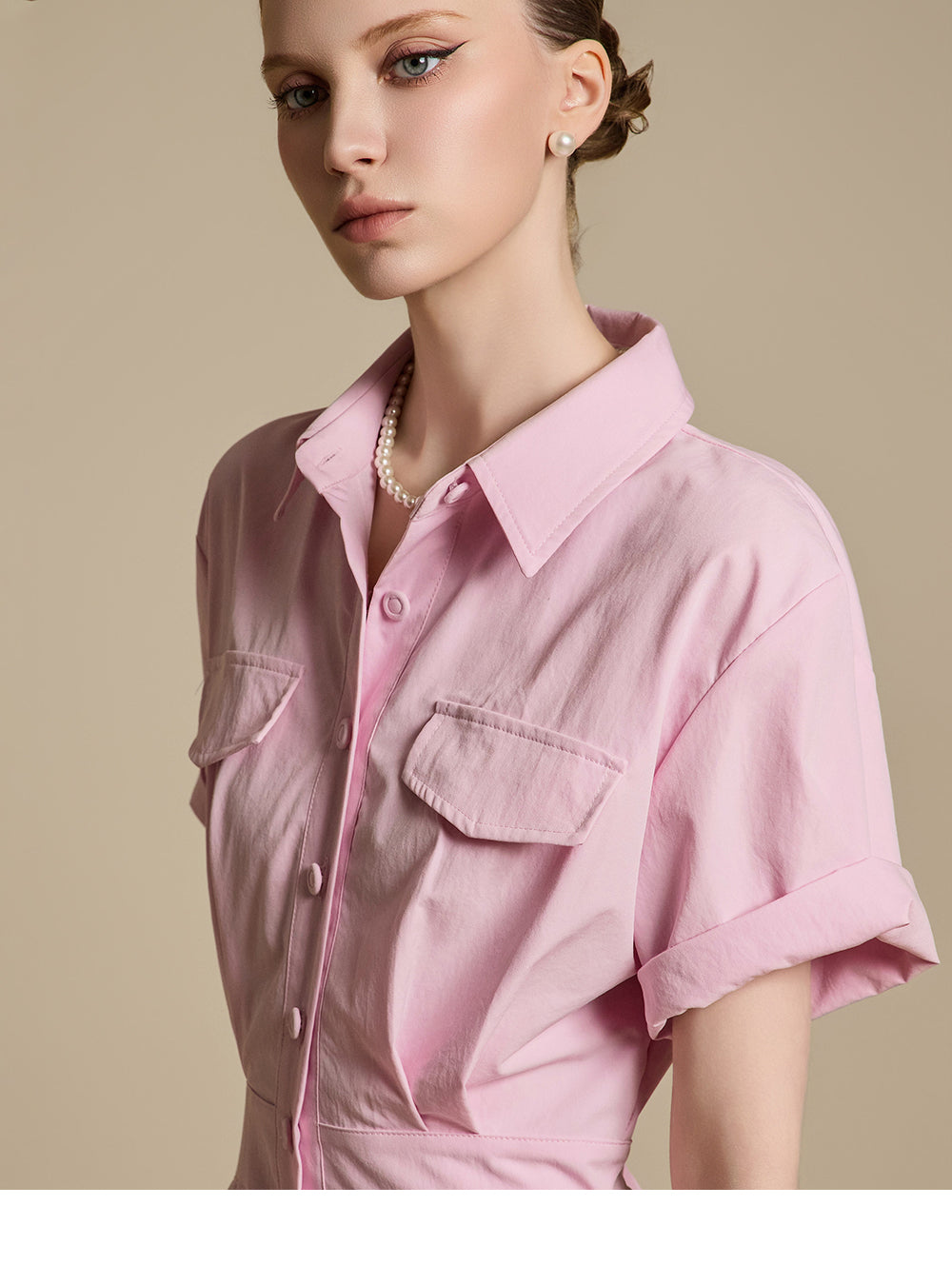 这是一件充满女性气息的衬衫裙。