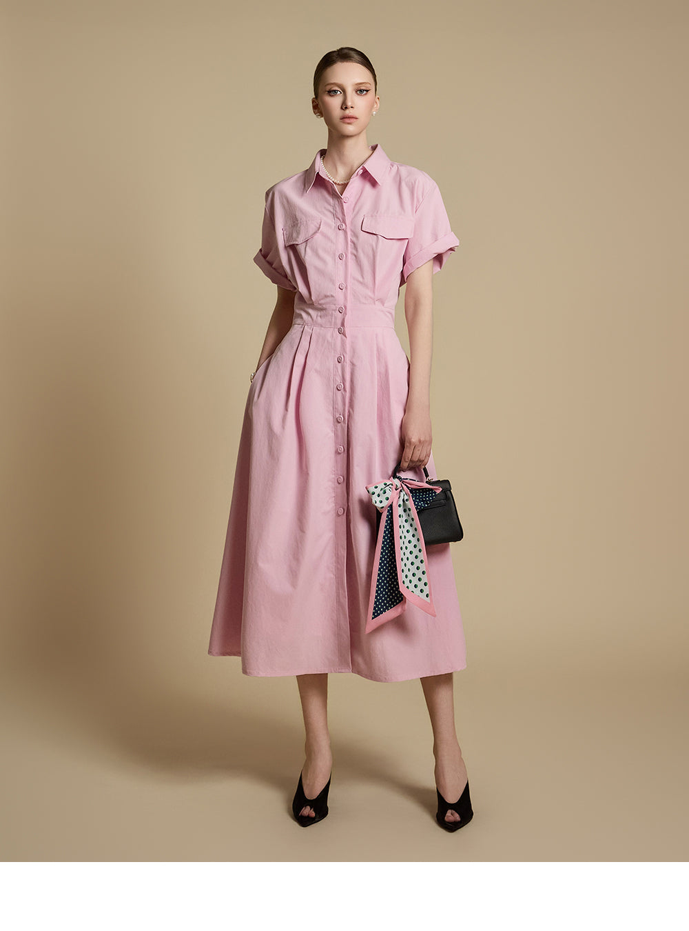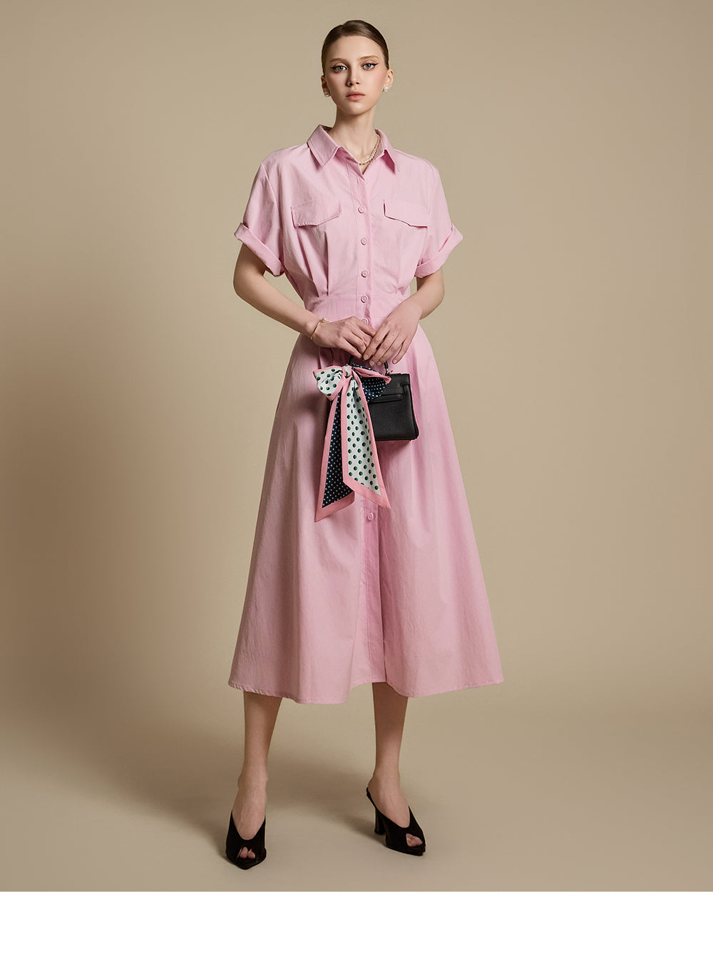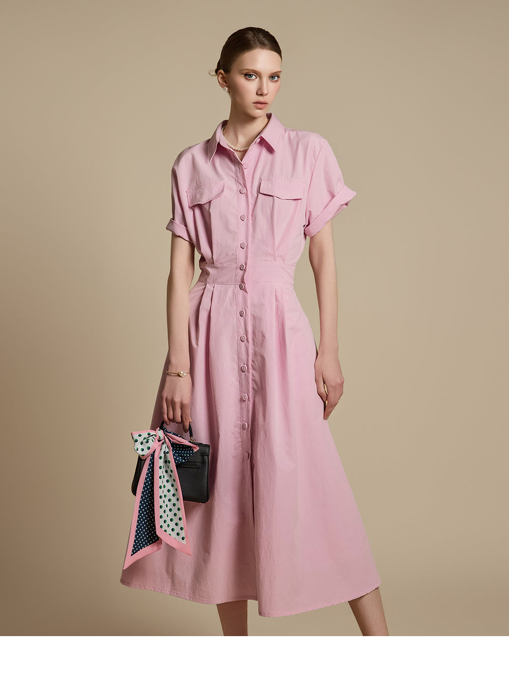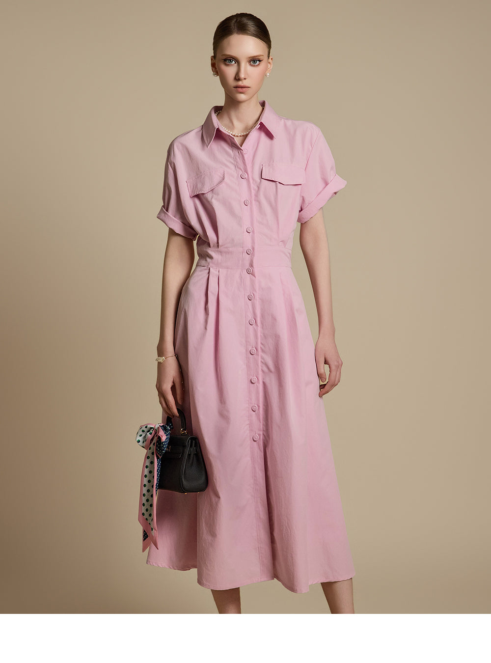 这是一件充满女性气息的衬衫裙。