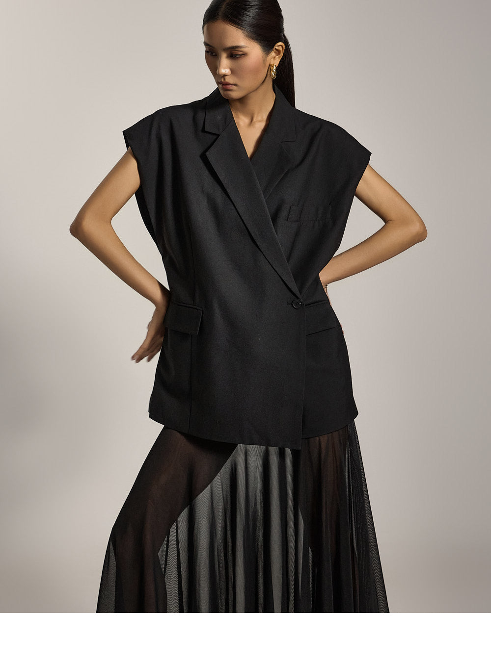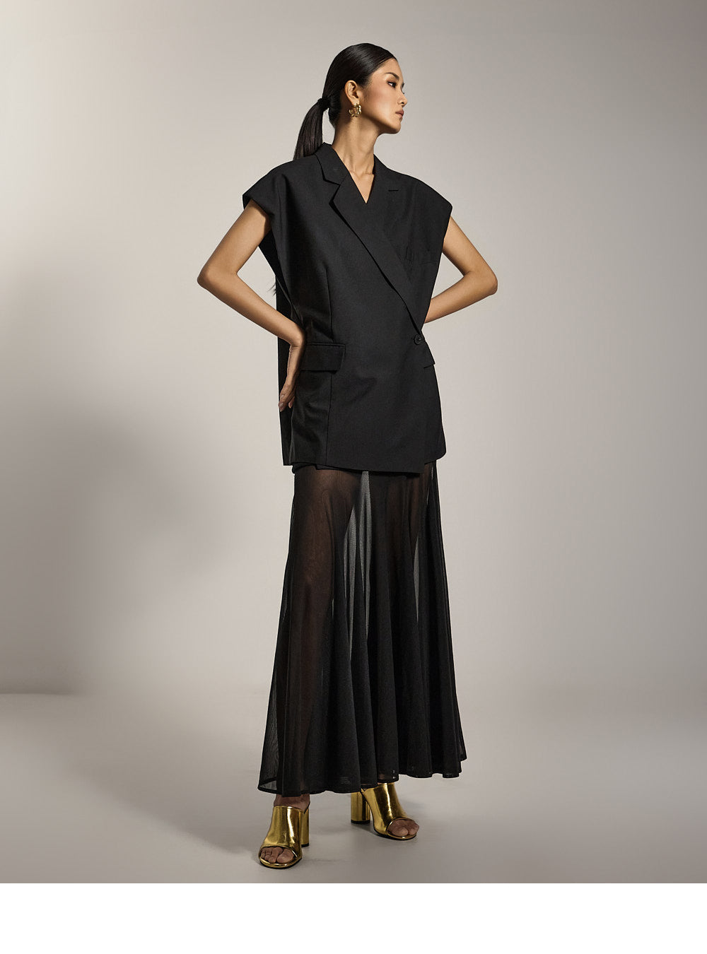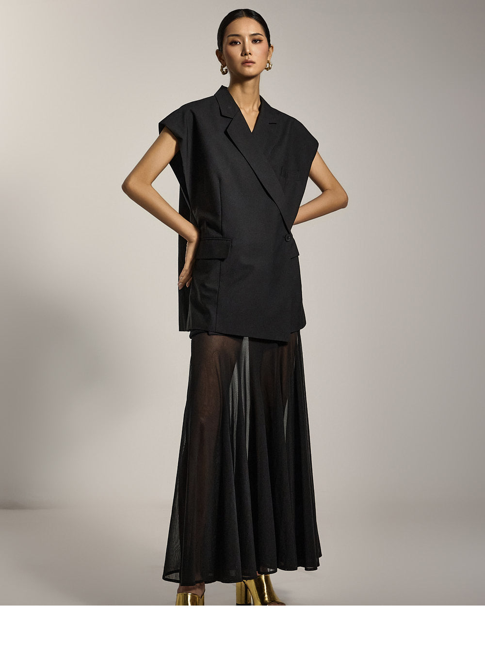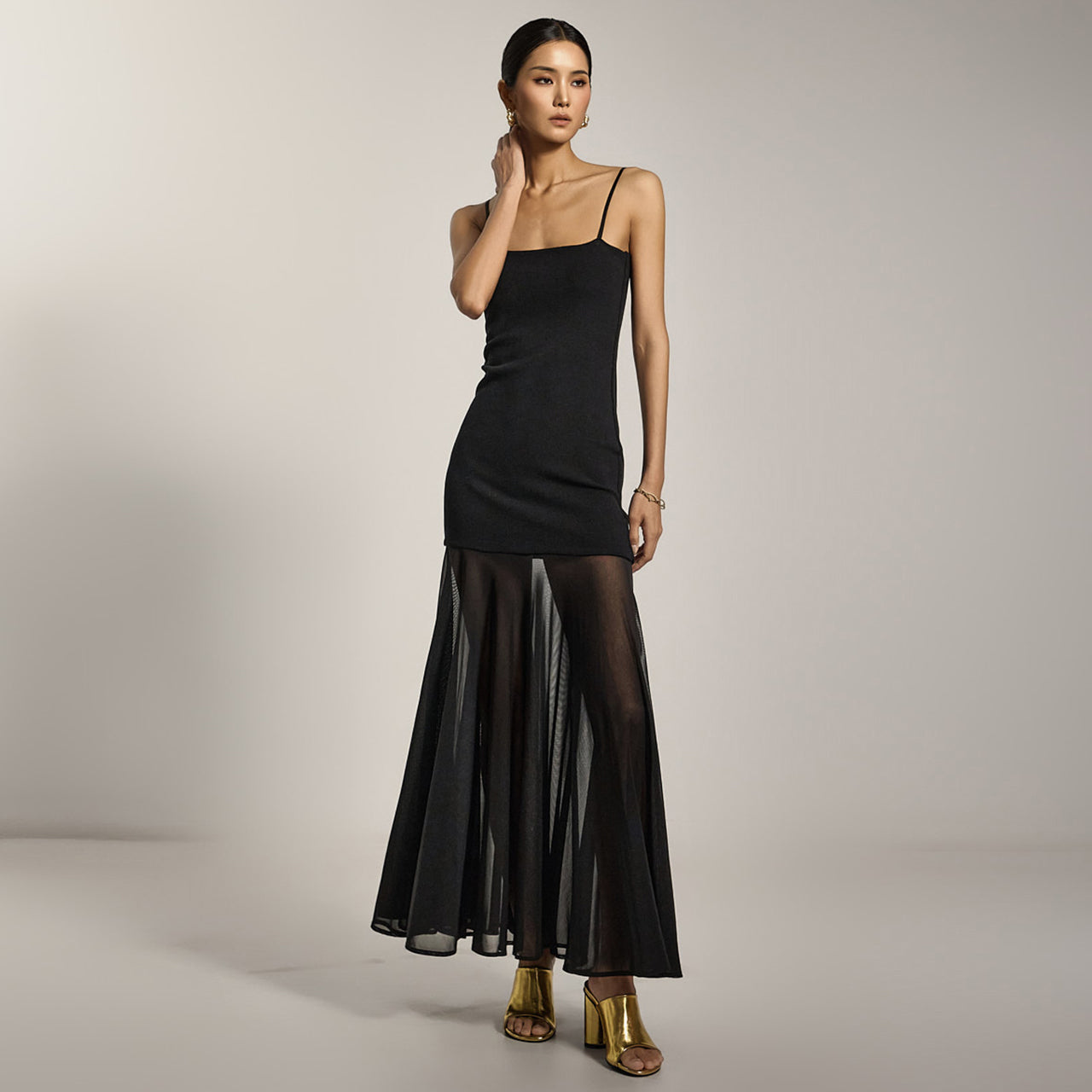 修身的紧身胸衣和透明的百褶裙完美地融合在一起,