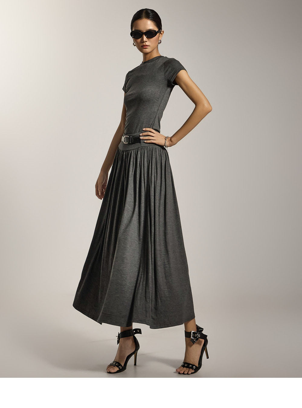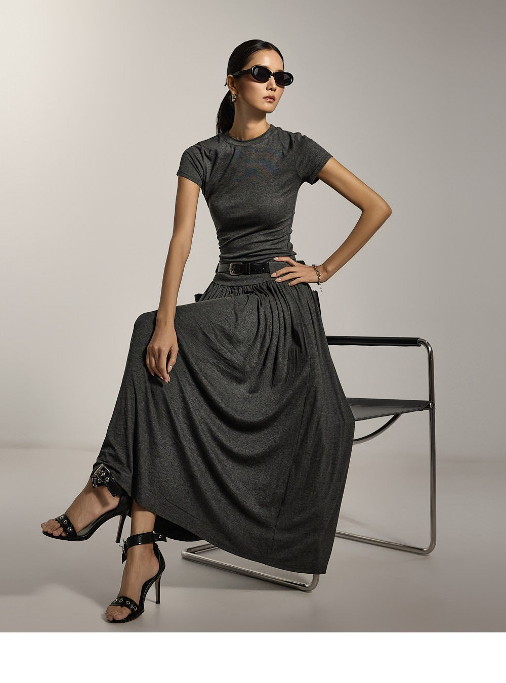 模特 (173 厘米) 穿着均码的灰色衣服。