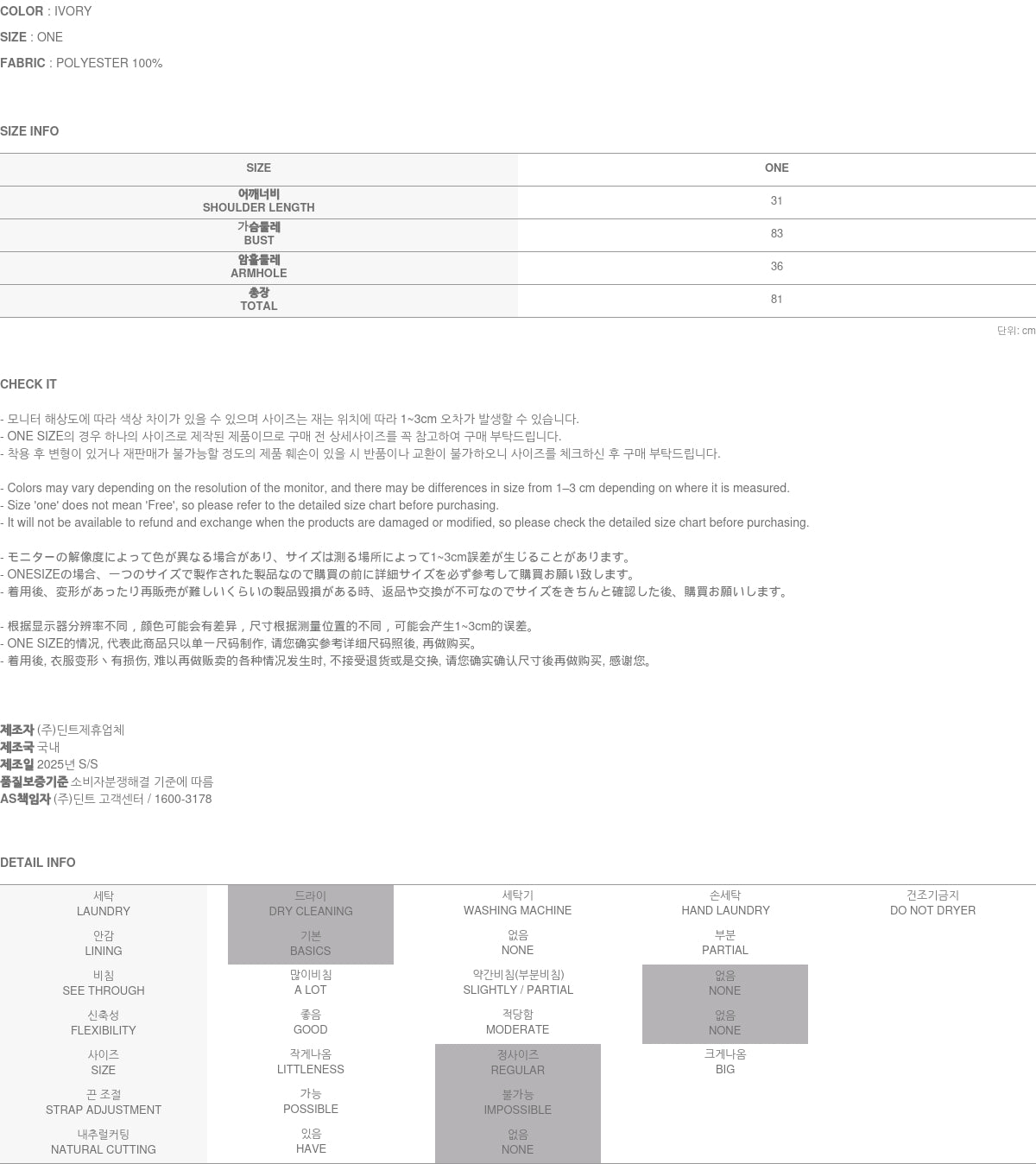 收到退回Dint的商品后,请填写随附的退货申请表,并按照收到时的包装方式重新包装(塑料袋、衣架、按金额赠送)。然后将其寄回Dint。