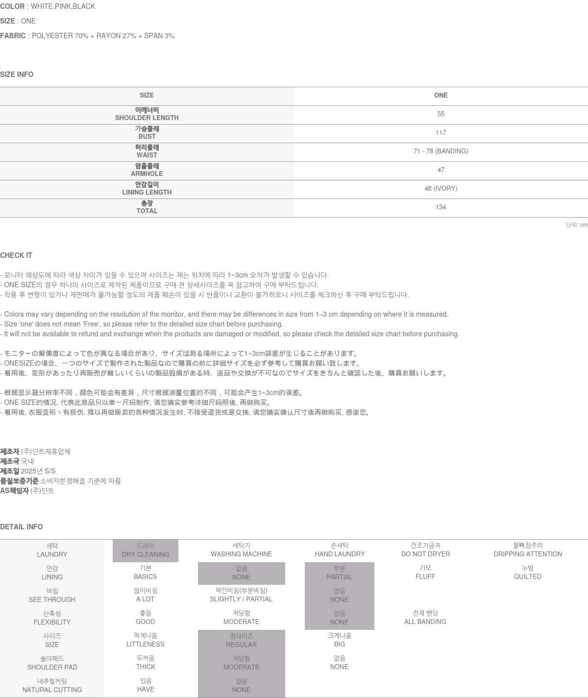 收到退回Dint的商品后,请填写随附的退货申请表,并按照收到时的包装方式重新包装(塑料袋、衣架、按金额赠送)。然后将其寄回Dint。