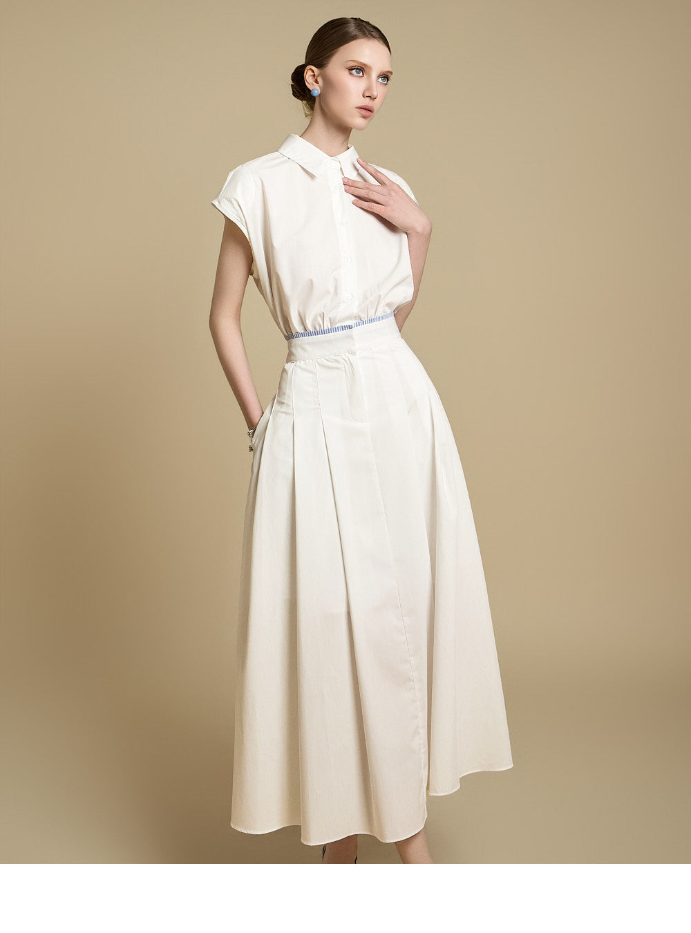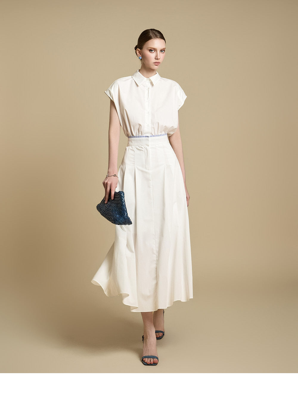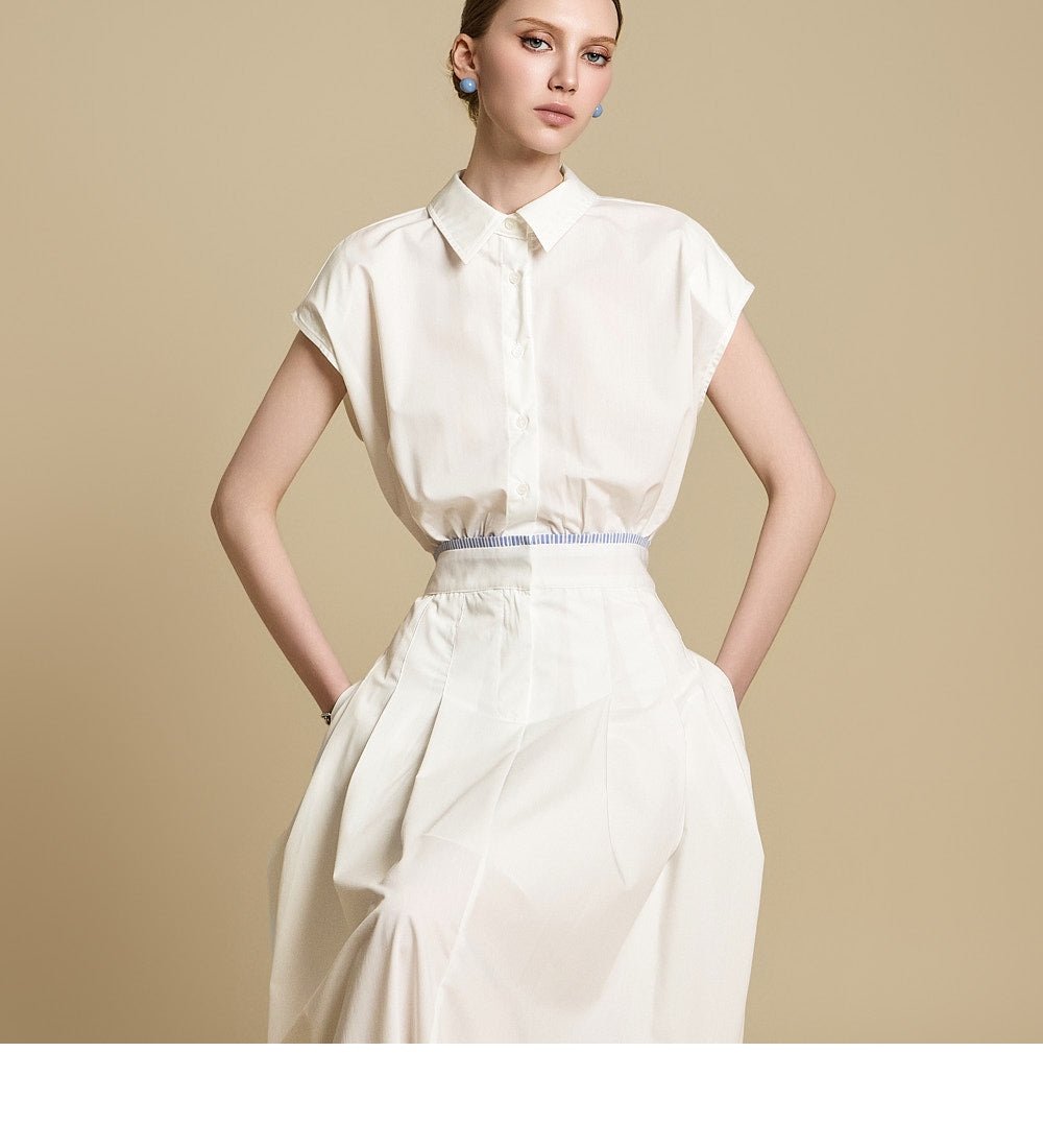 采用修身剪裁和无袖设计,营造出轻松而又充满女性气质的外观。