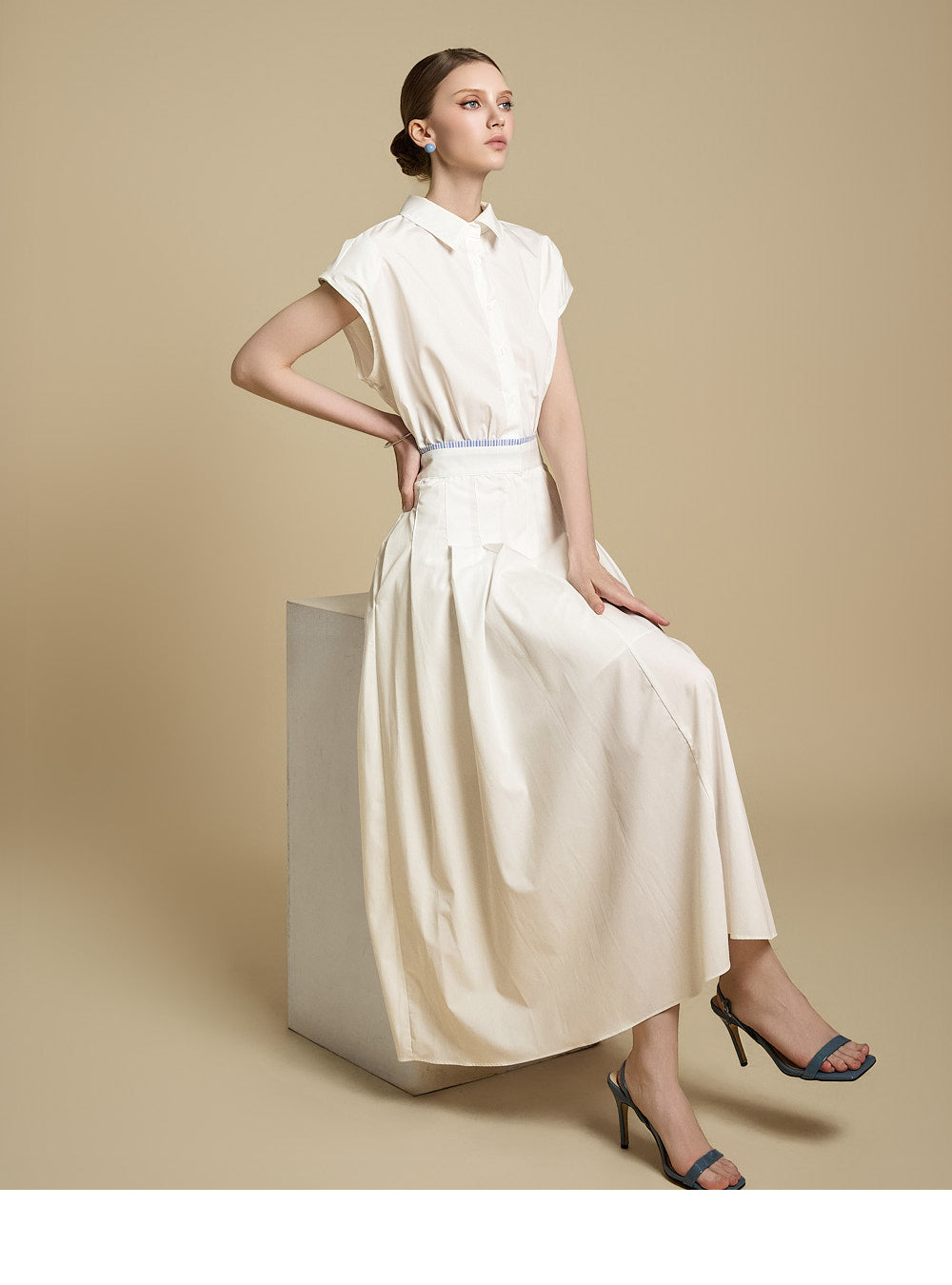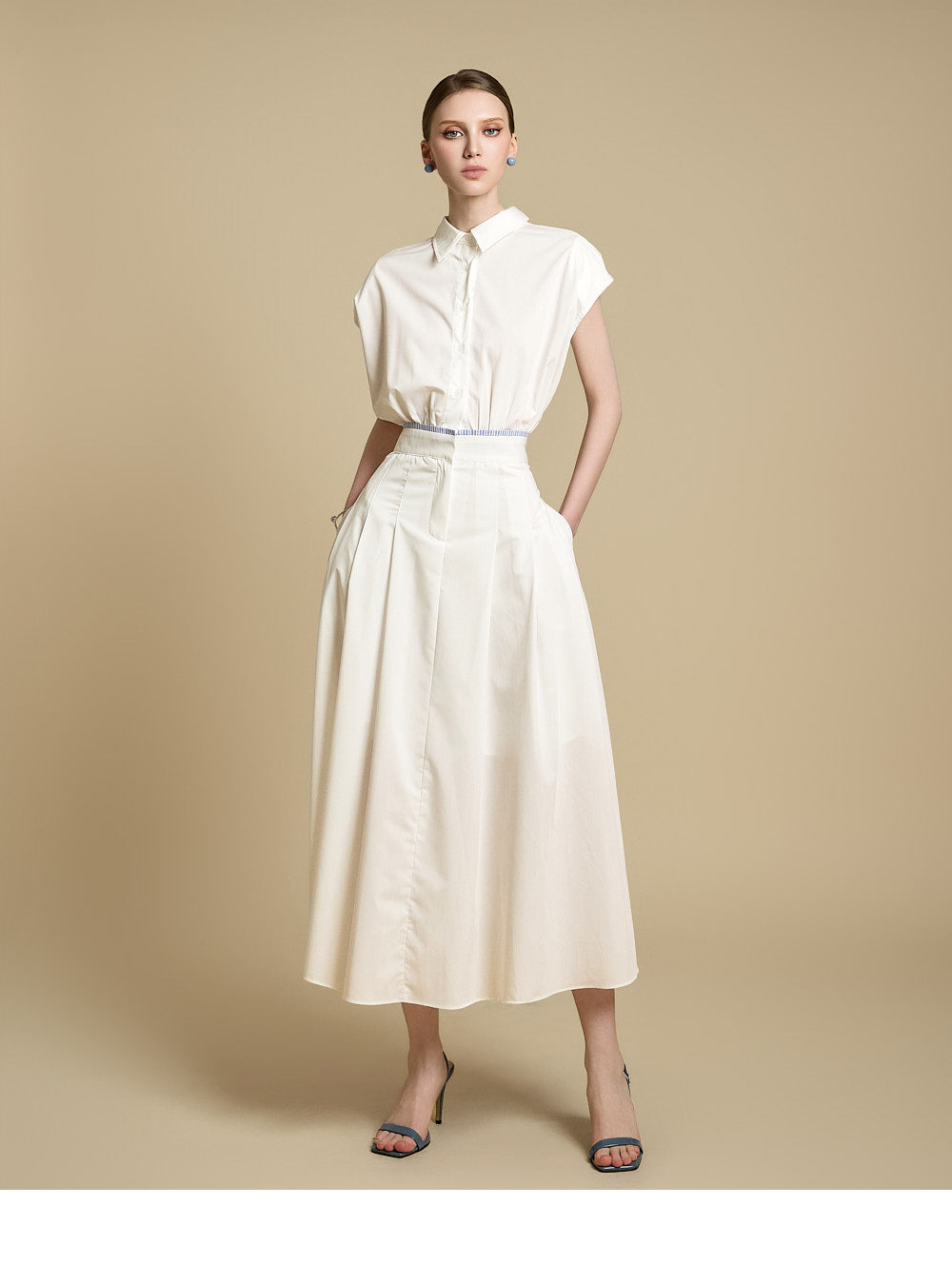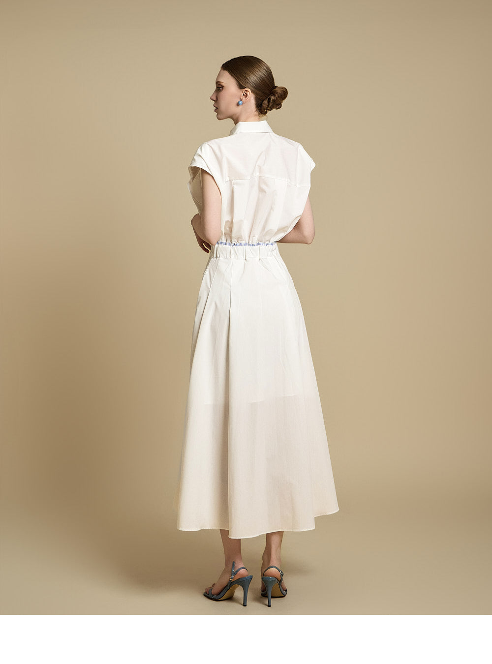 采用修身剪裁和无袖设计,营造出轻松而又充满女性气质的外观。