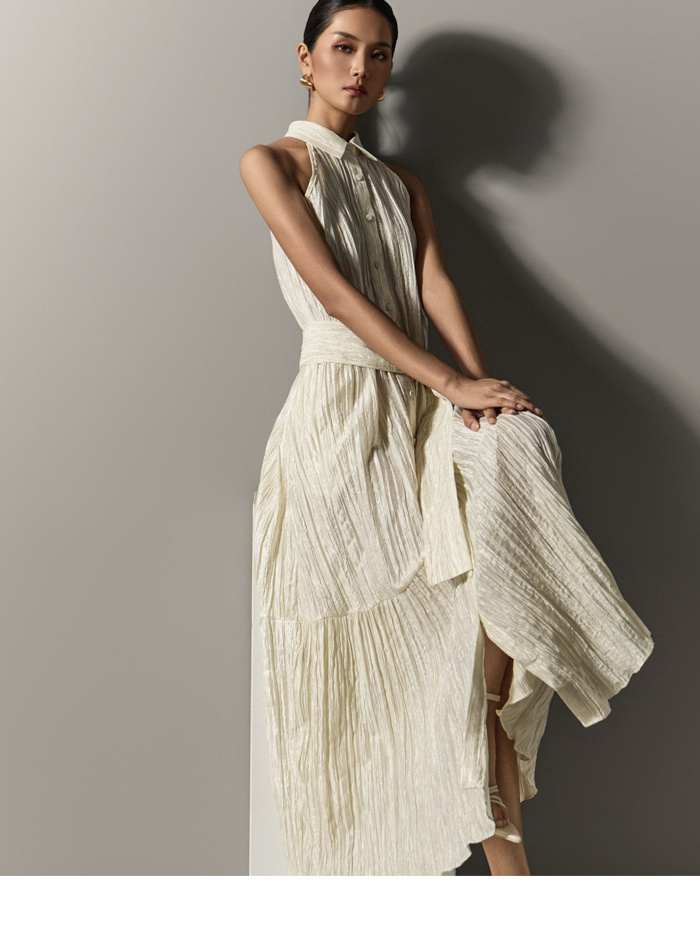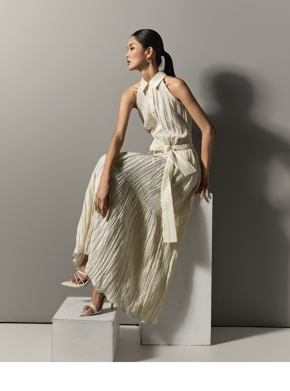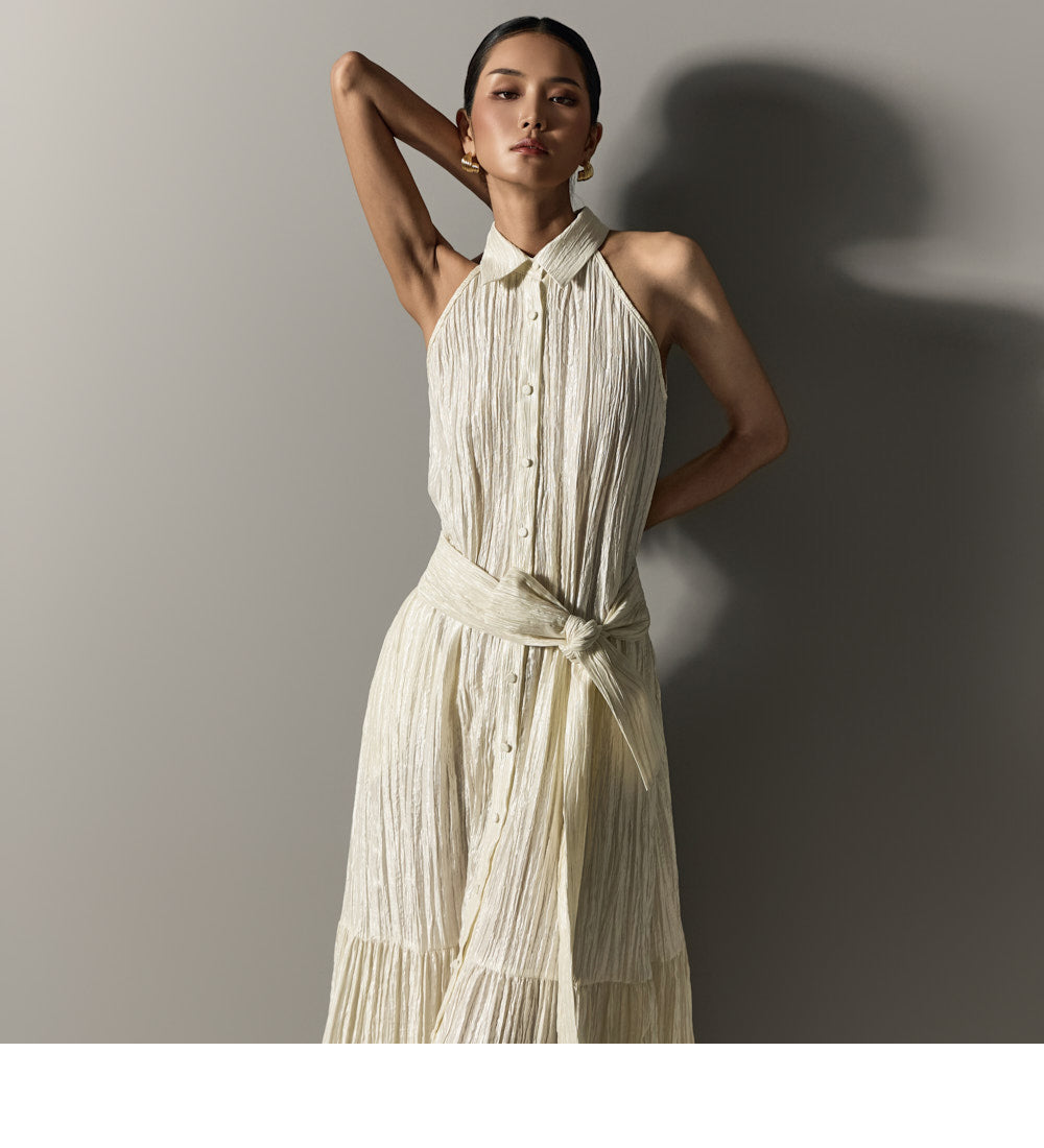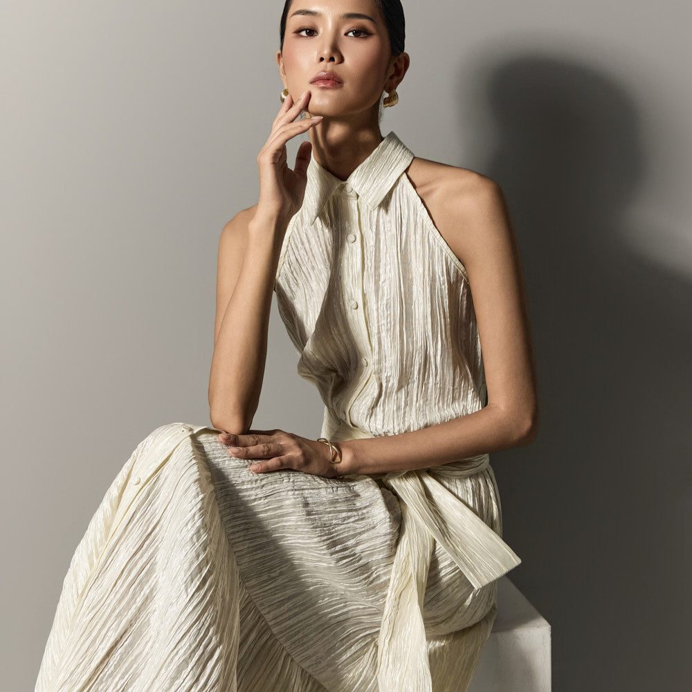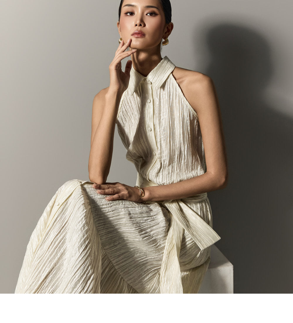 独特的吊带套装连衣裙,采用天丝和涤纶混纺面料制成,