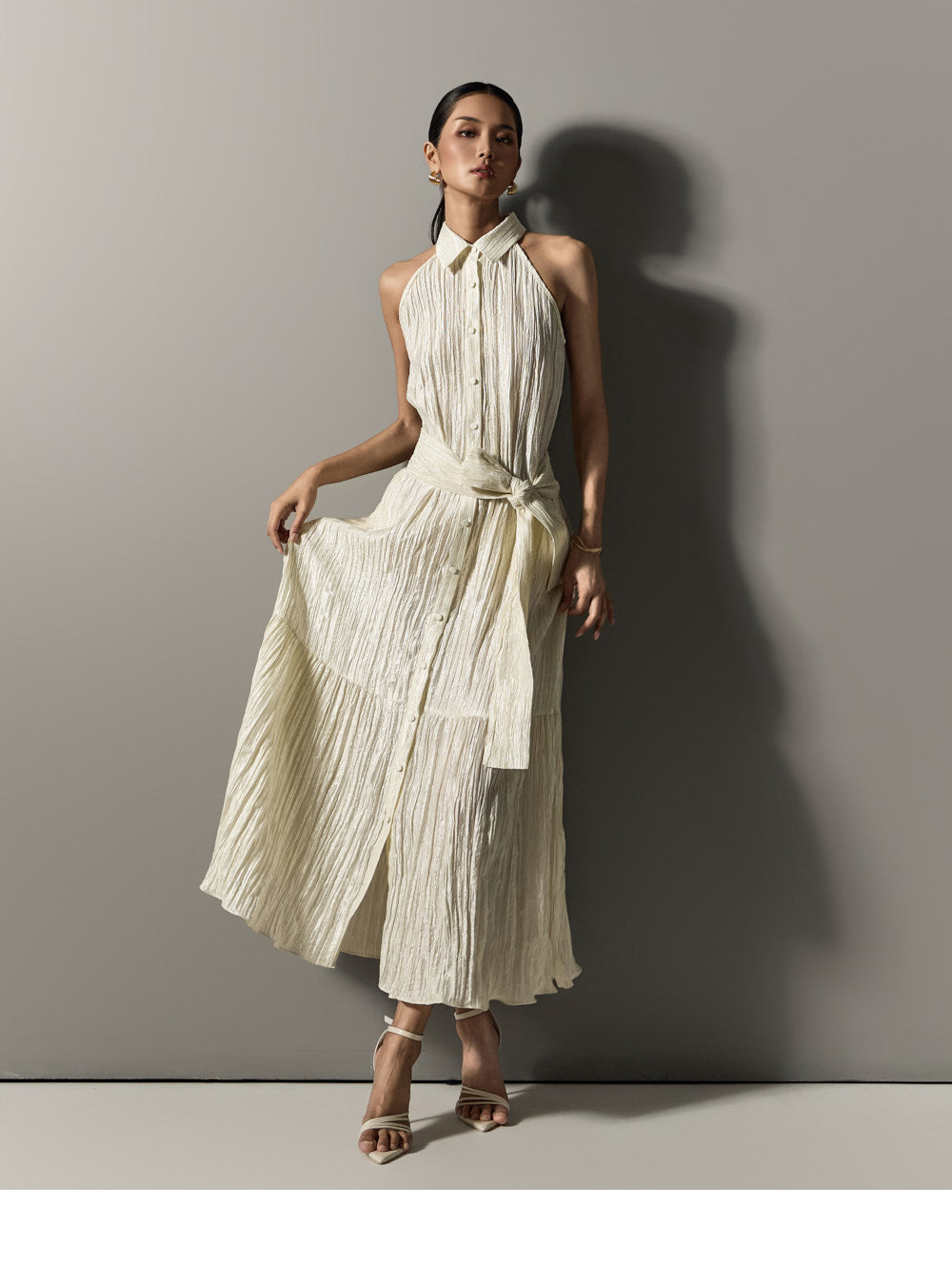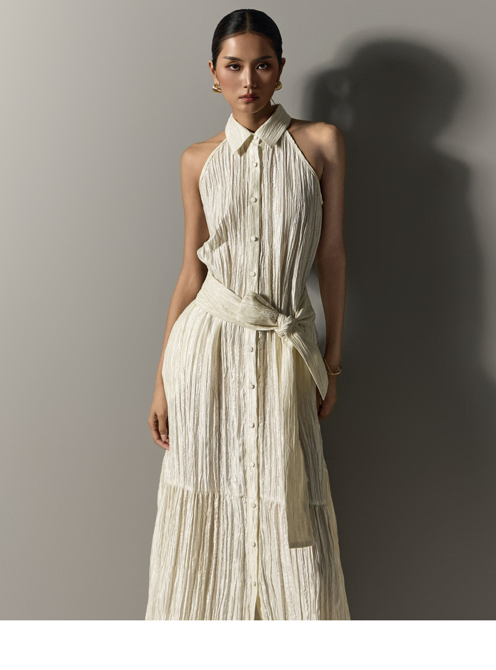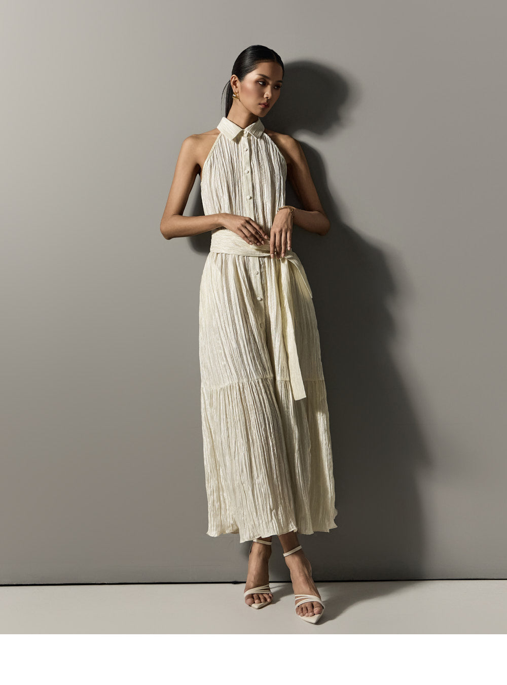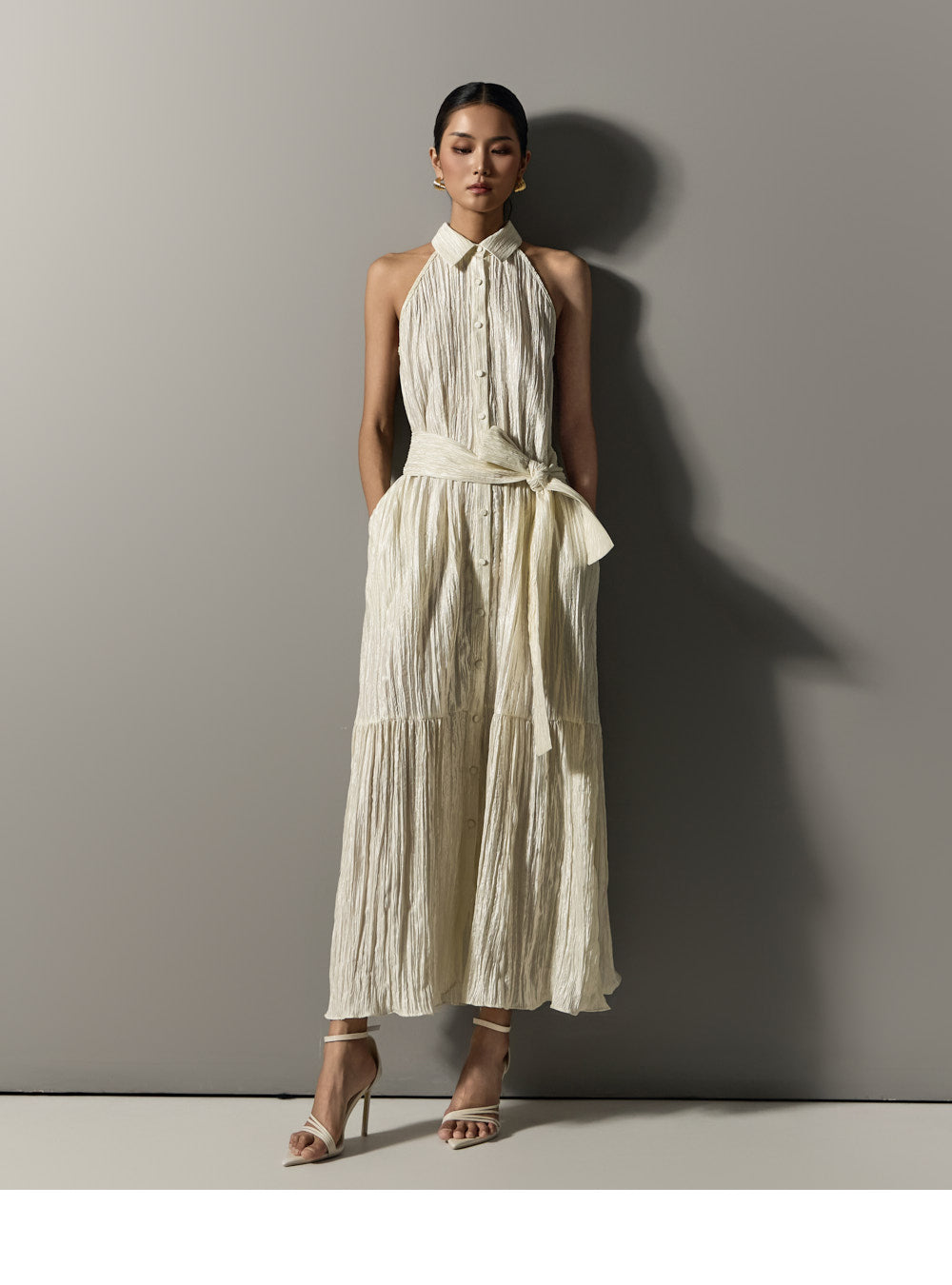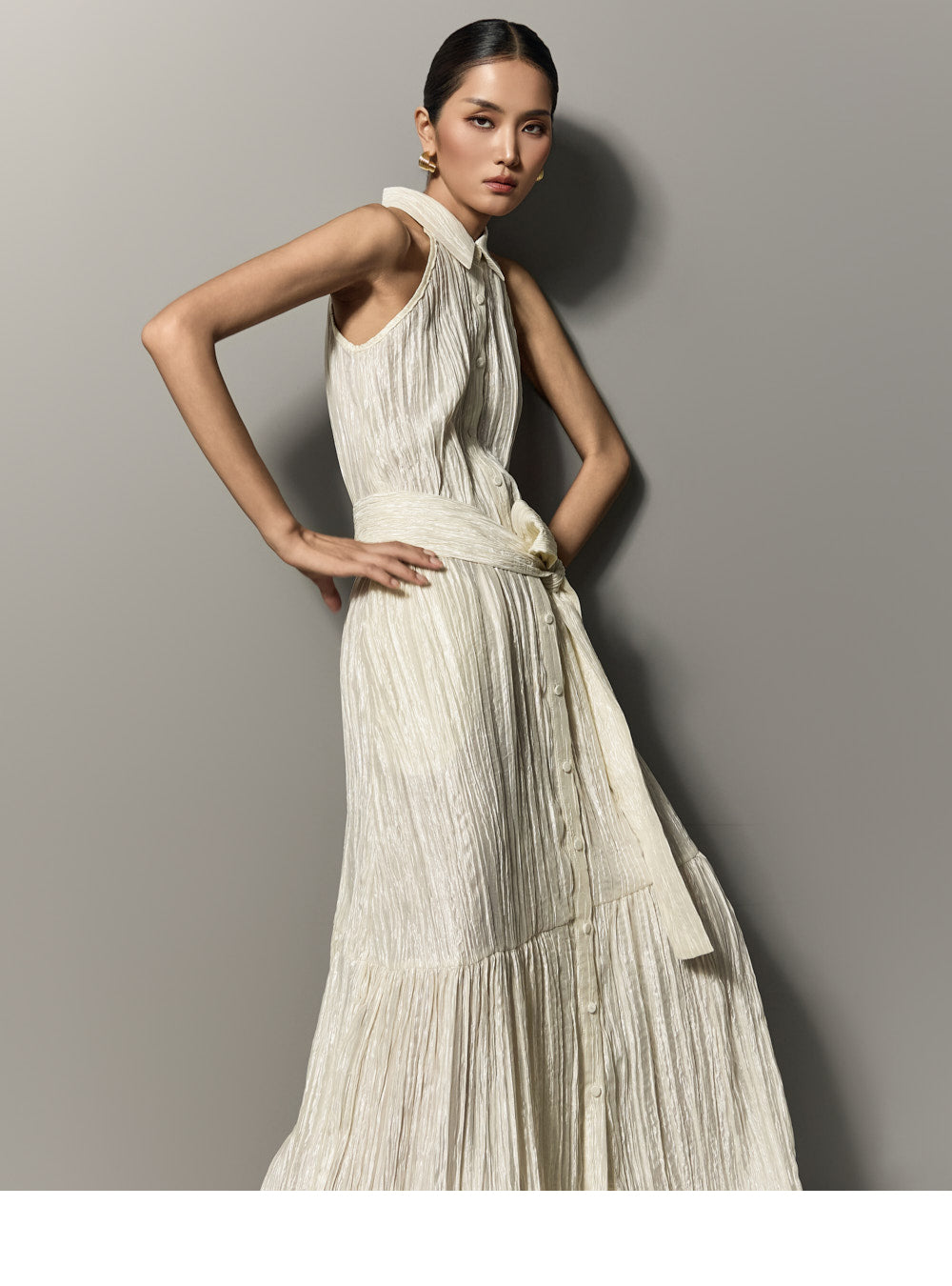 独特的吊带套装连衣裙,采用天丝和涤纶混纺面料制成,