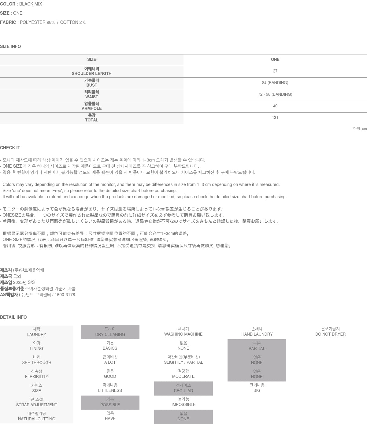 模特身高 171 厘米,穿着 ONE size 的 BLACK MIX 衣服。