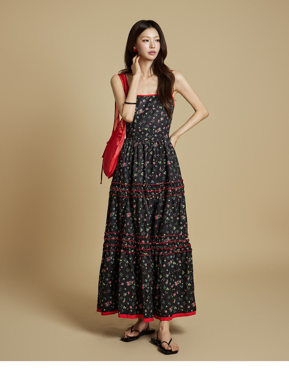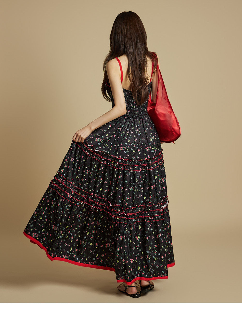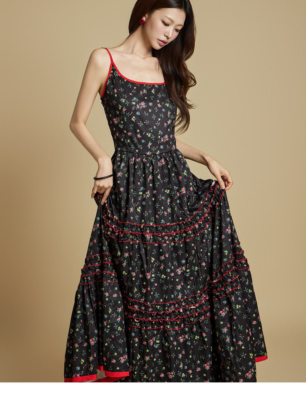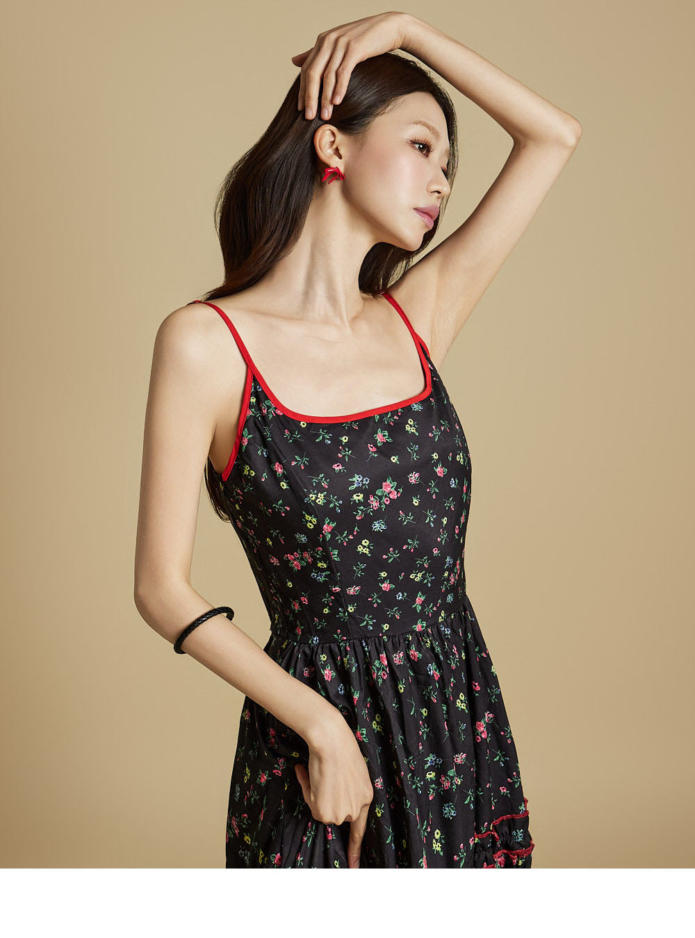 这款花卉拼色连衣裙带来活泼轻松的氛围。