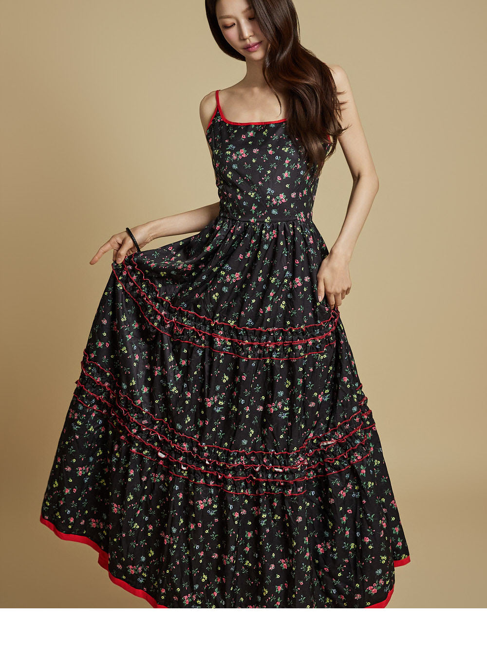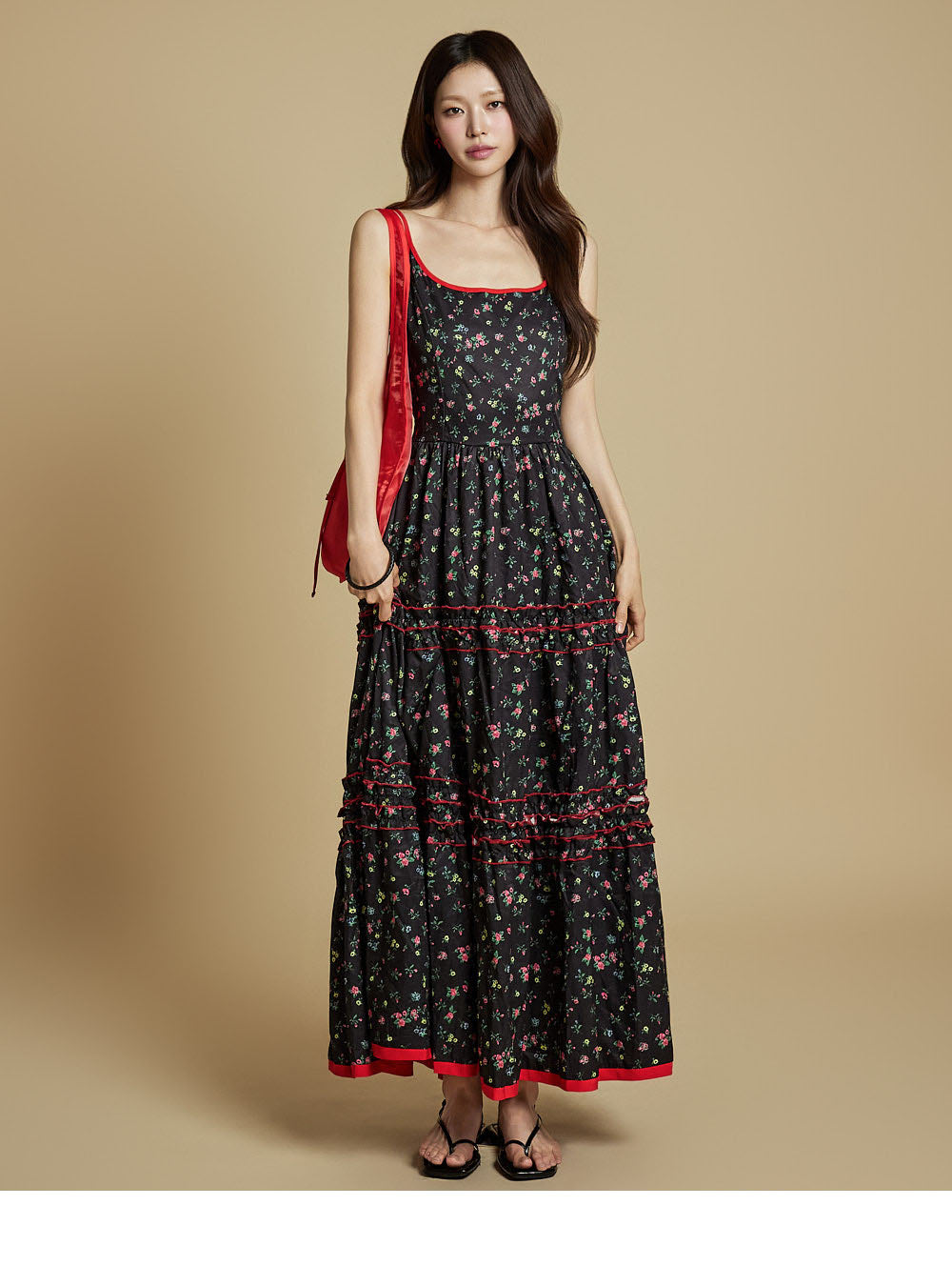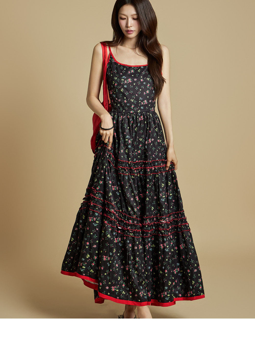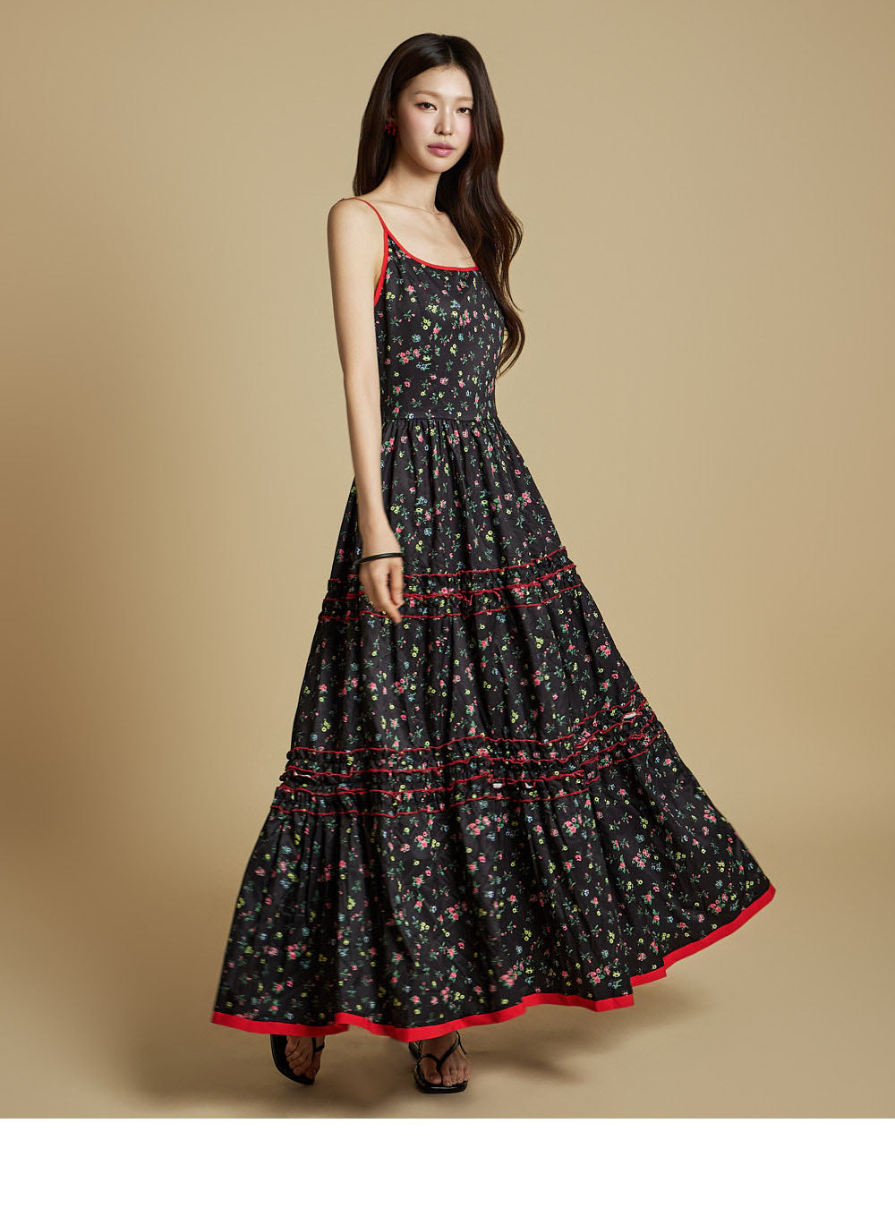 这款花卉拼色连衣裙带来活泼轻松的氛围。
