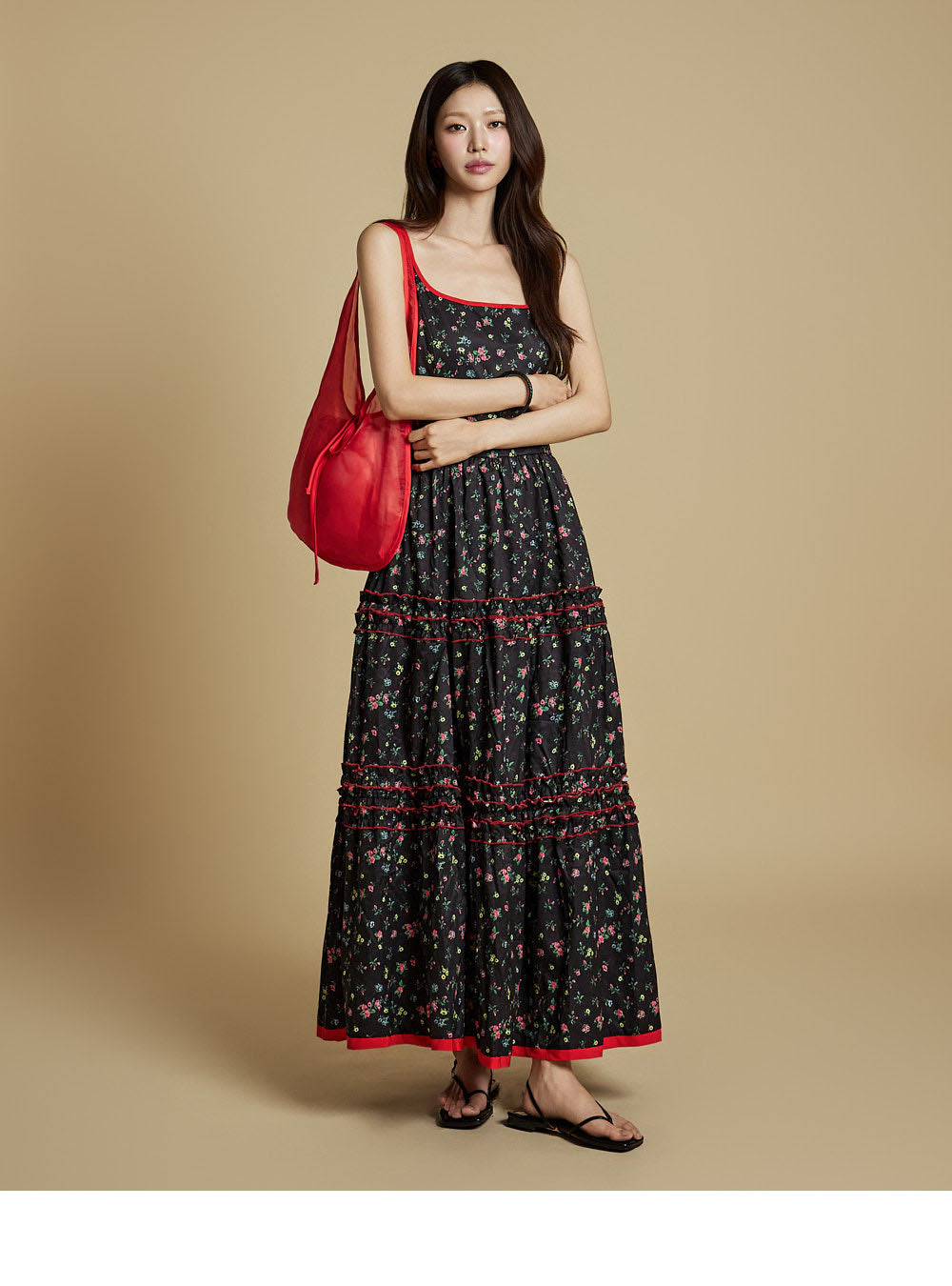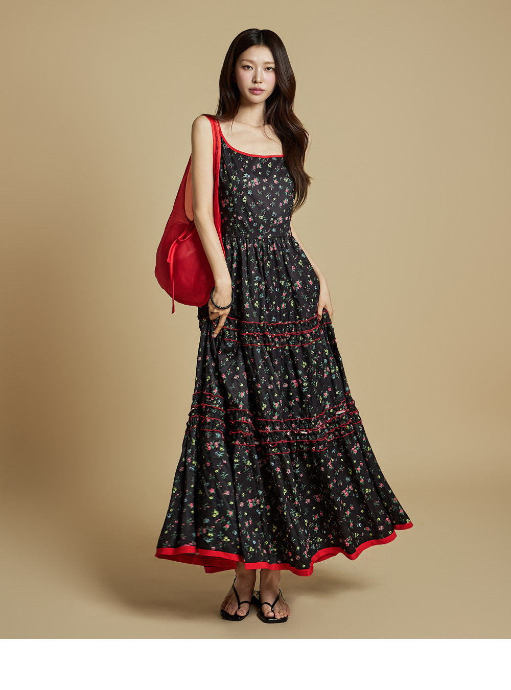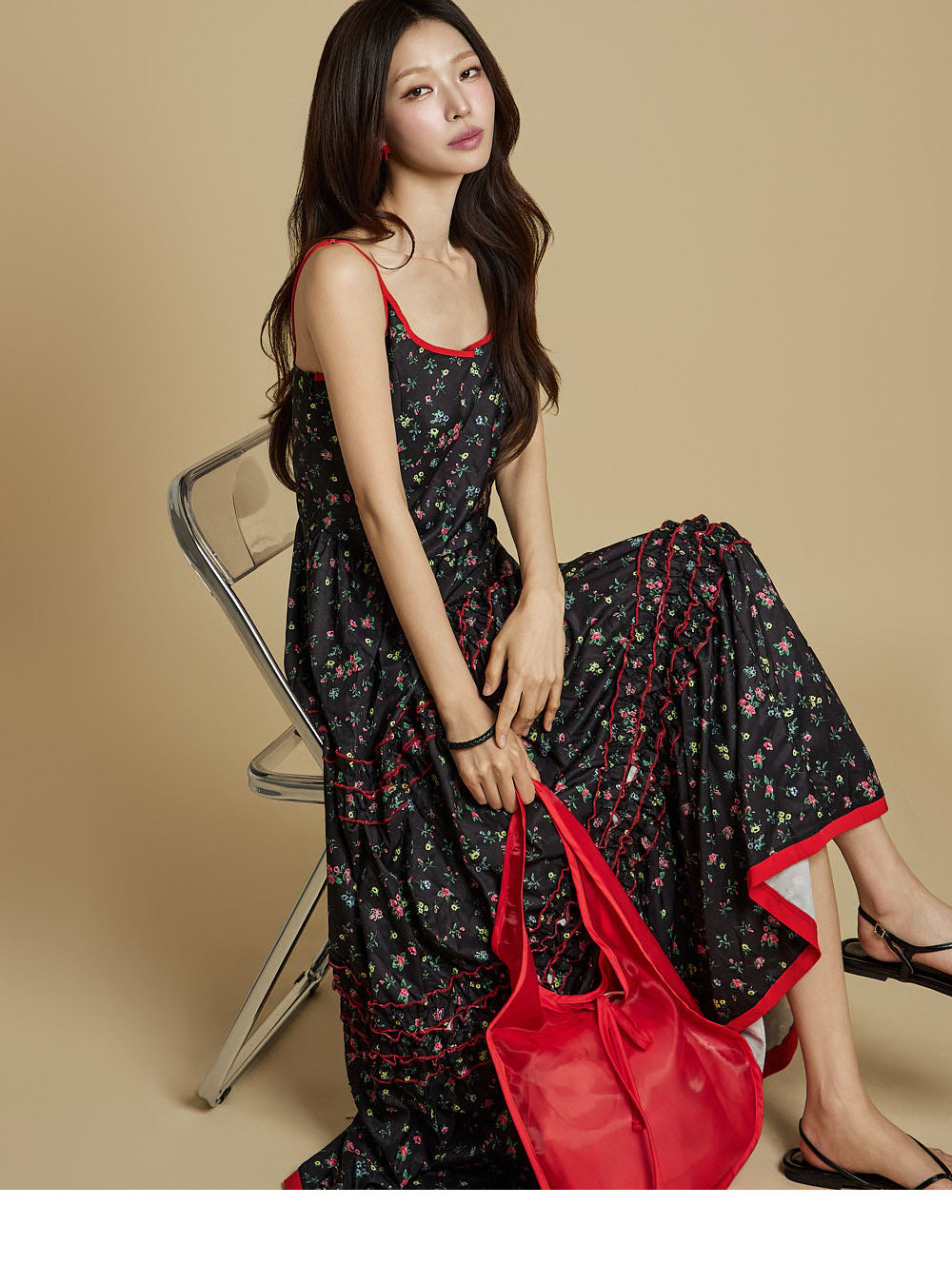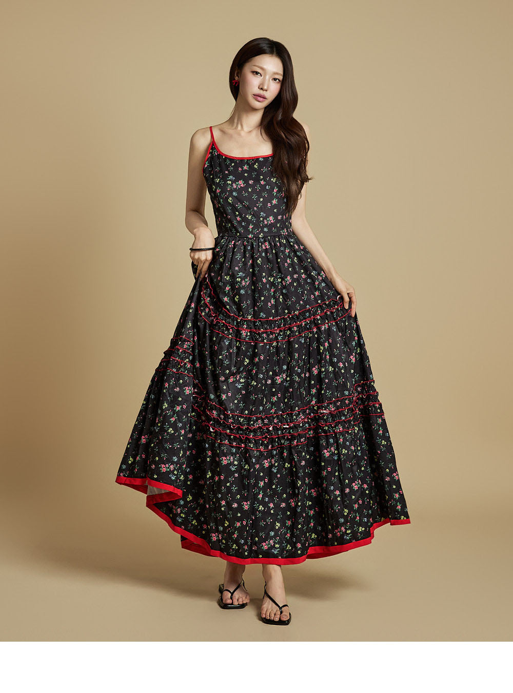 这款花卉拼色连衣裙带来活泼轻松的氛围。