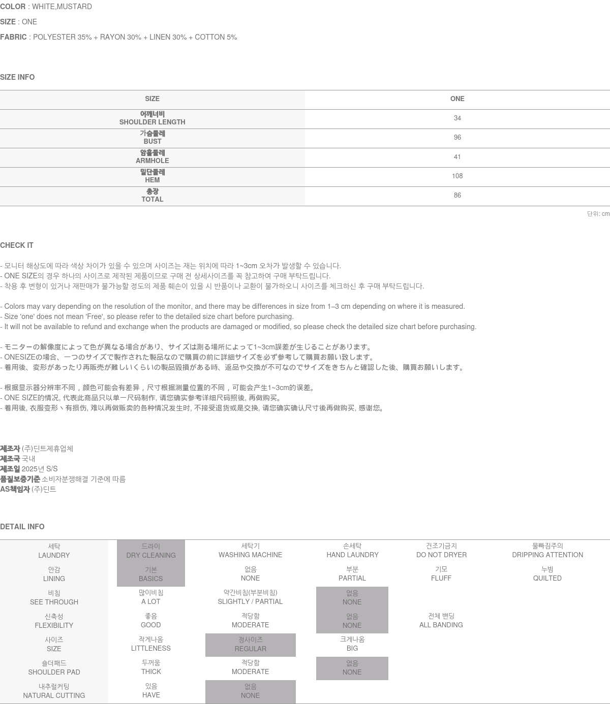 由于含有亚麻成分,因此适合温暖的天气。