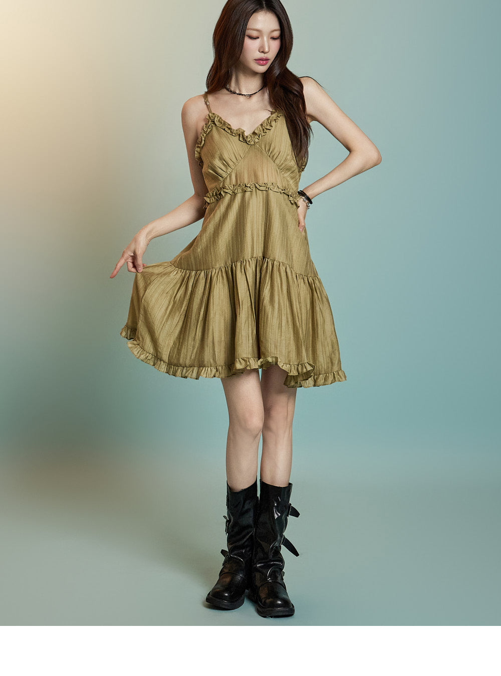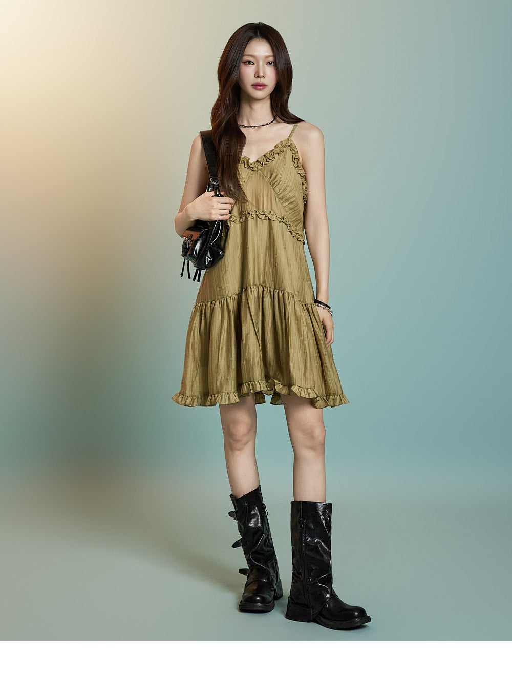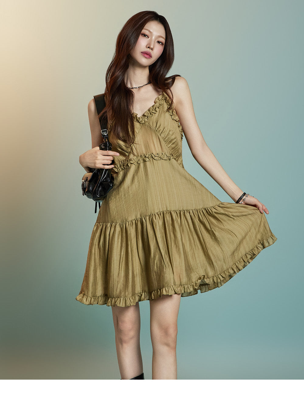 这款荷叶边迷你连衣裙为温暖的天气穿着带来甜美休闲的魅力。