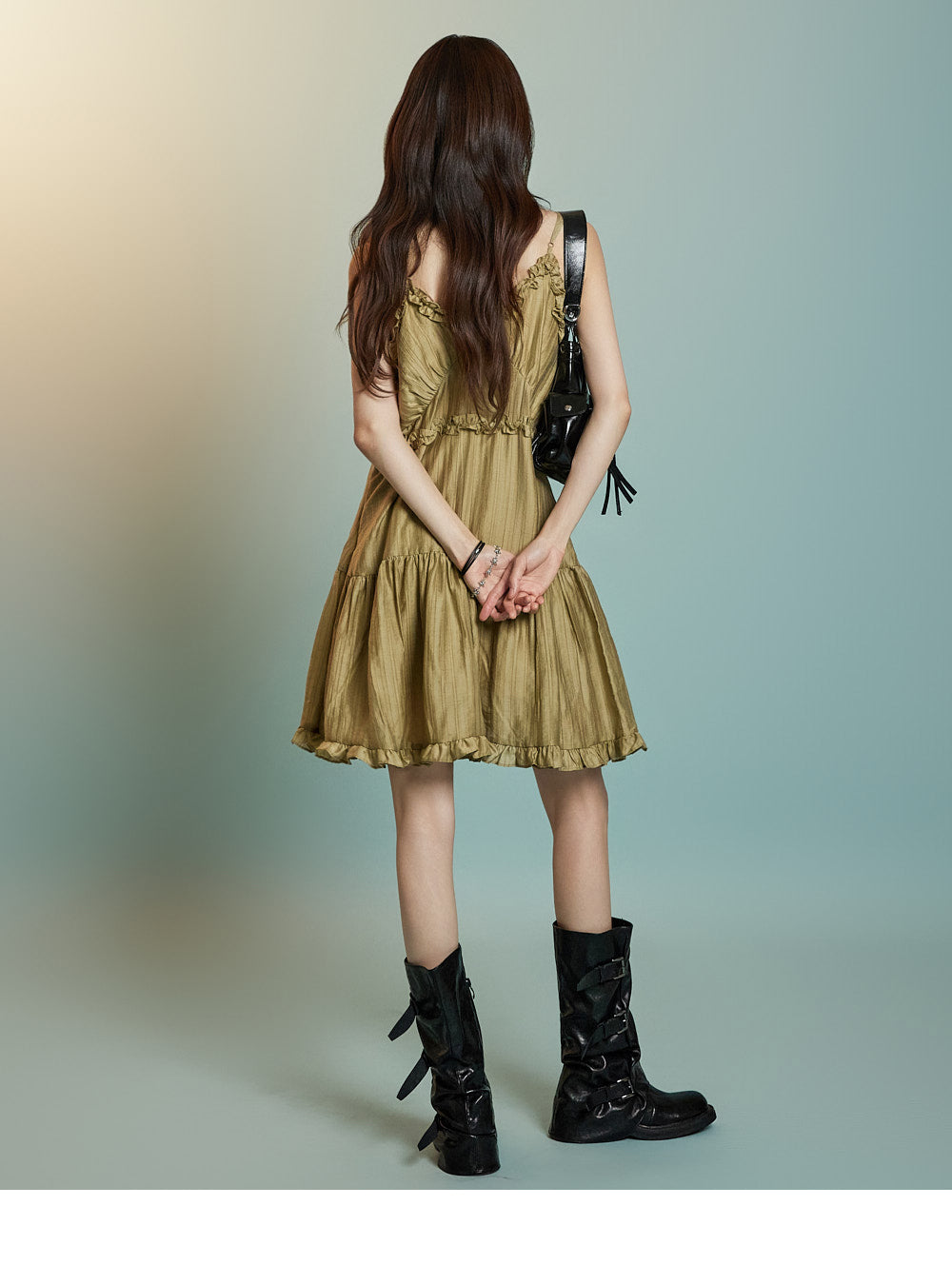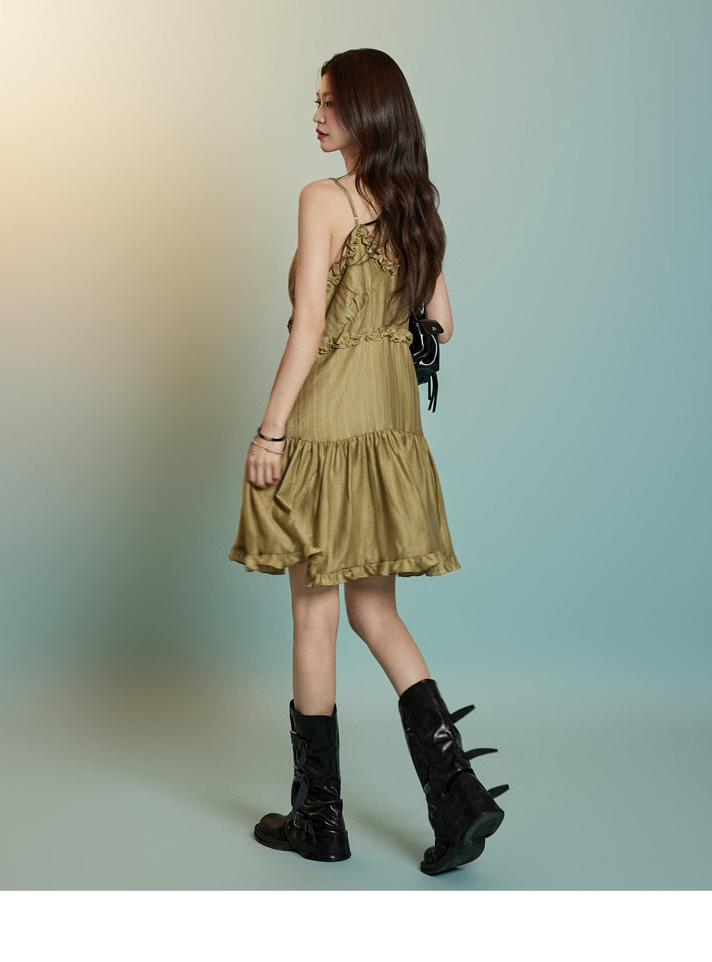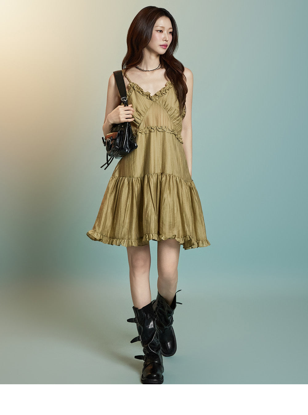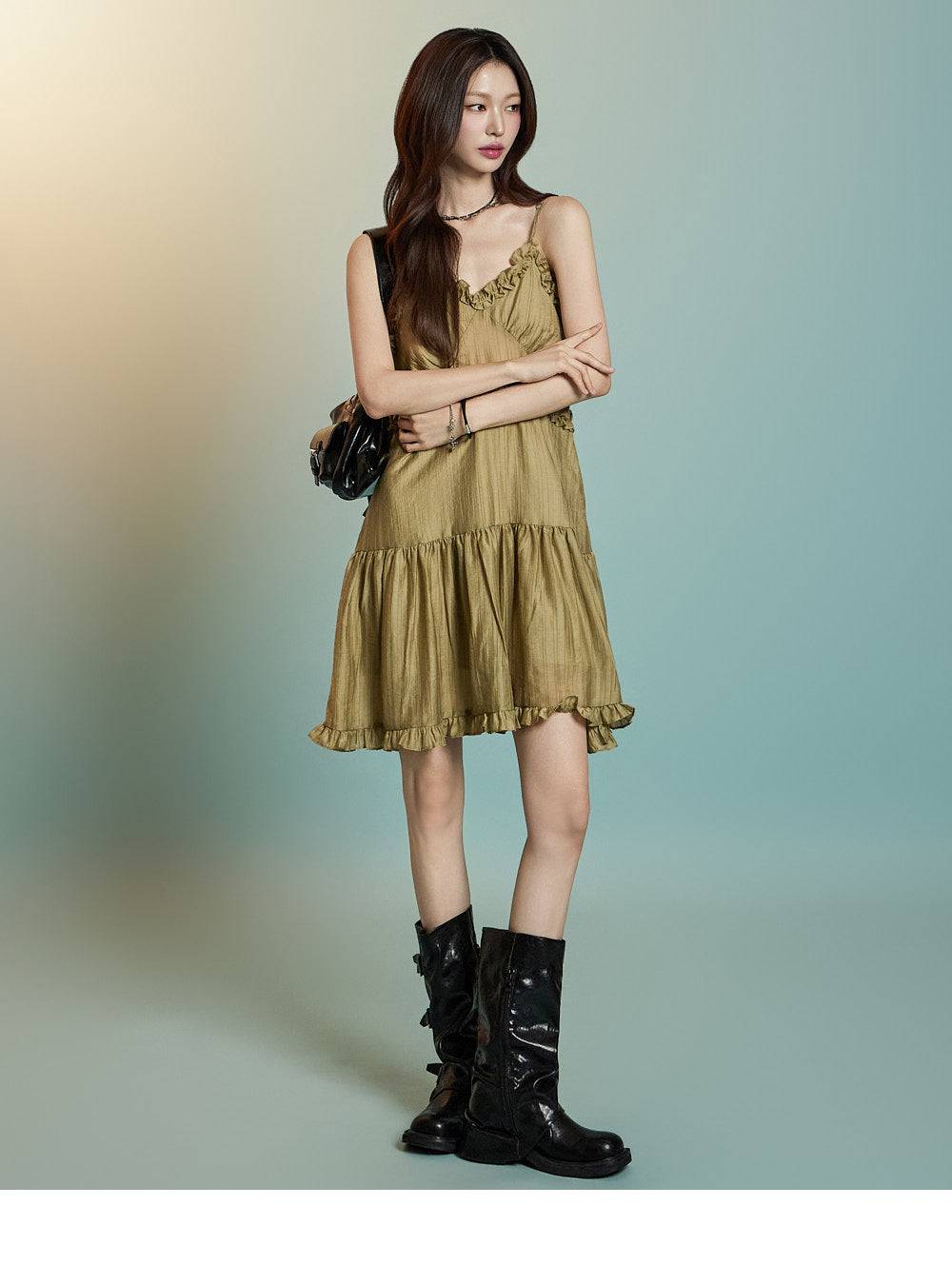 这款荷叶边迷你连衣裙为温暖的天气穿着带来甜美休闲的魅力。
