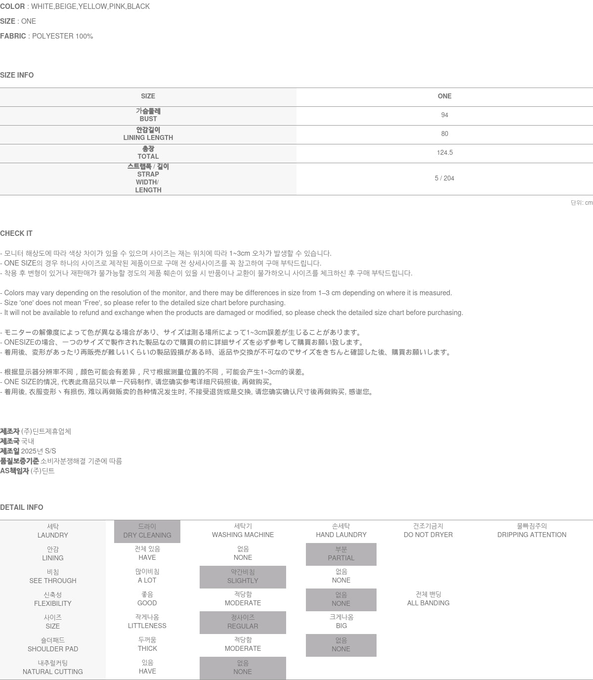 收到退回Dint的商品后,请填写随附的退货申请表,并按照收到时的包装方式重新包装(塑料袋、衣架、按金额赠送)。然后将其寄回Dint。