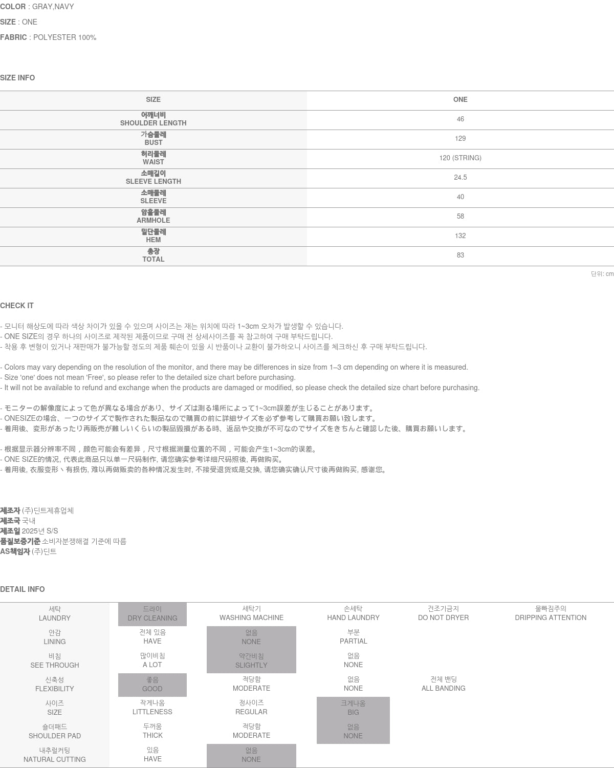 收到退回Dint的商品后,请填写随附的退货申请表,并按照收到时的包装方式重新包装(塑料袋、衣架、按金额赠送)。然后将其寄回Dint。