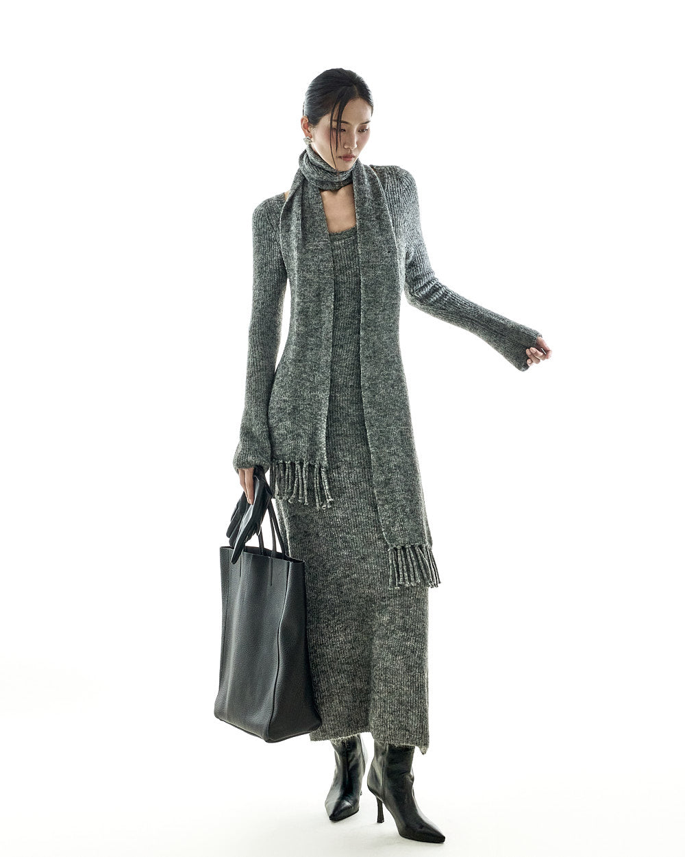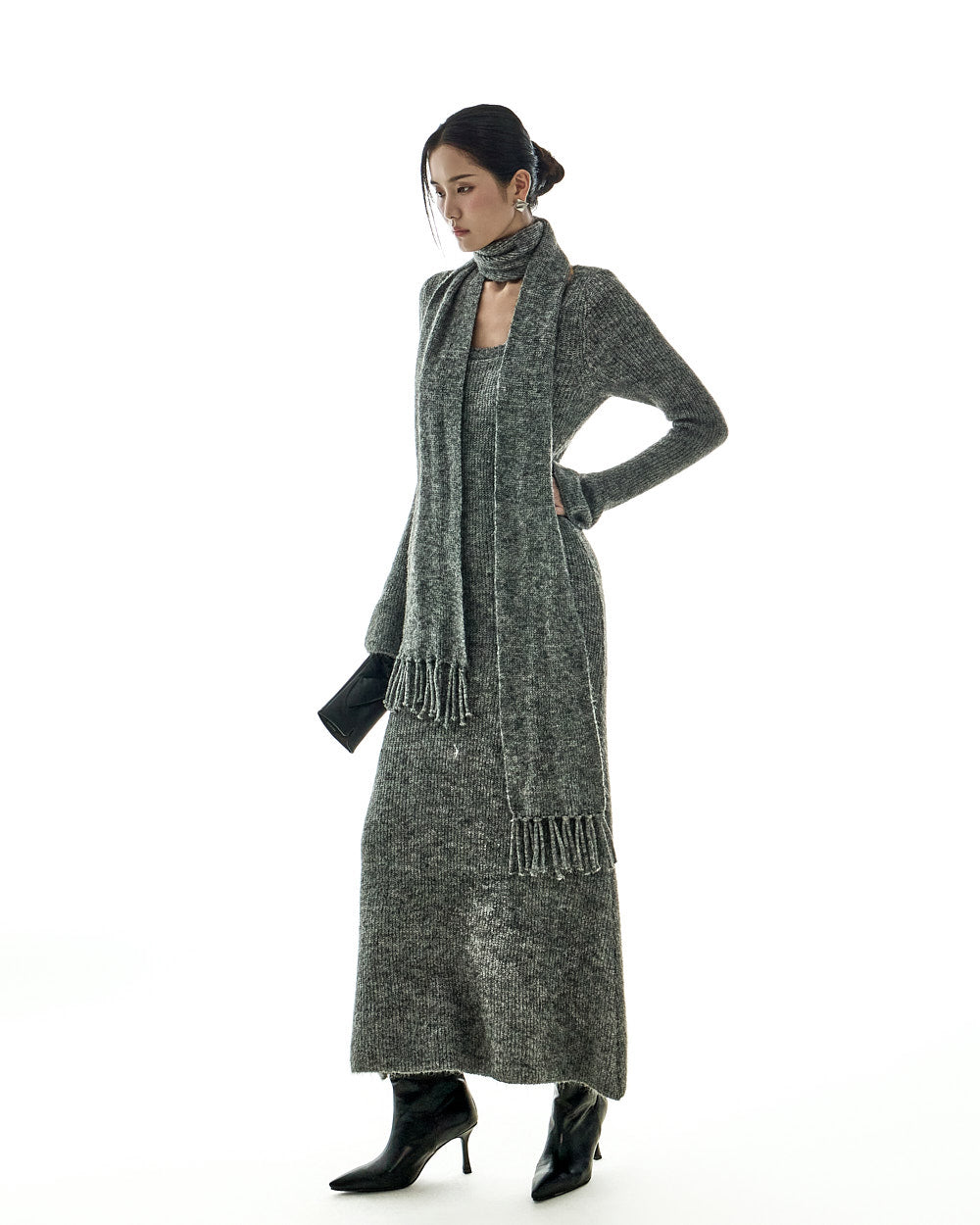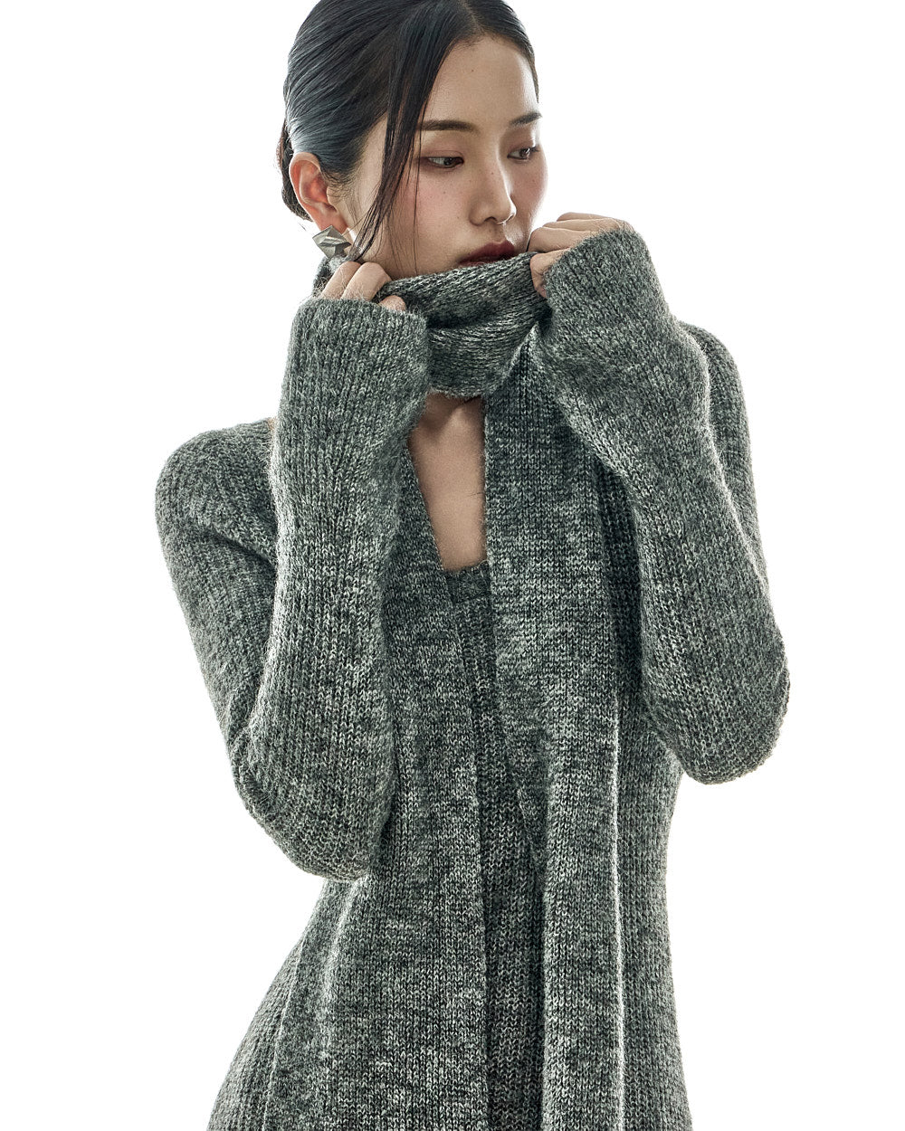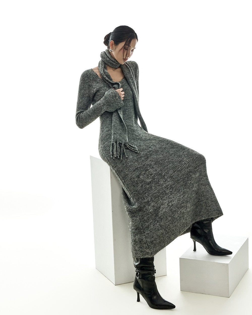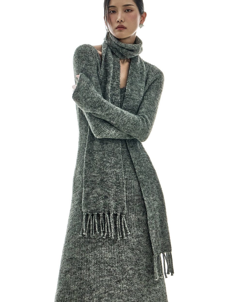 This casual muffler set knit dress is a stylish addition to your wardrobe.