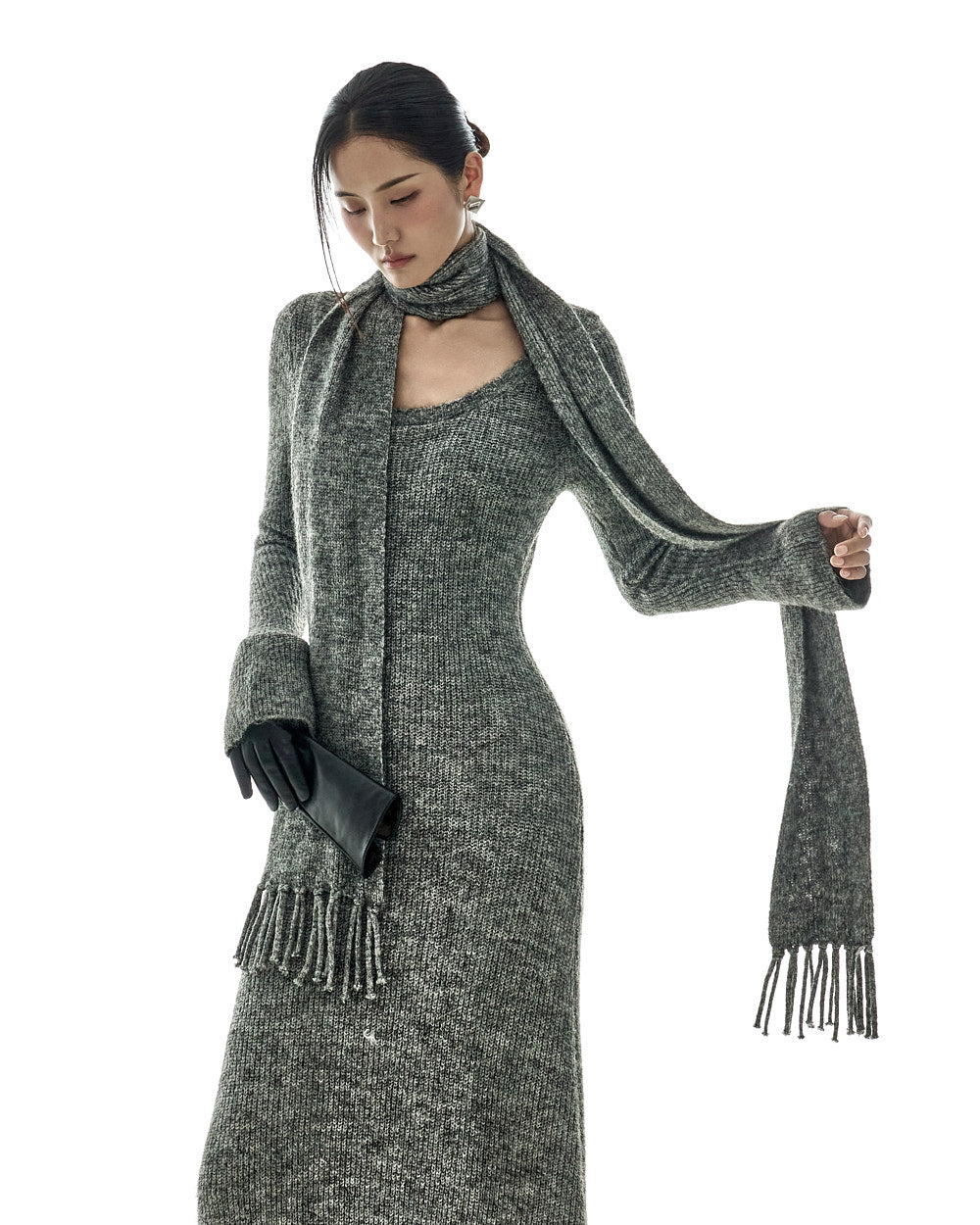 D5423 Knit Dress with Muffler