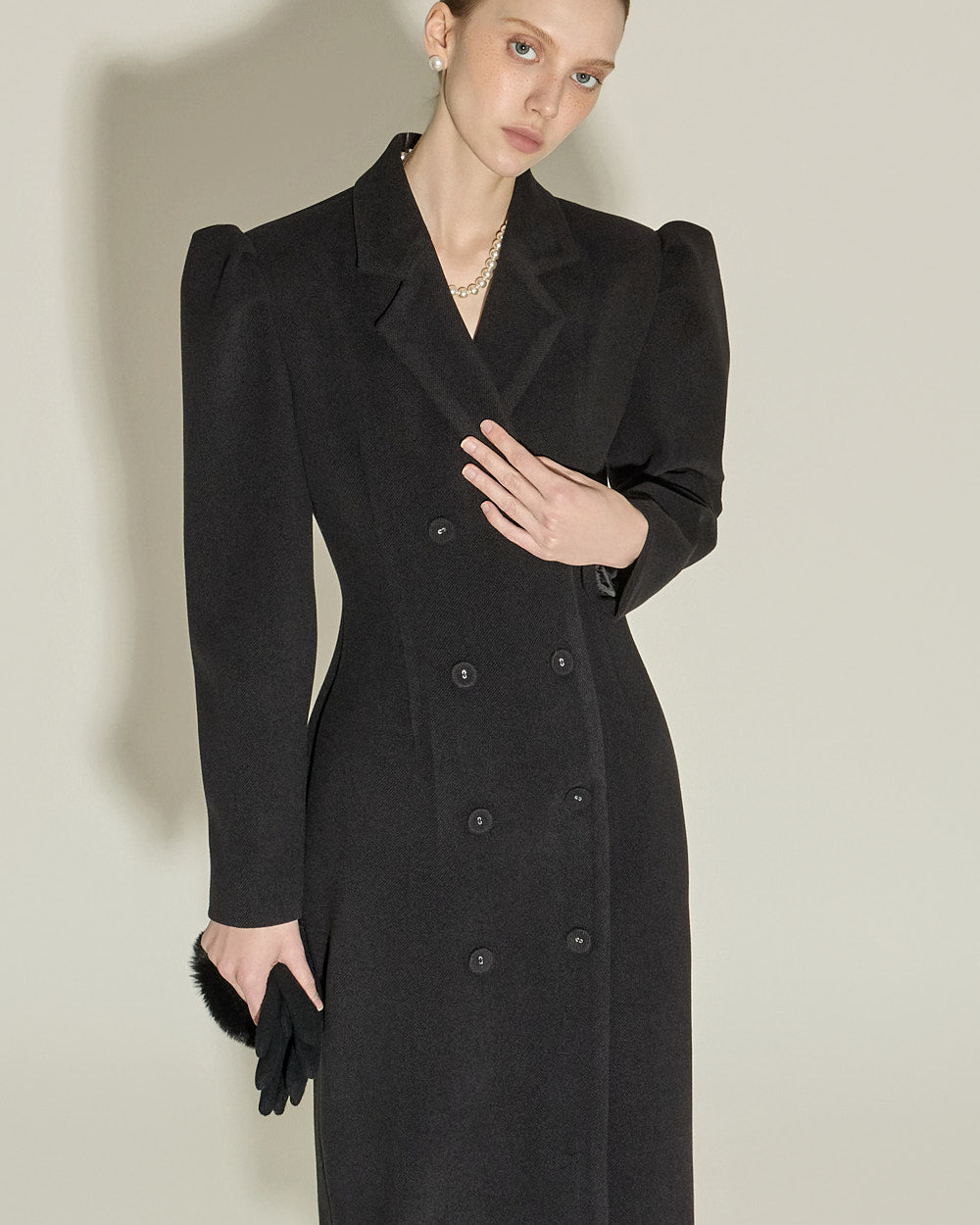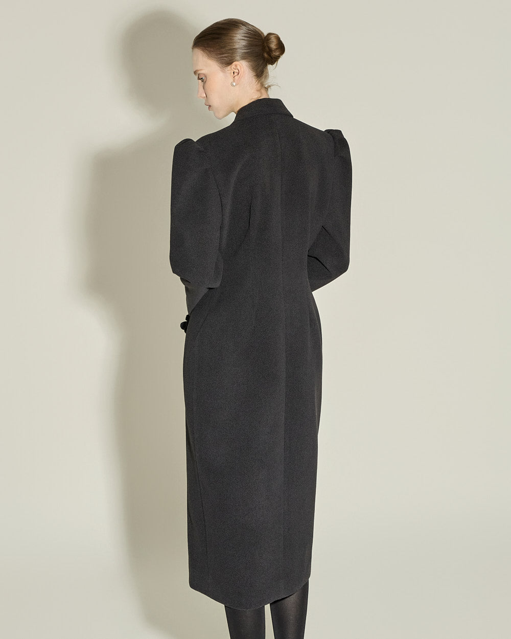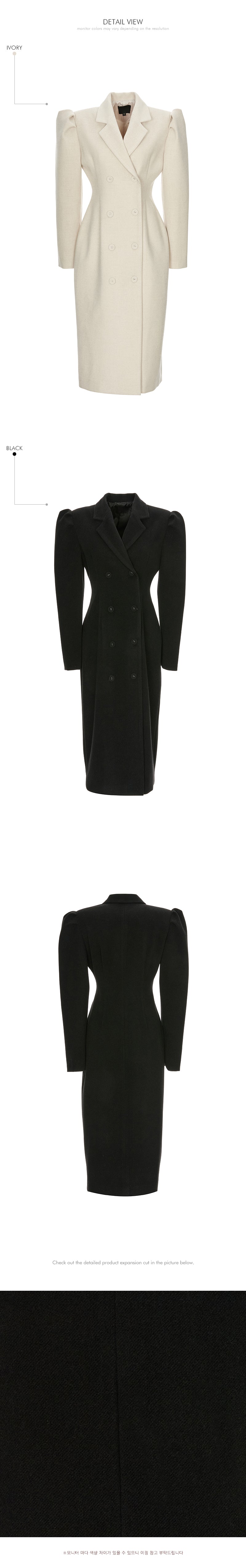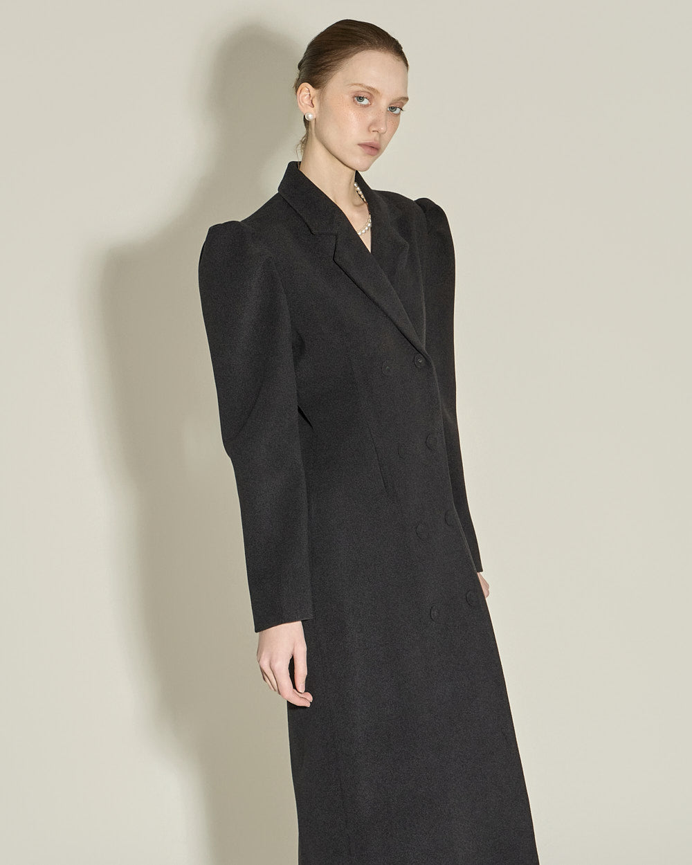 and the double button design and puffed shoulder detailing