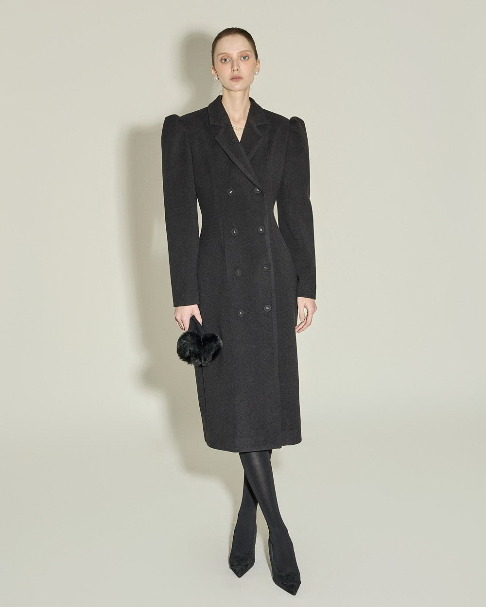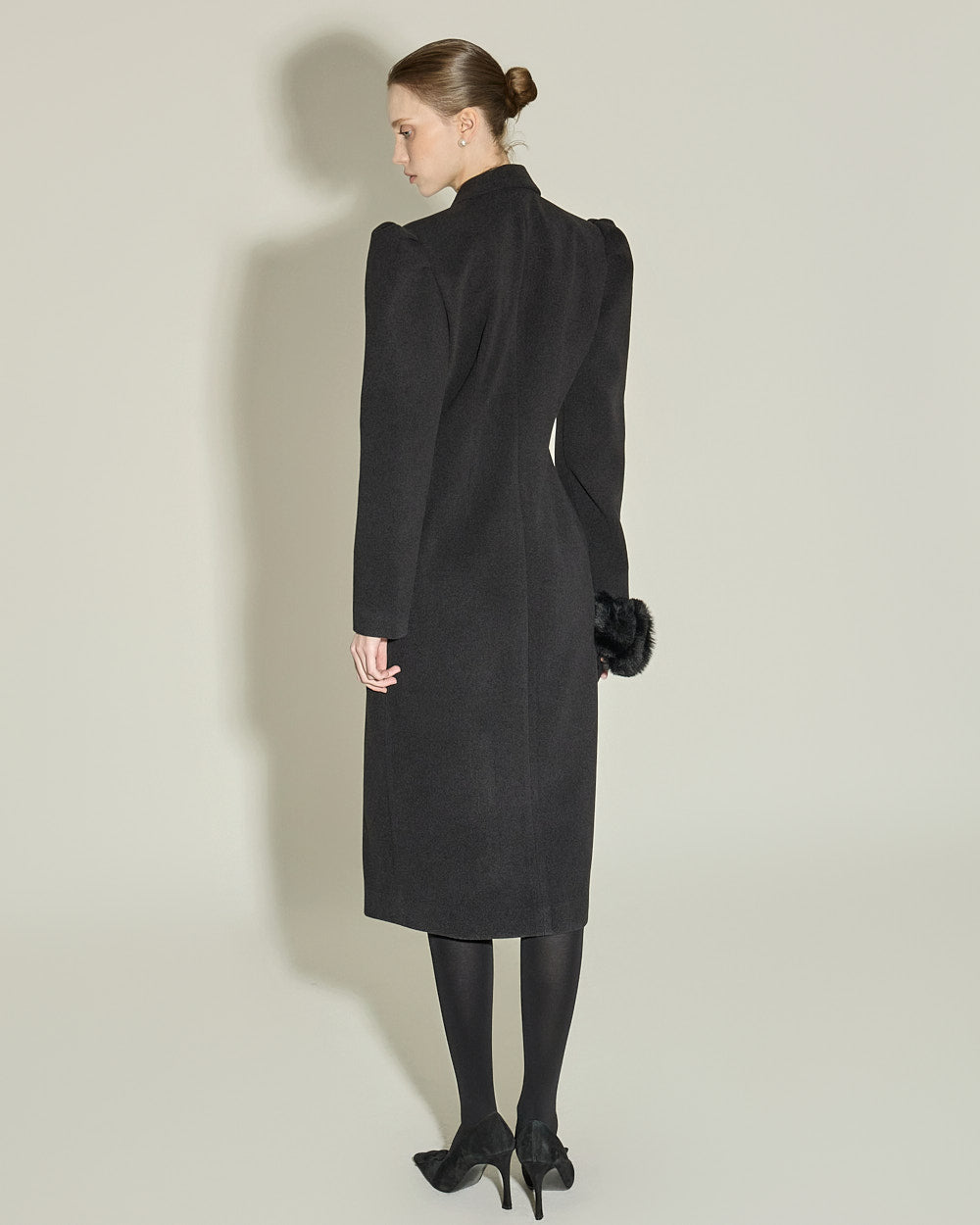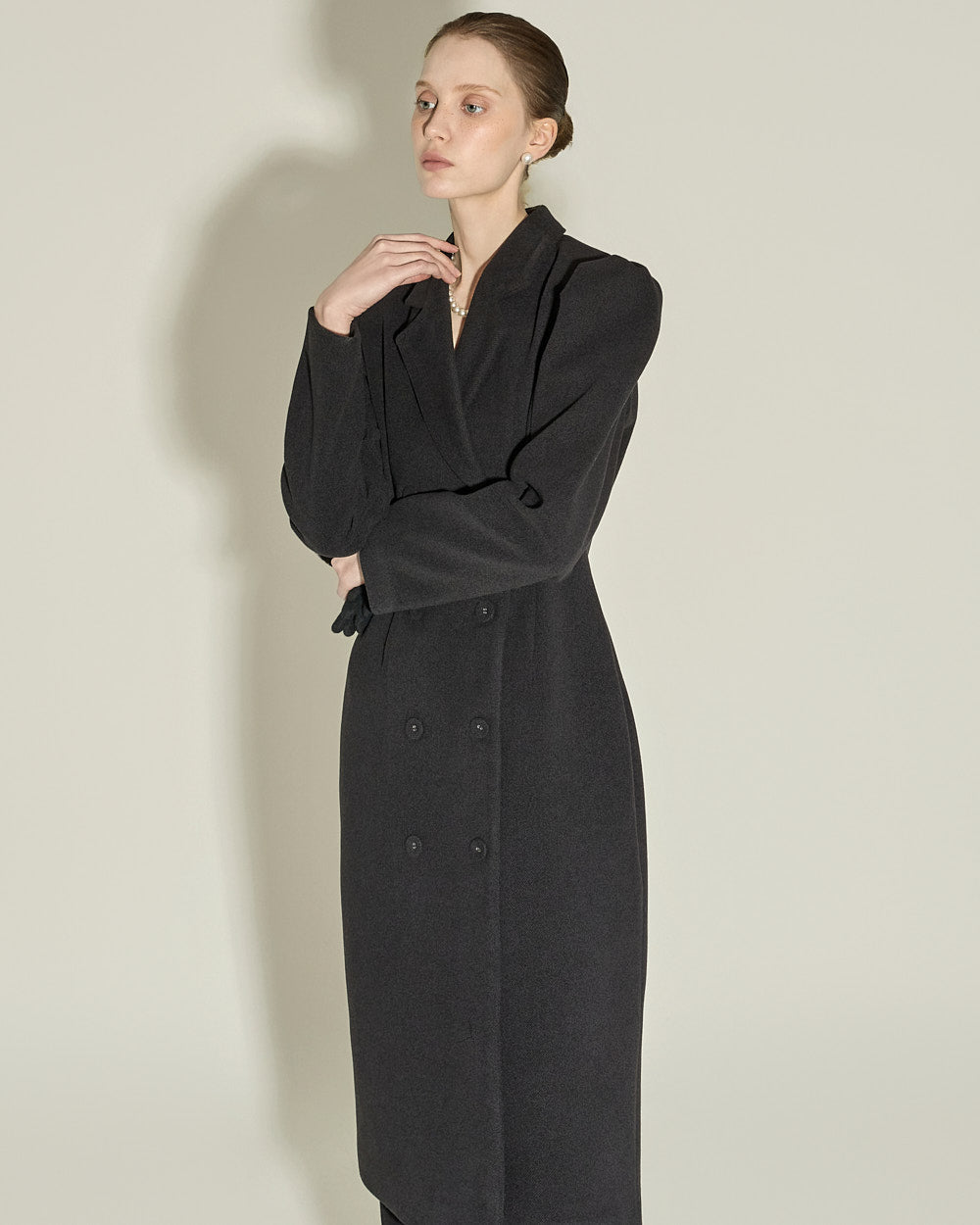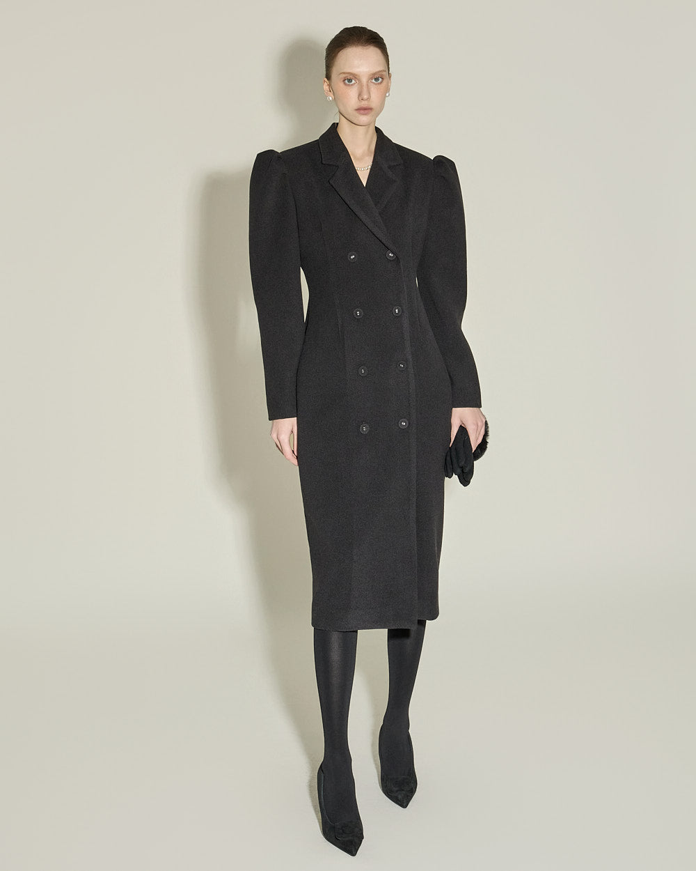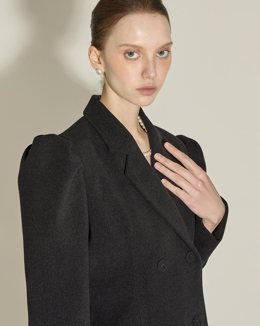 and the double button design and puffed shoulder detailing