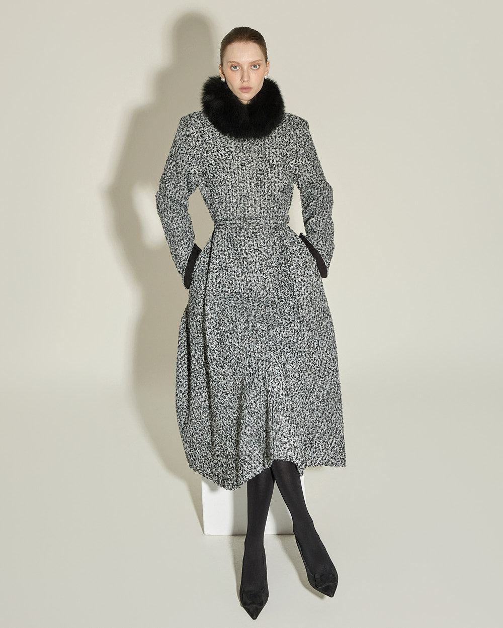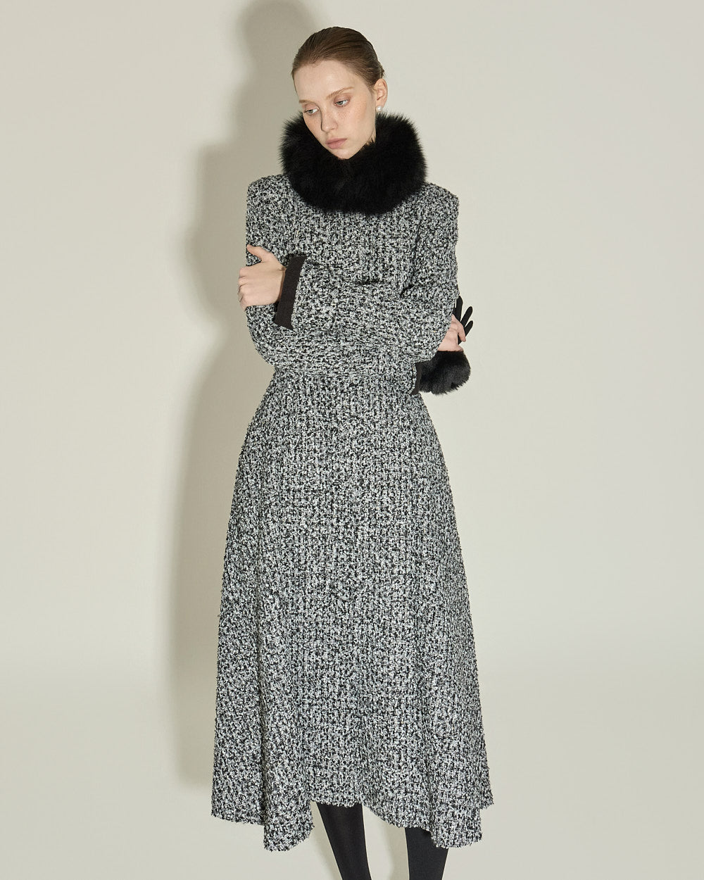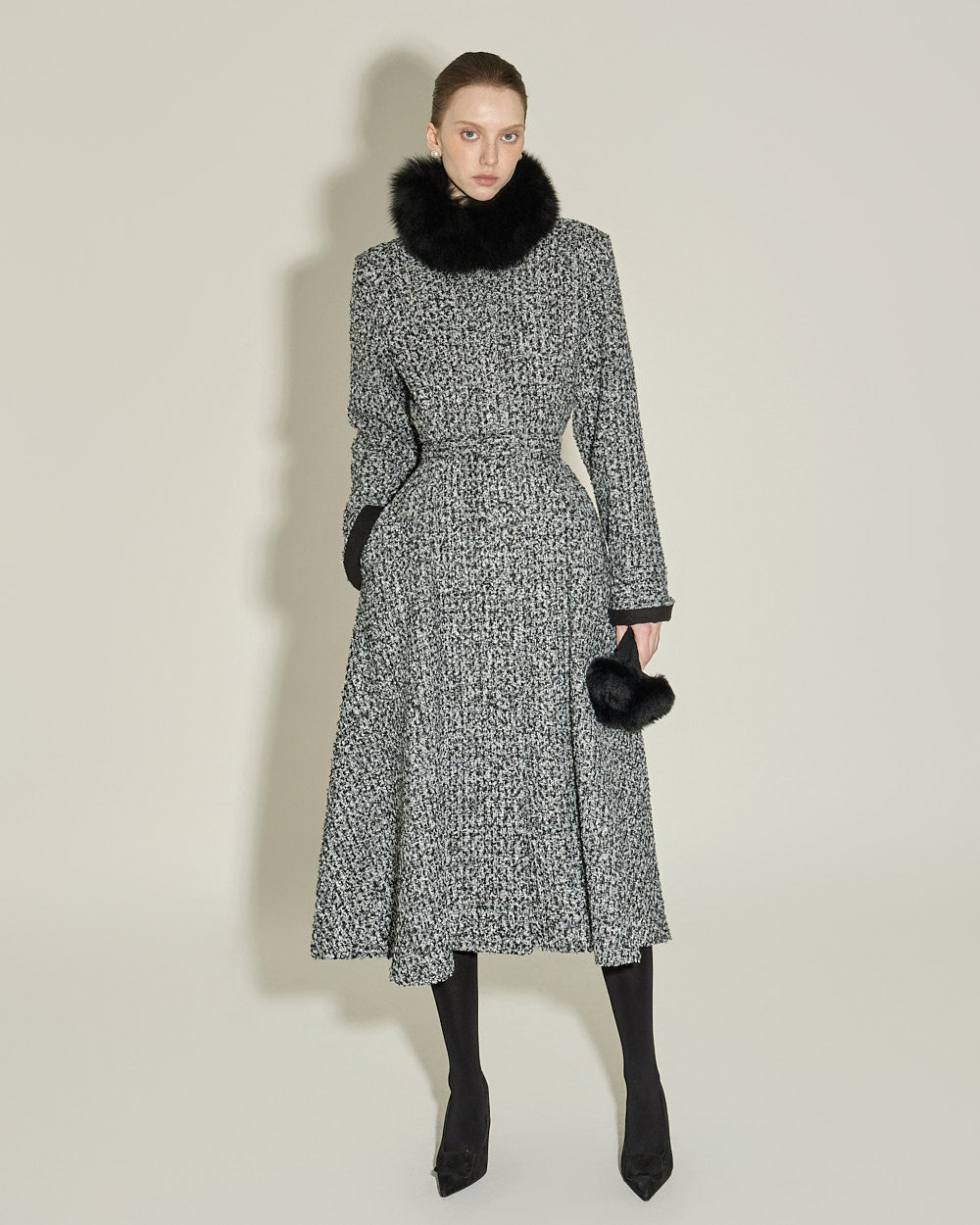and the flared silhouette naturally flows out, creating an elegant look.