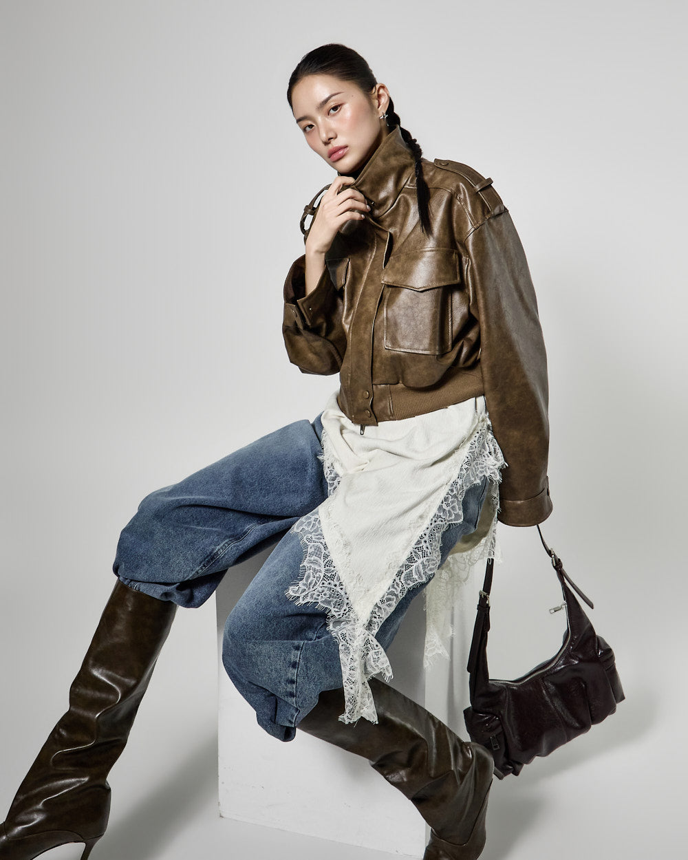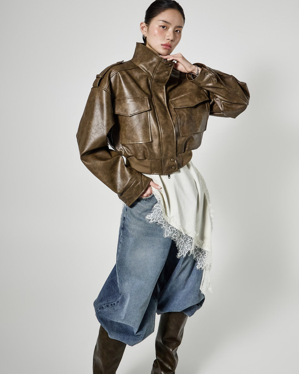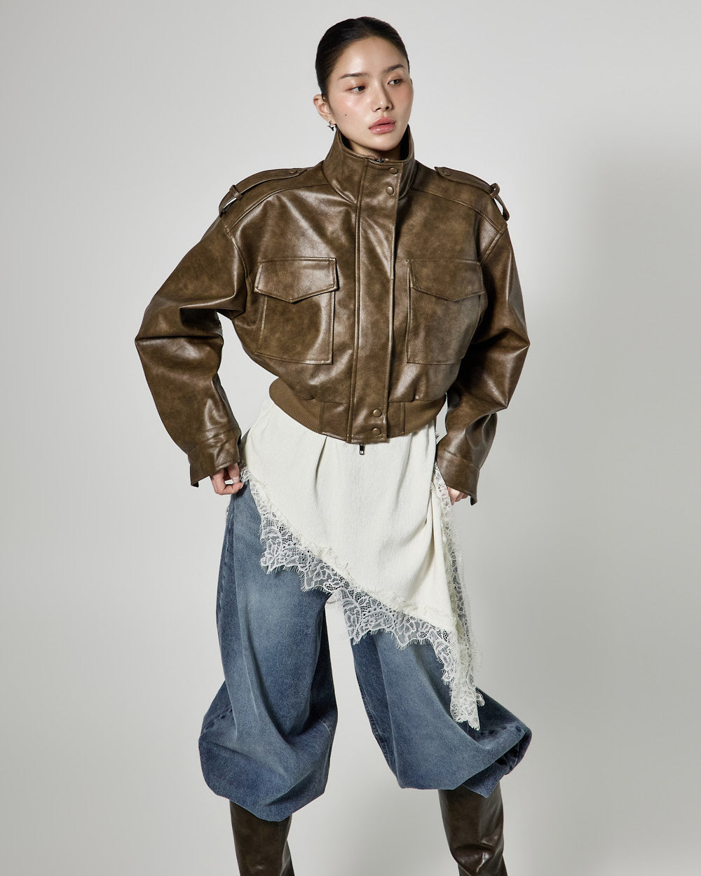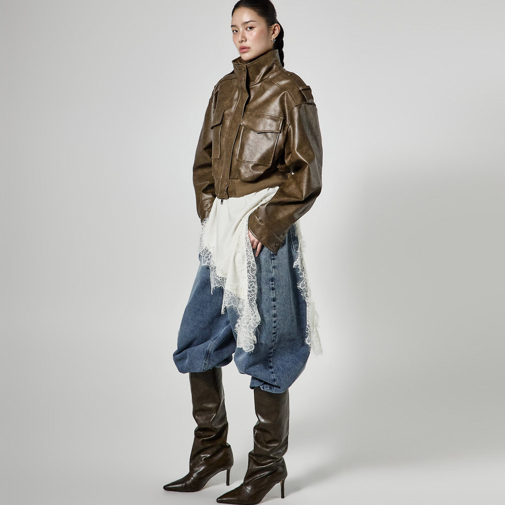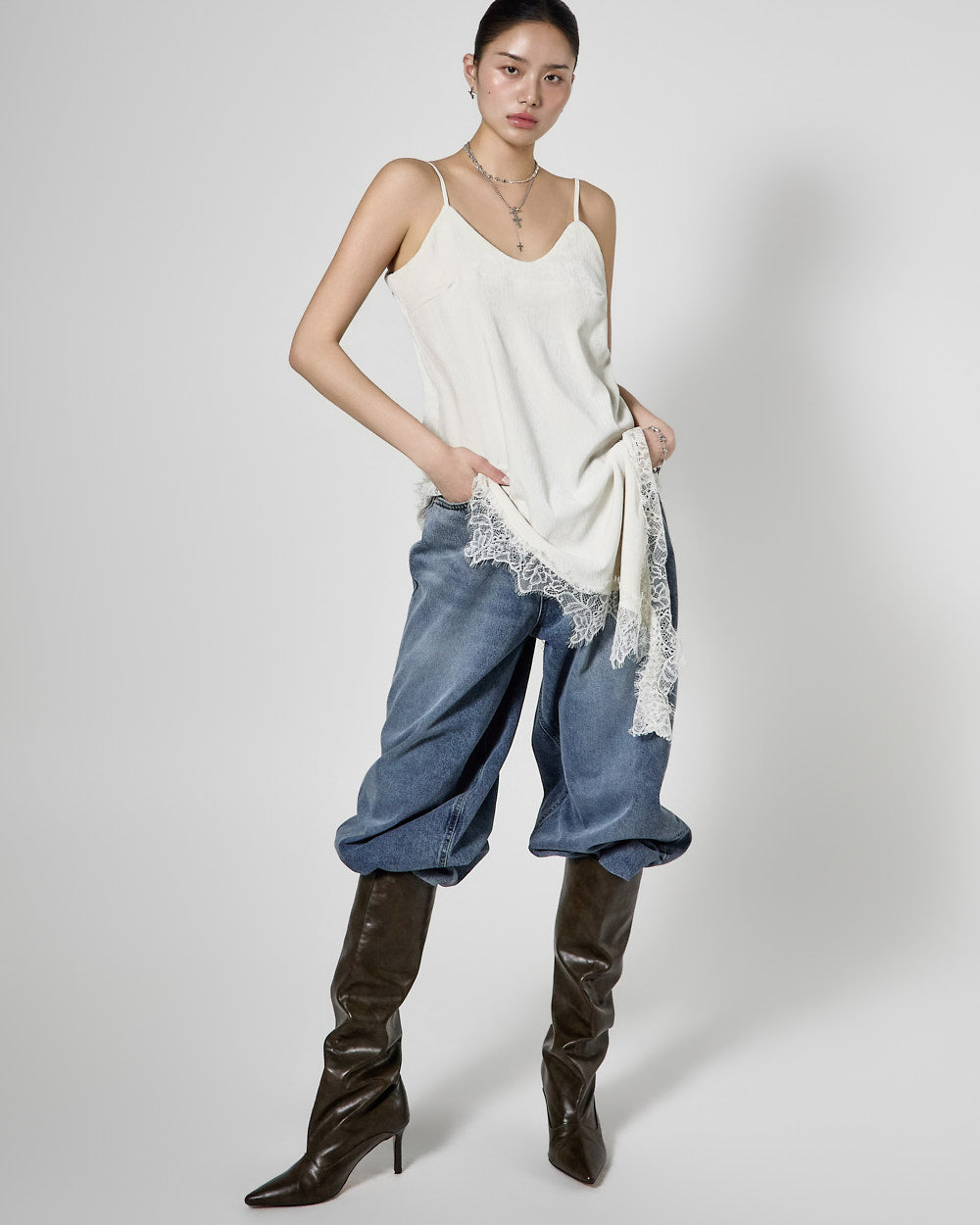 Designed with a loose-fit silhouette for a relaxed wear, it features asymmetrical lace detailing and a side slit that adds natural movement and visual interest.