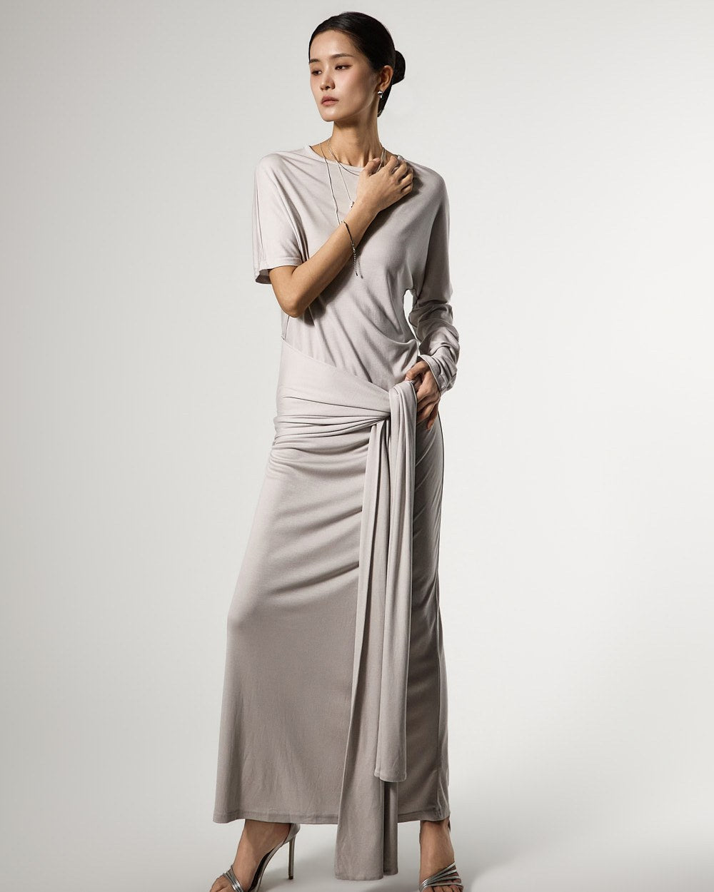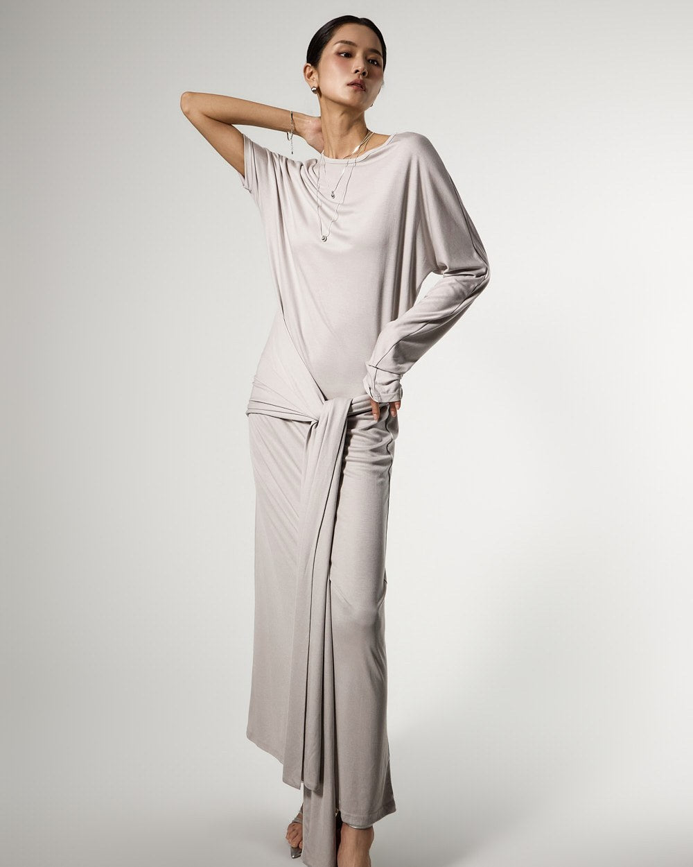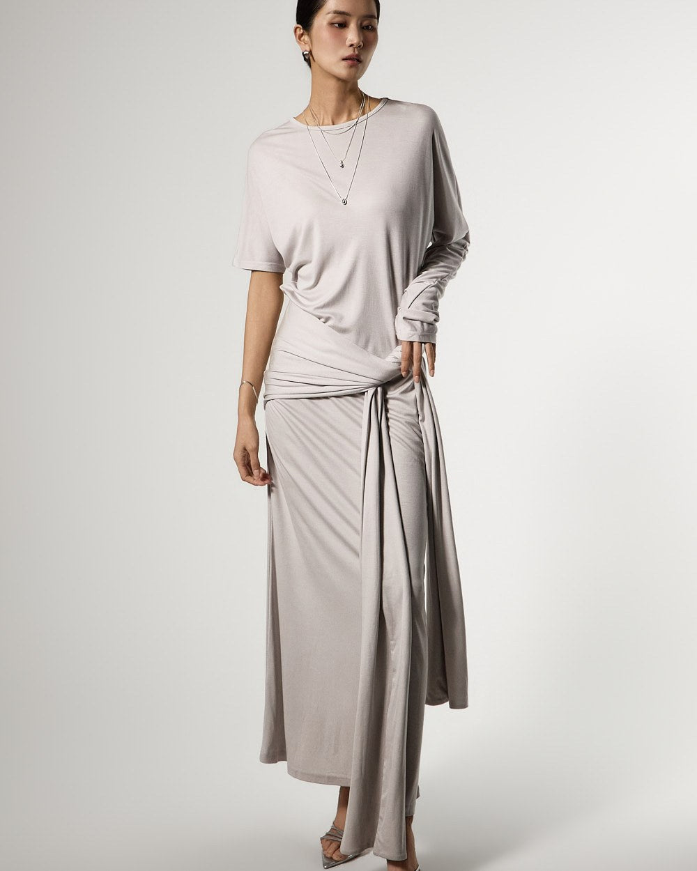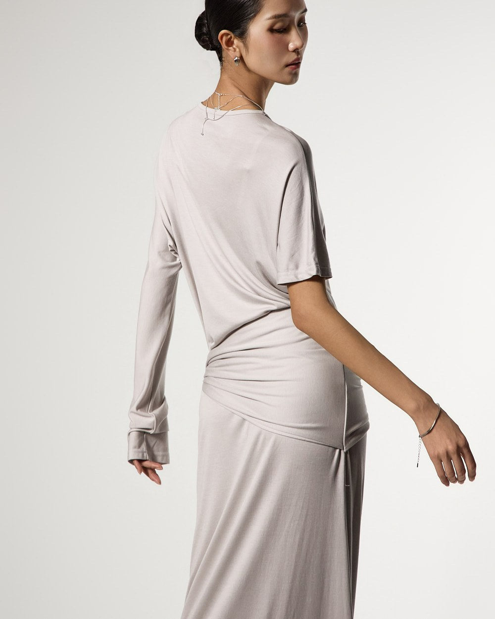 不对称的袖子设计增添了独特的触感,
