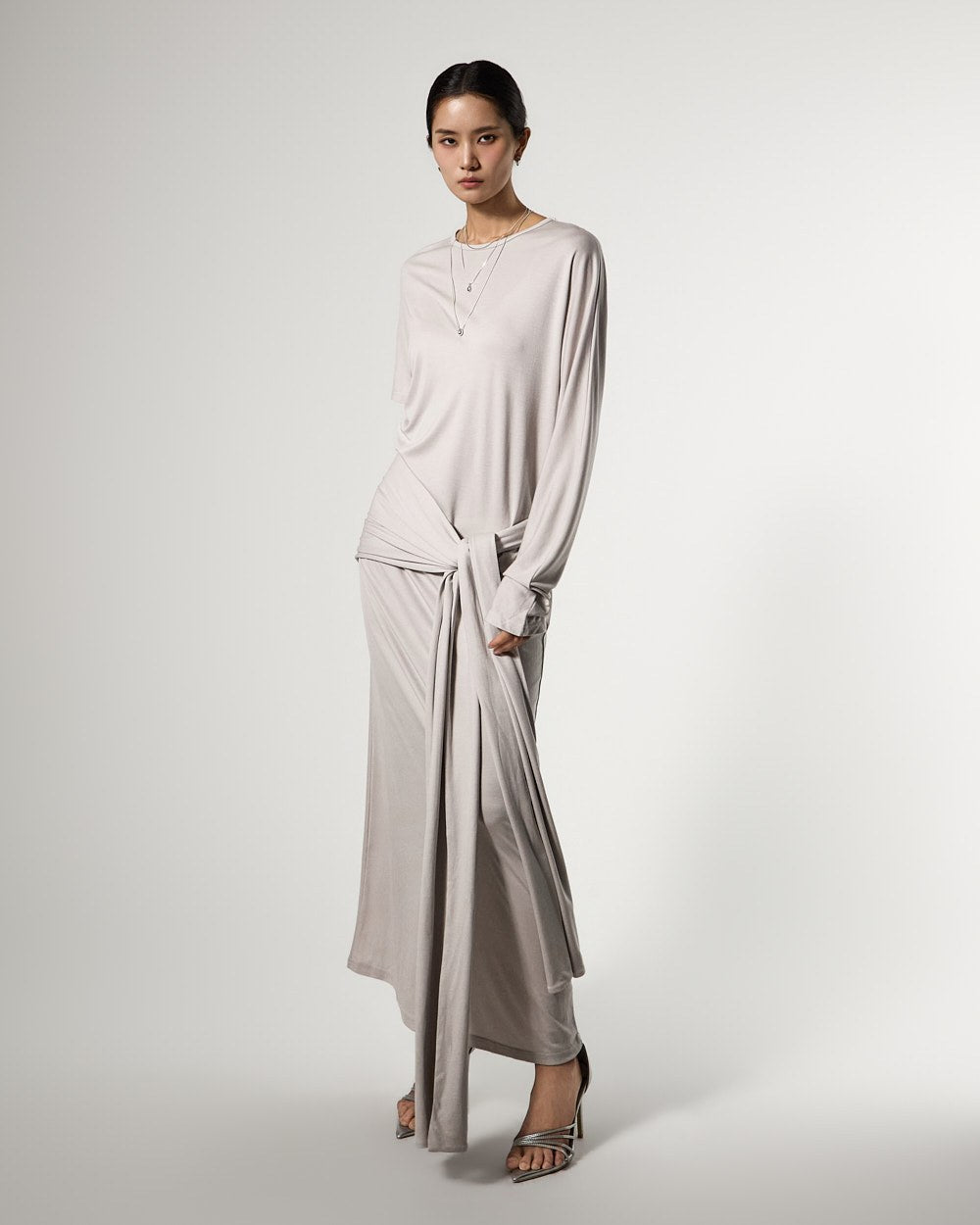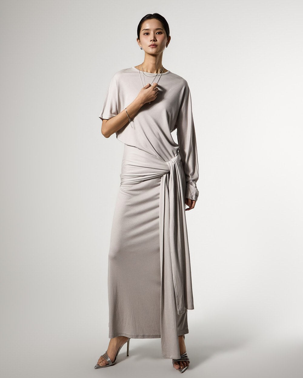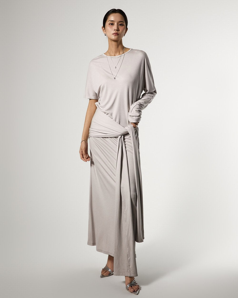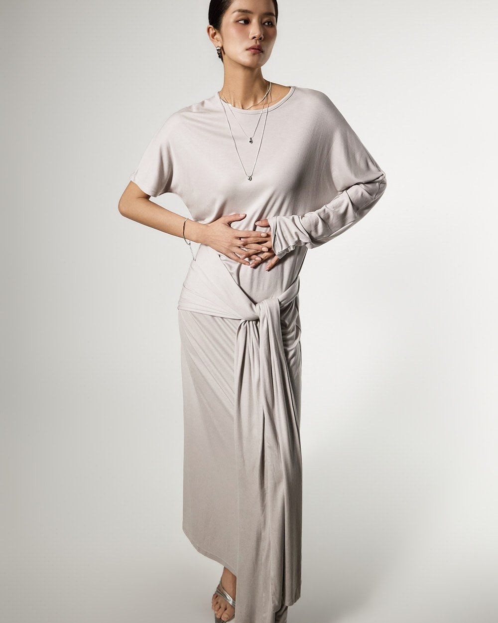 不对称的袖子设计增添了独特的触感,