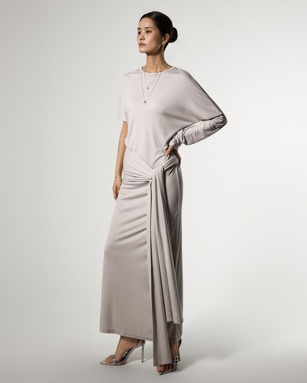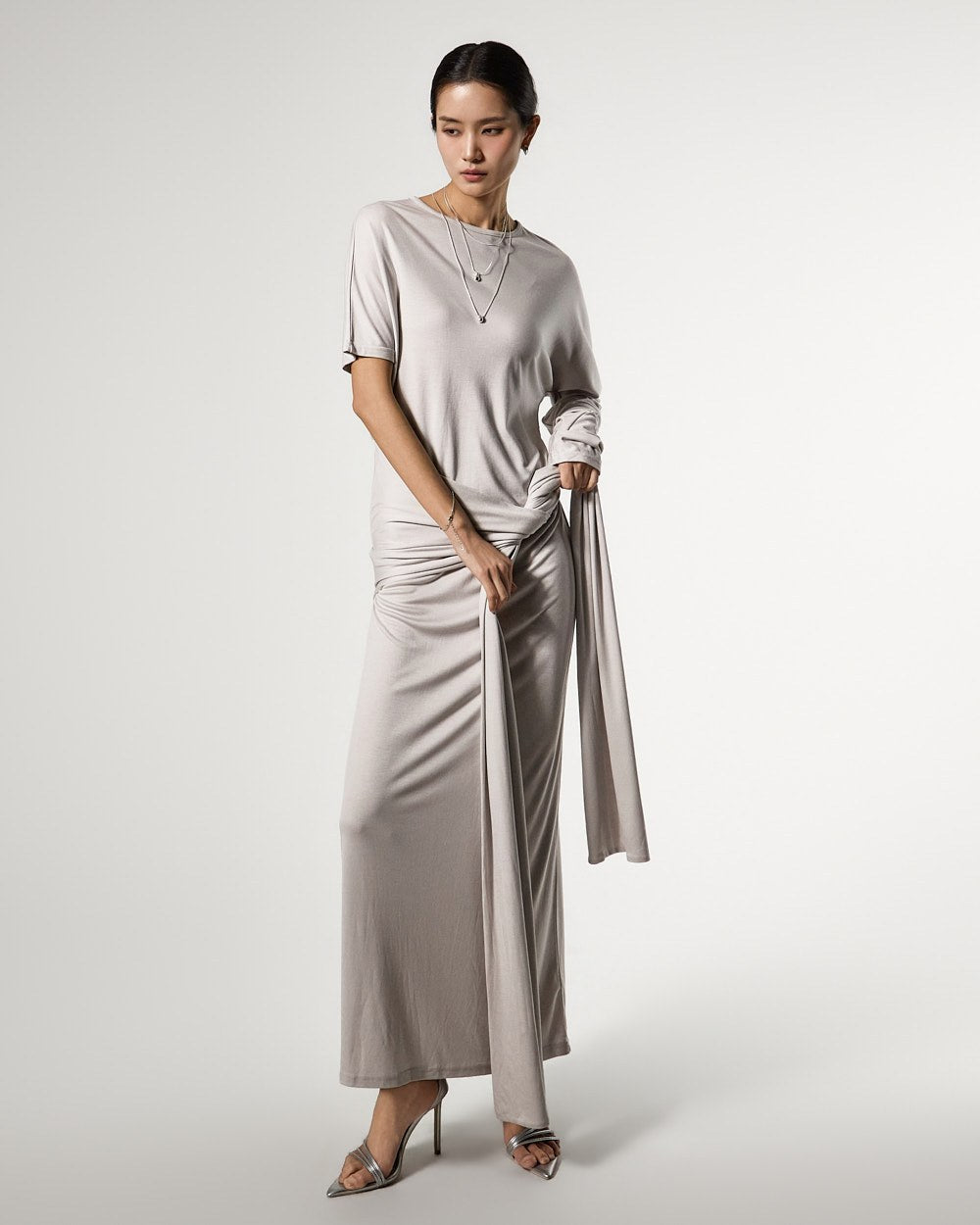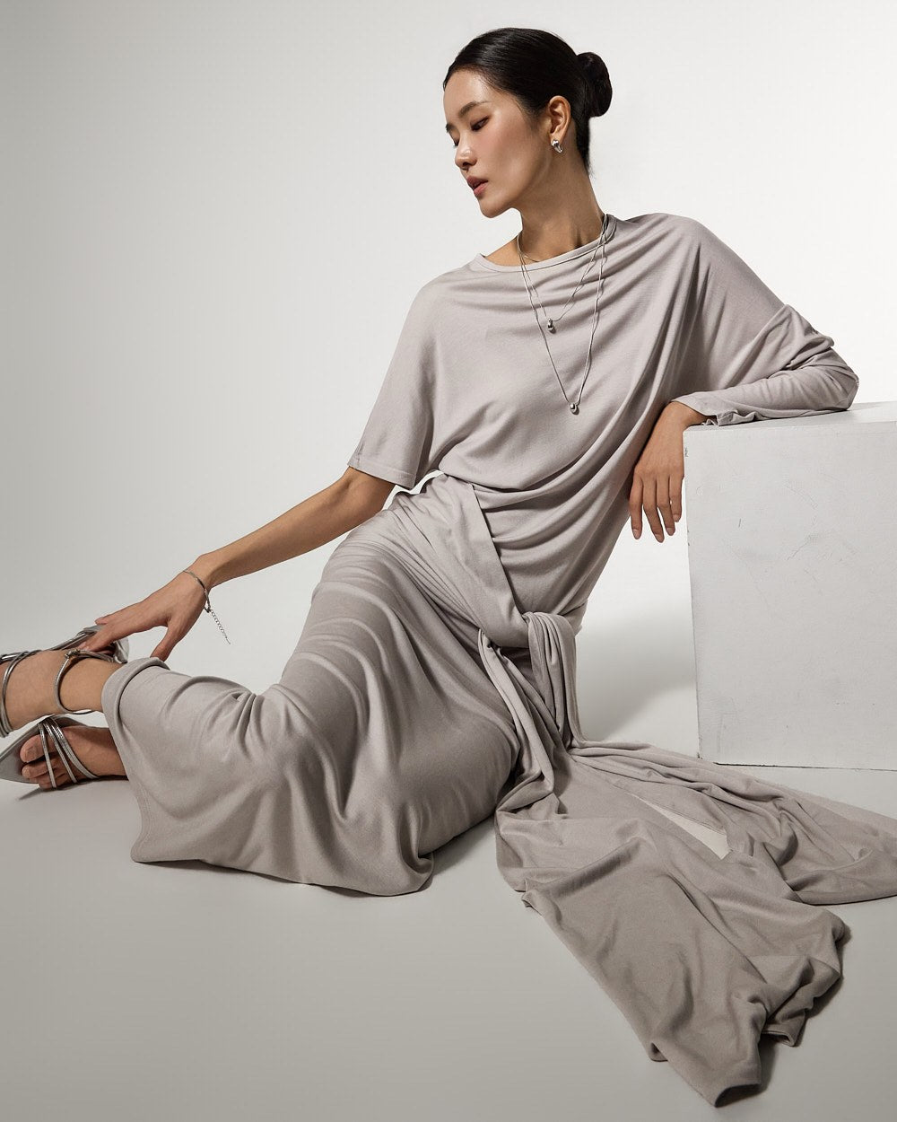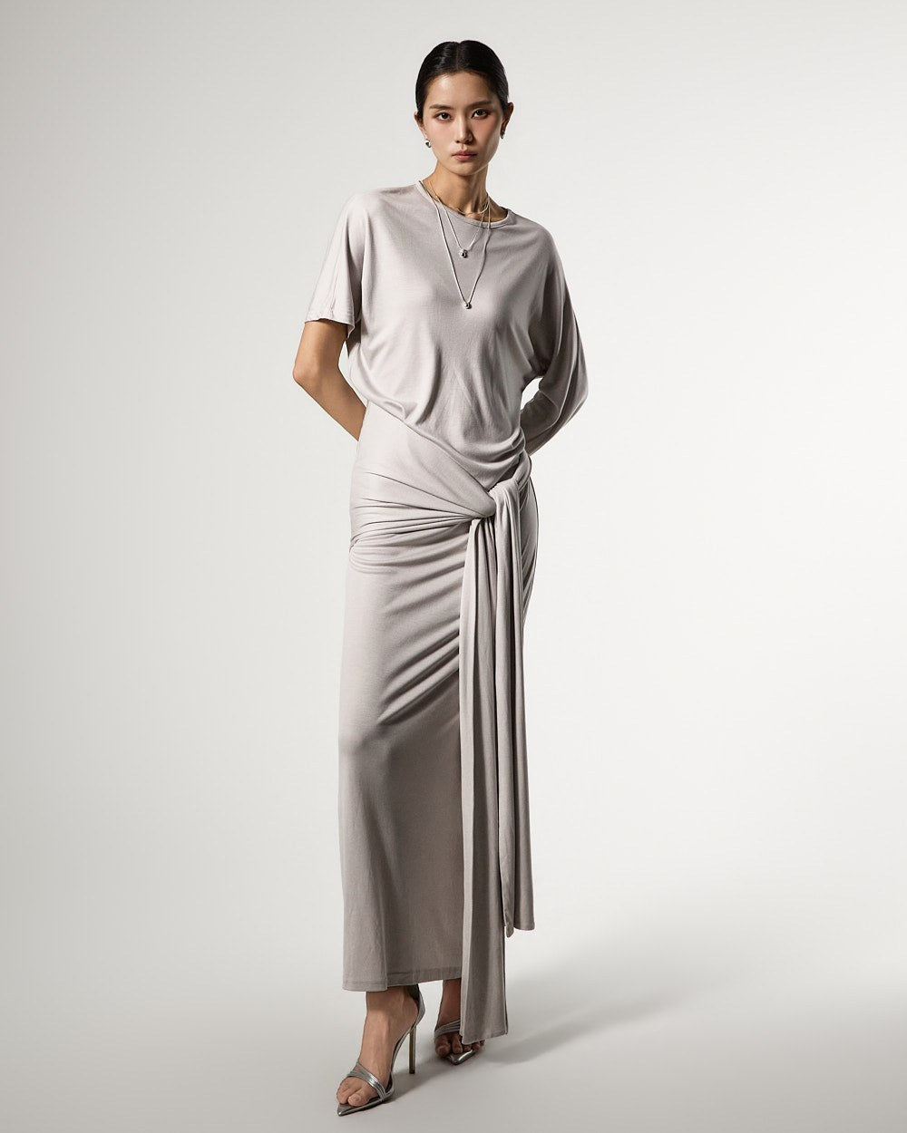 不对称的袖子设计增添了独特的触感,
