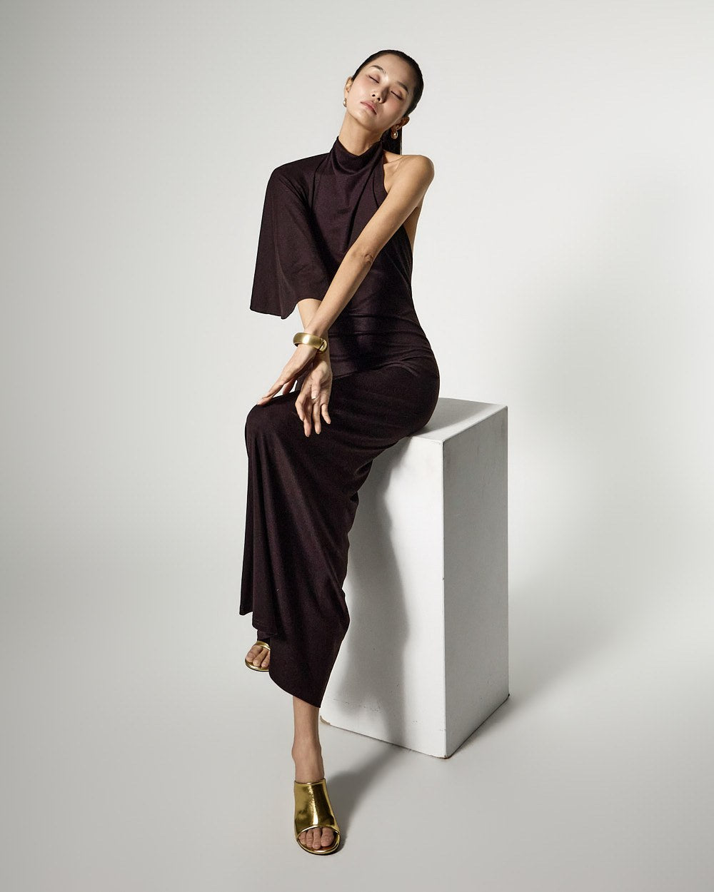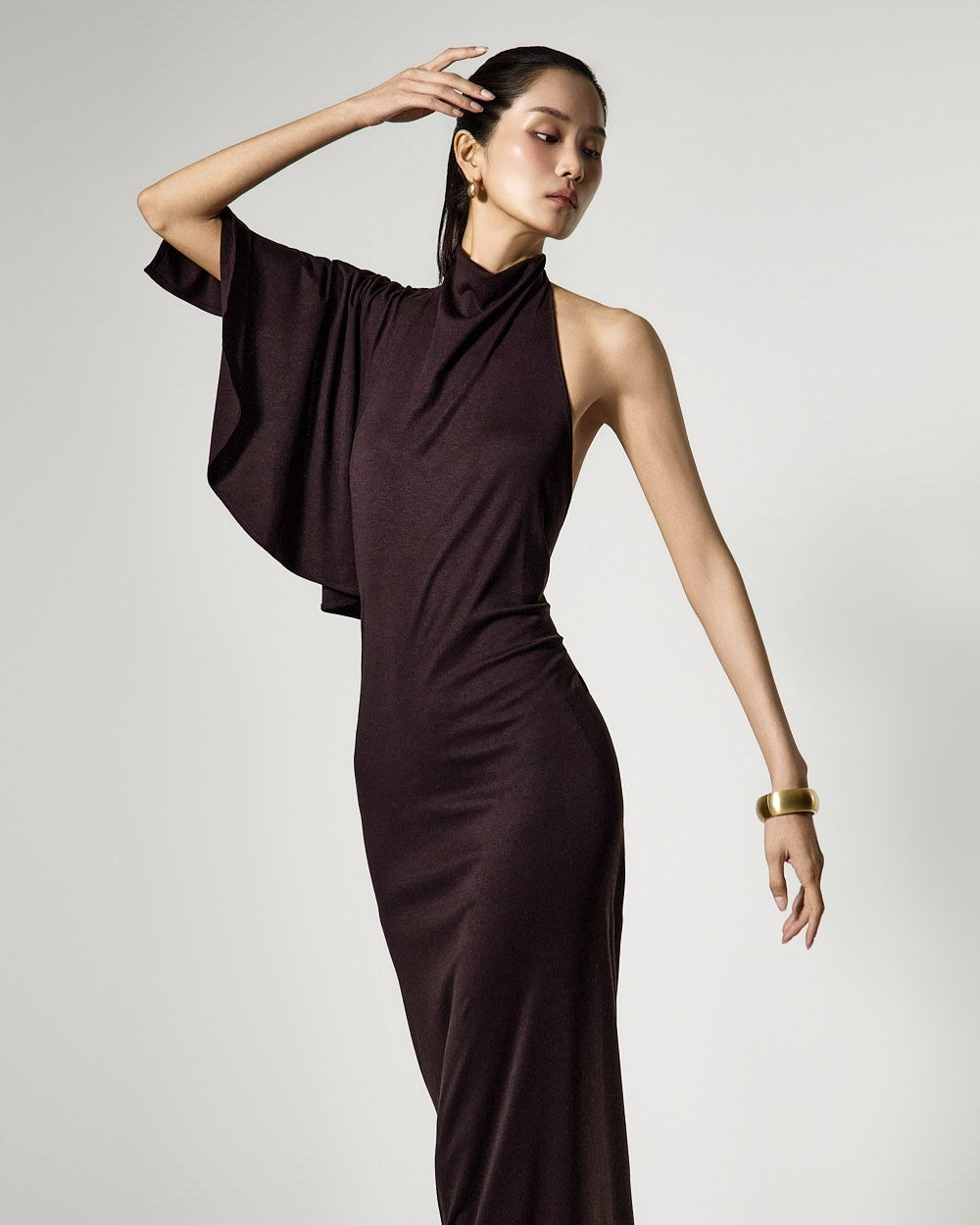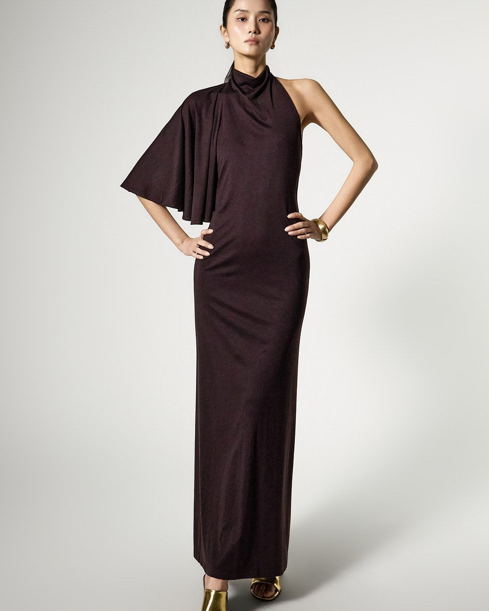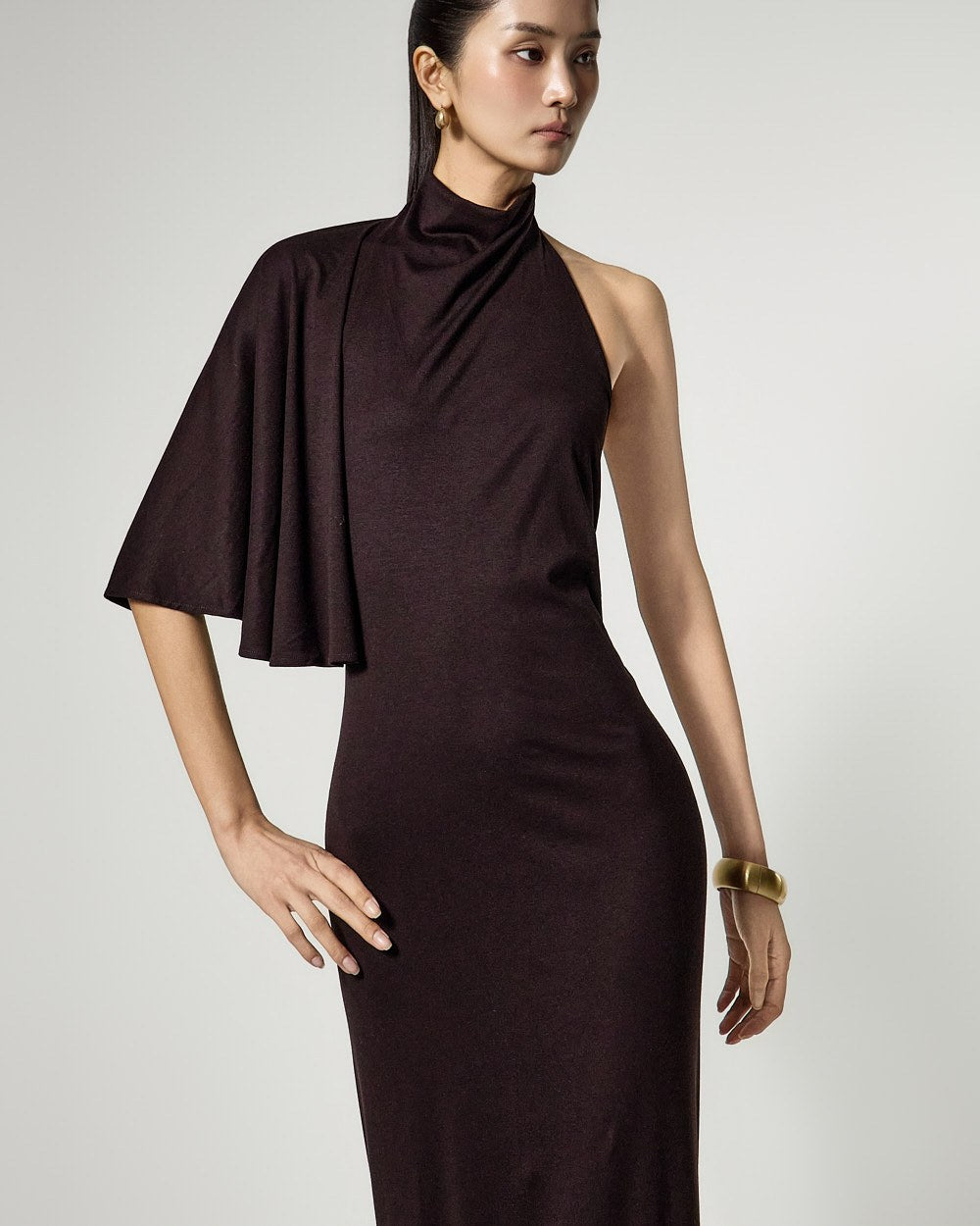 覆盖单肩的不对称细节增添了独特而潮流的亮点。
