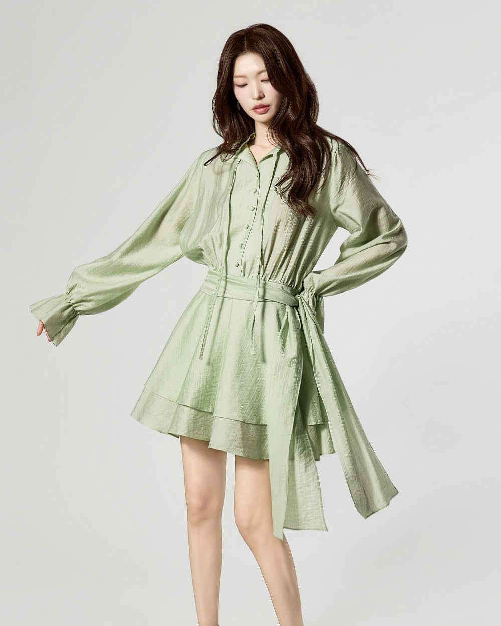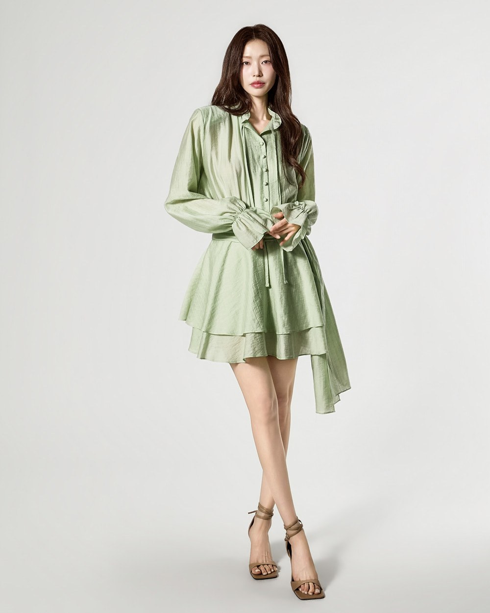 这是一款充满女性气息的吊带褶皱连衣裙。