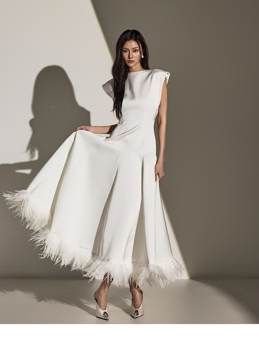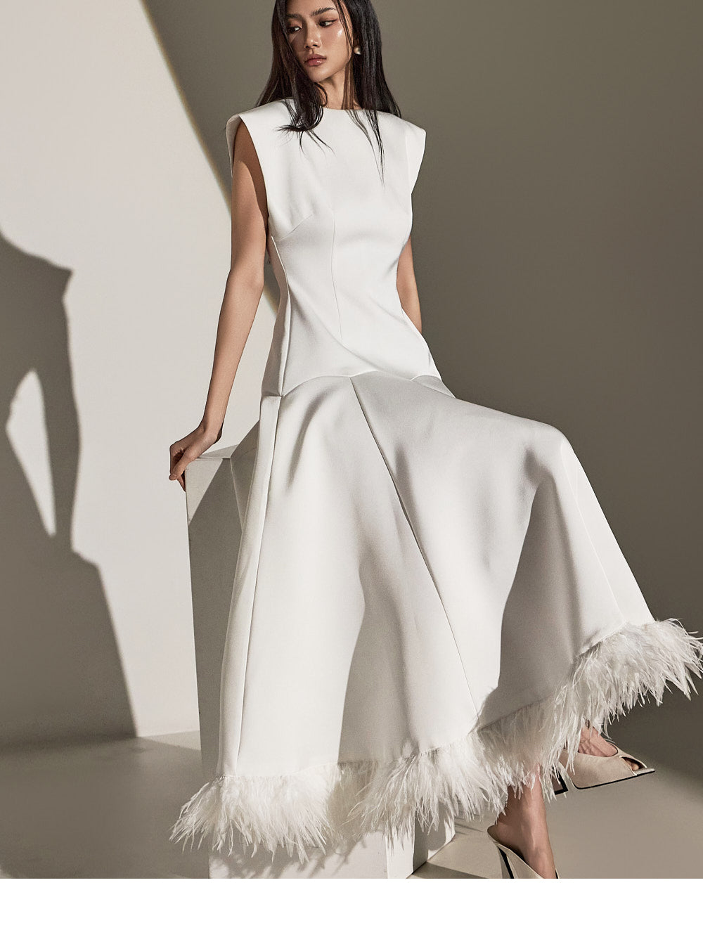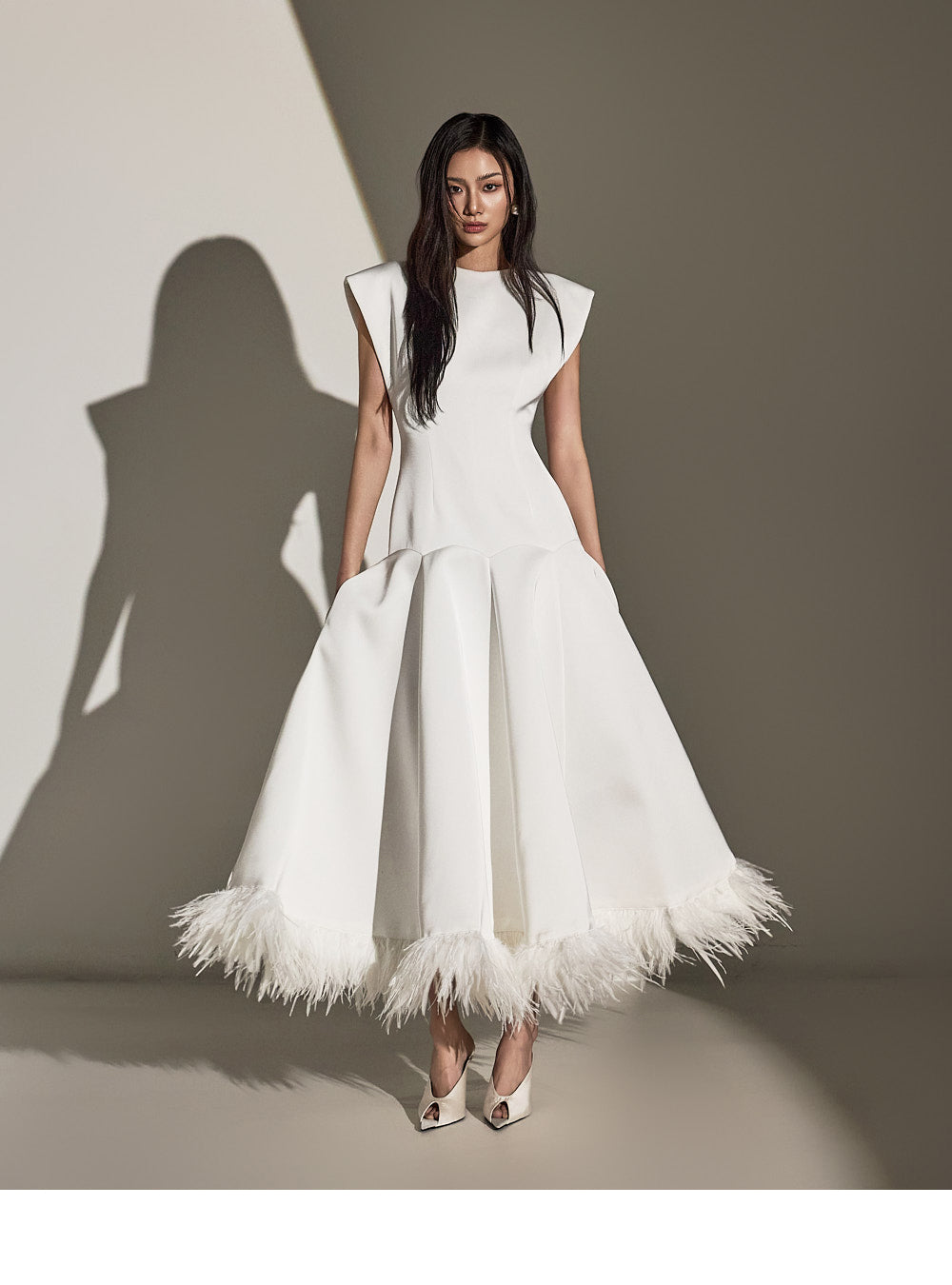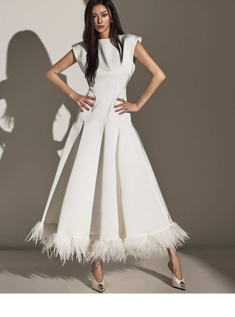 纤细的腰线与喇叭形的下摆形成鲜明对比,??