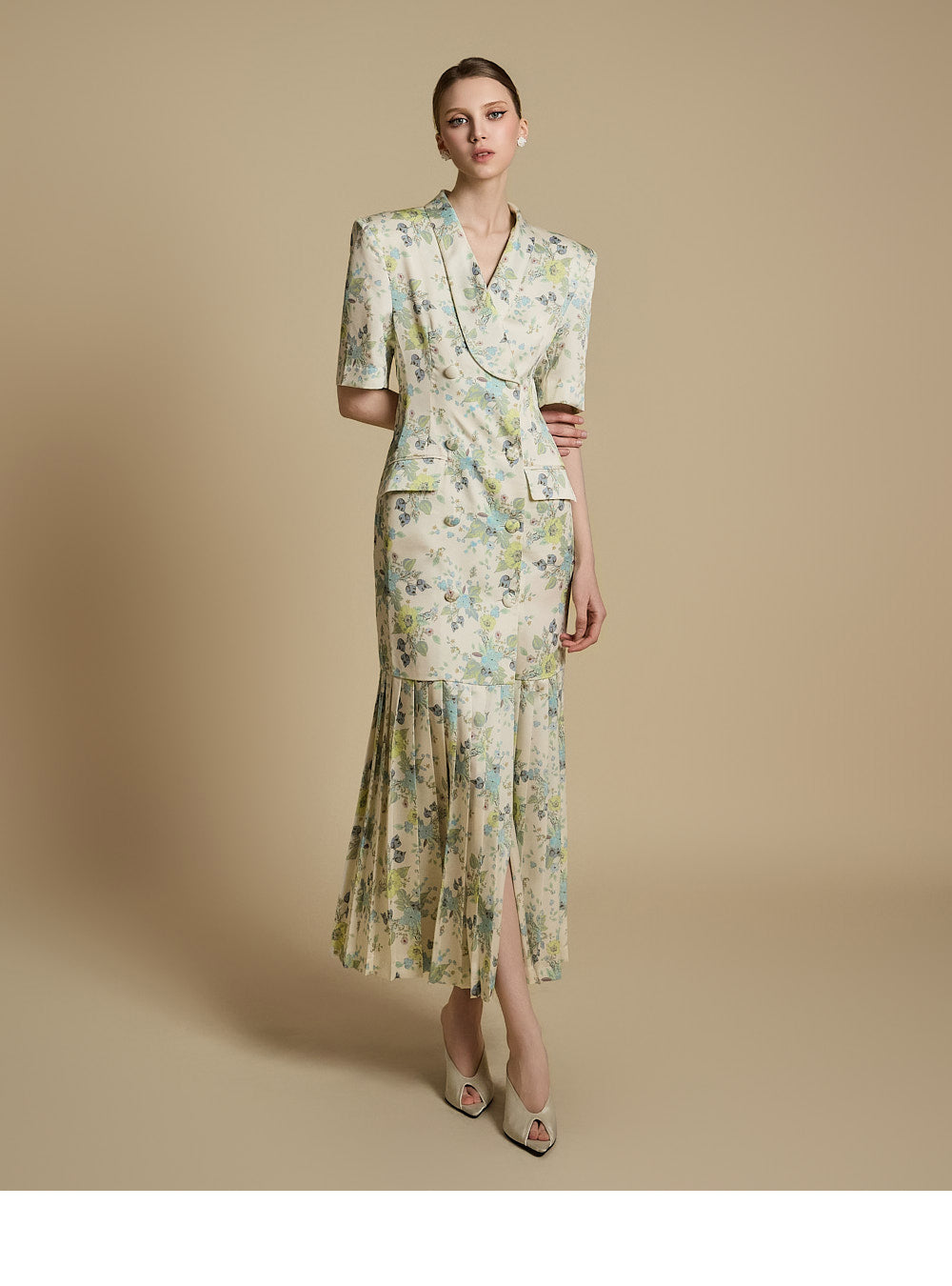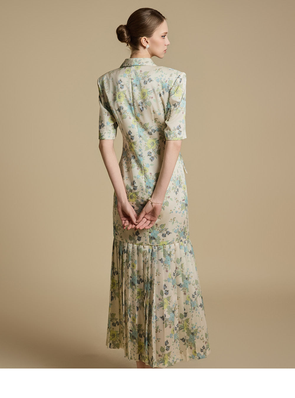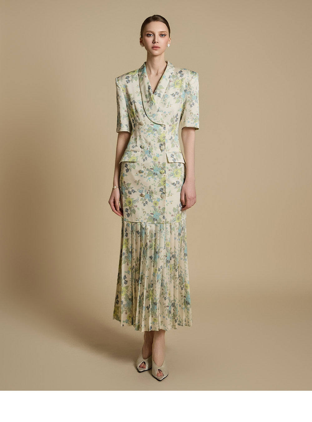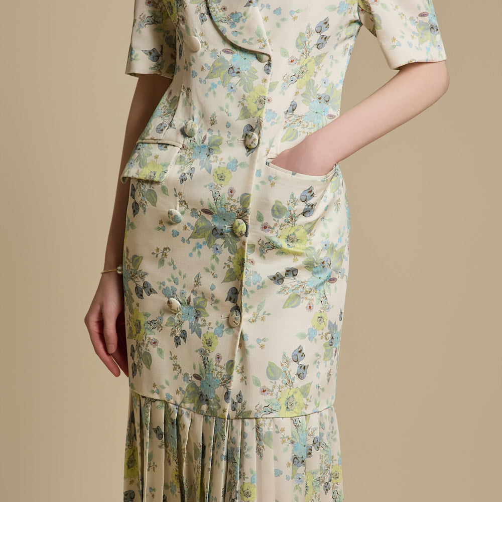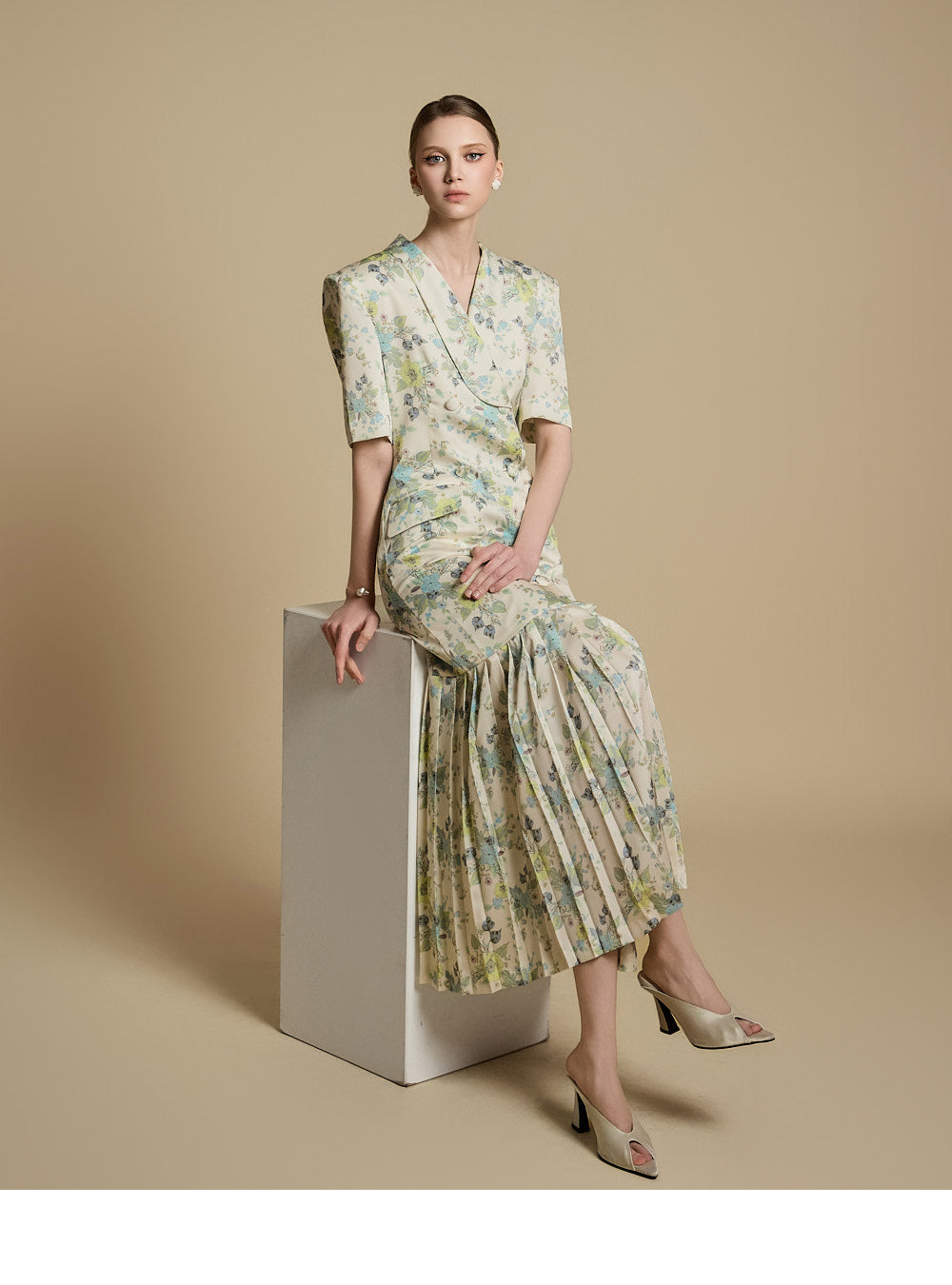 这款优雅的花卉褶皱连衣裙外观精致而时尚。