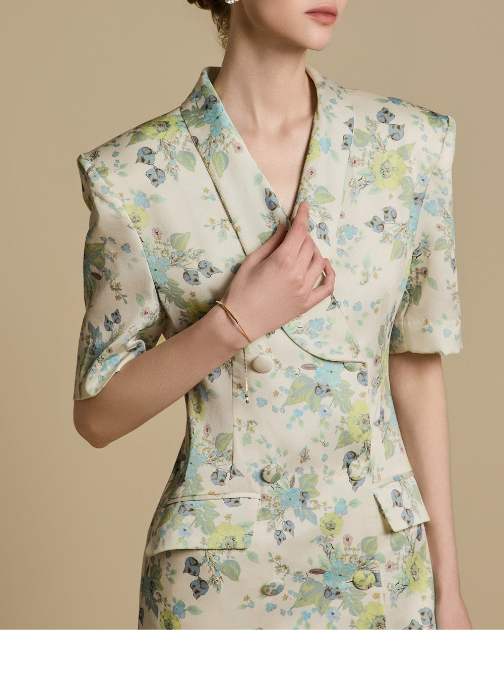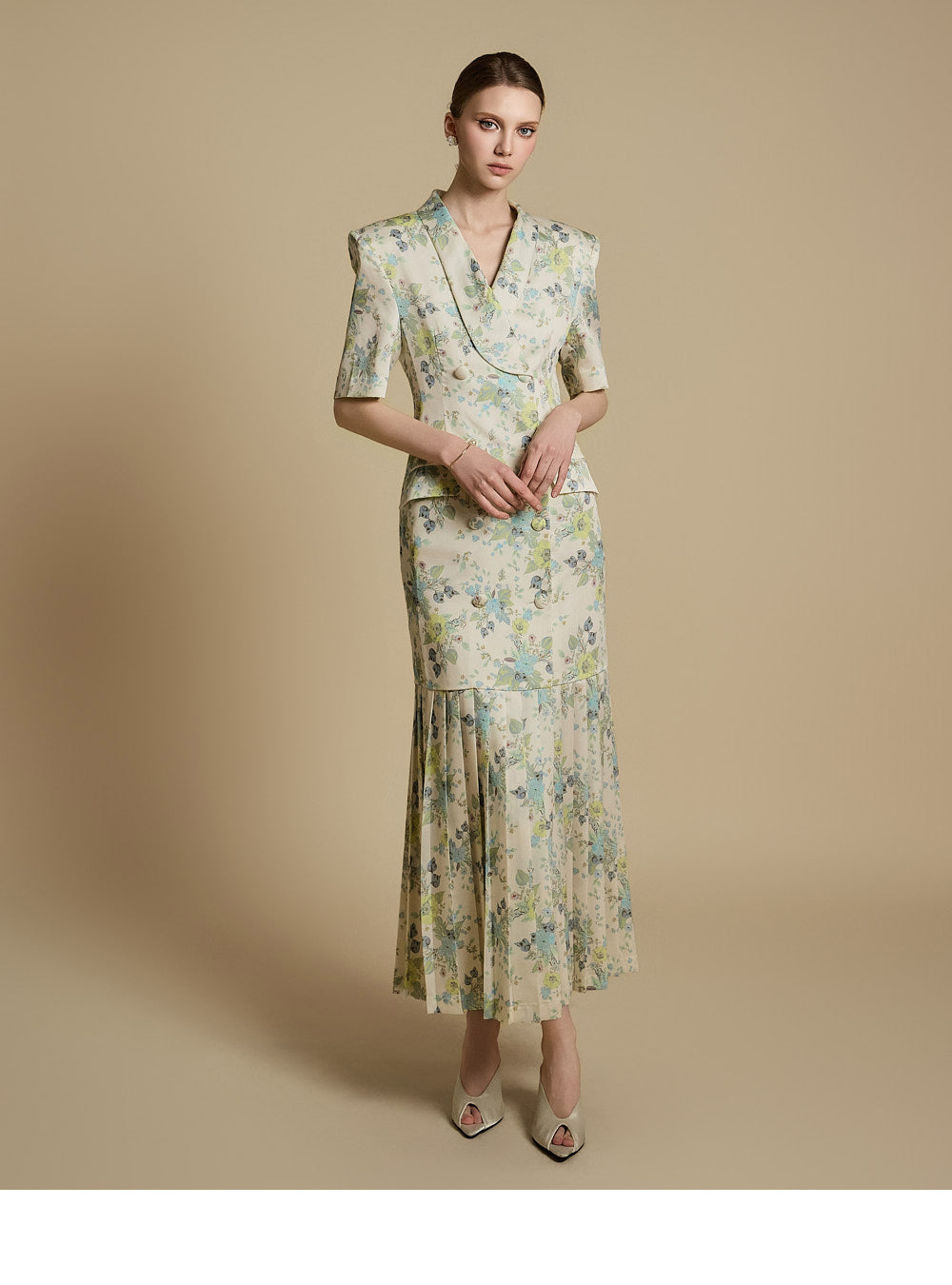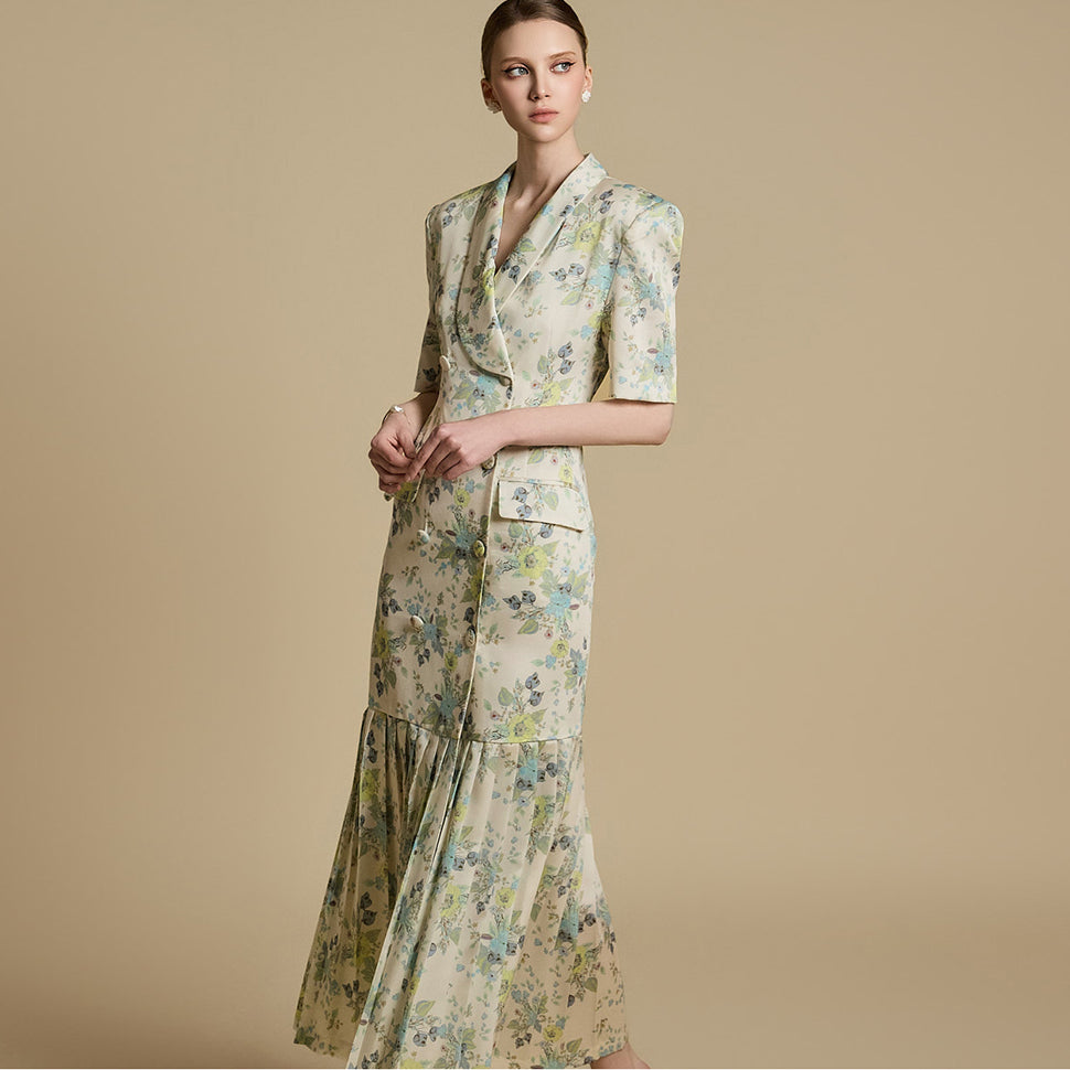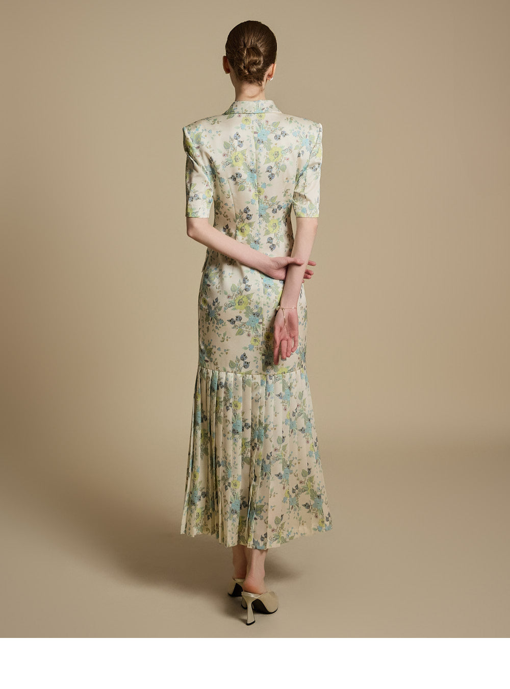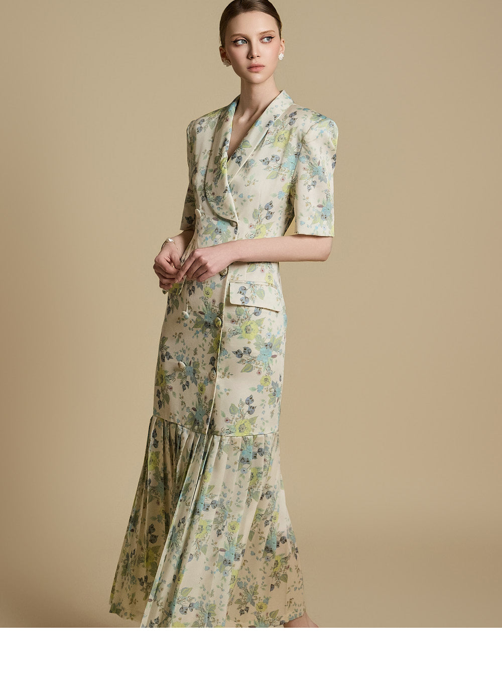 这款优雅的花卉褶皱连衣裙外观精致而时尚。