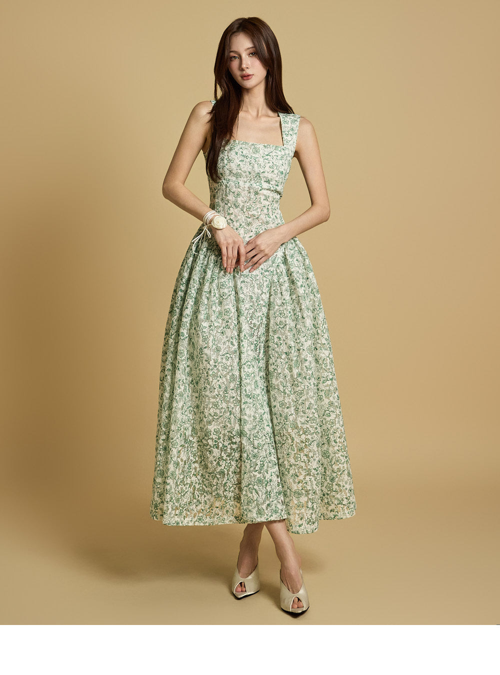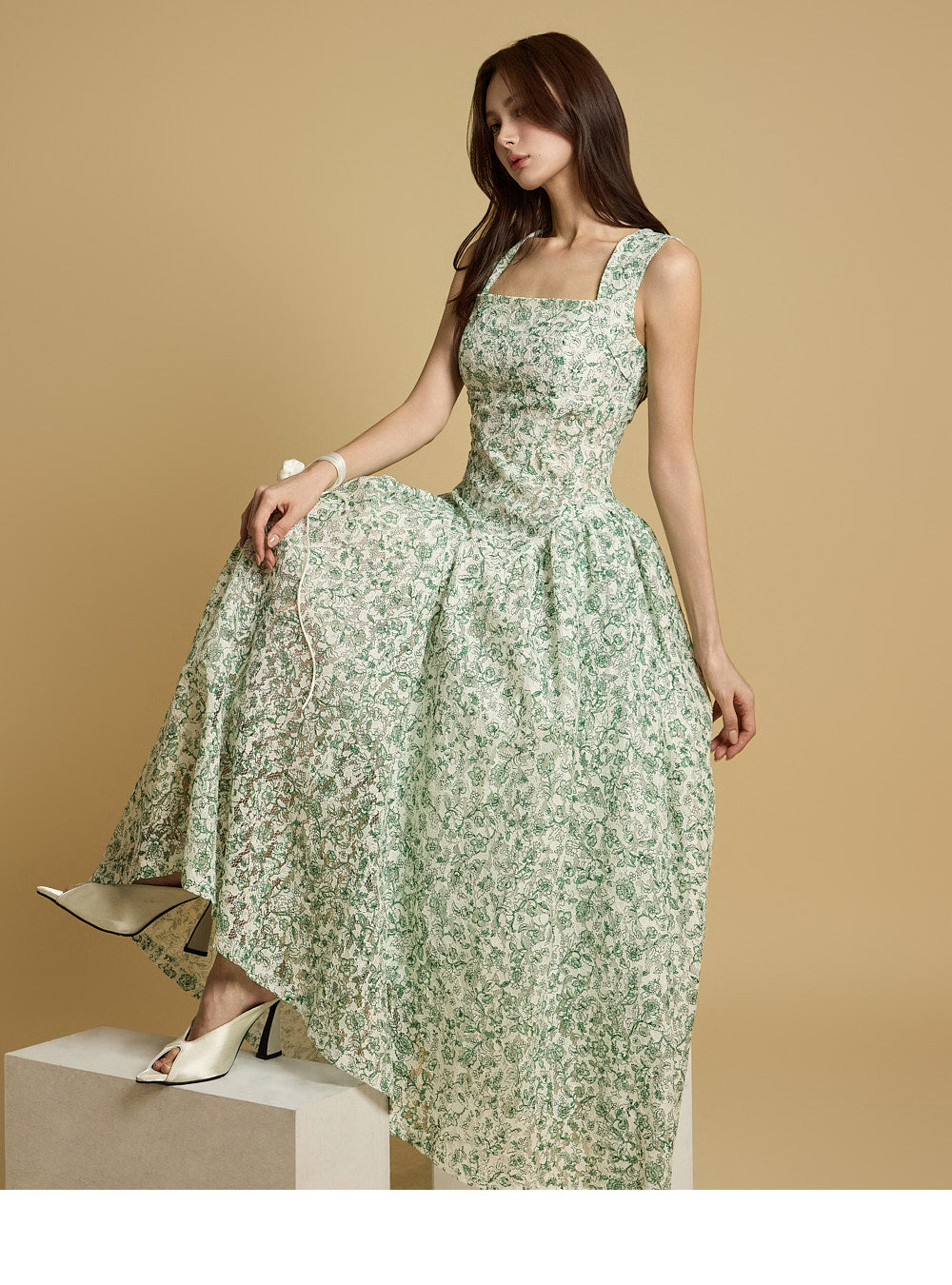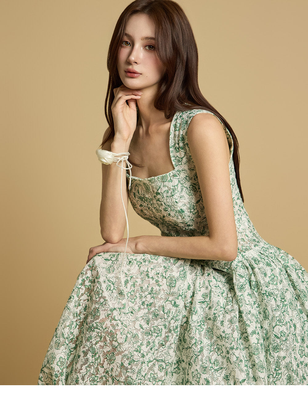 褶皱蕾丝连衣裙散发出可爱的气息。