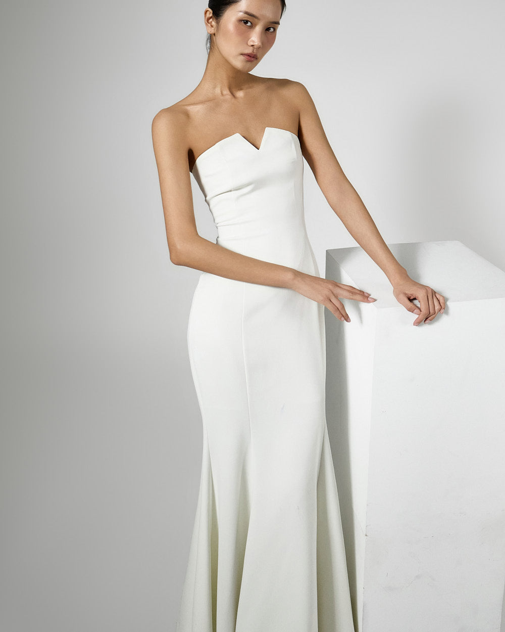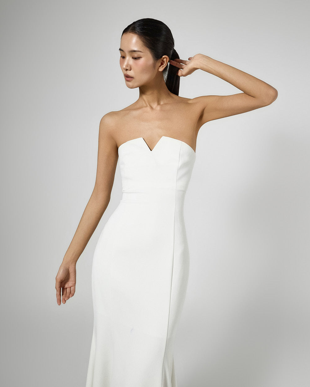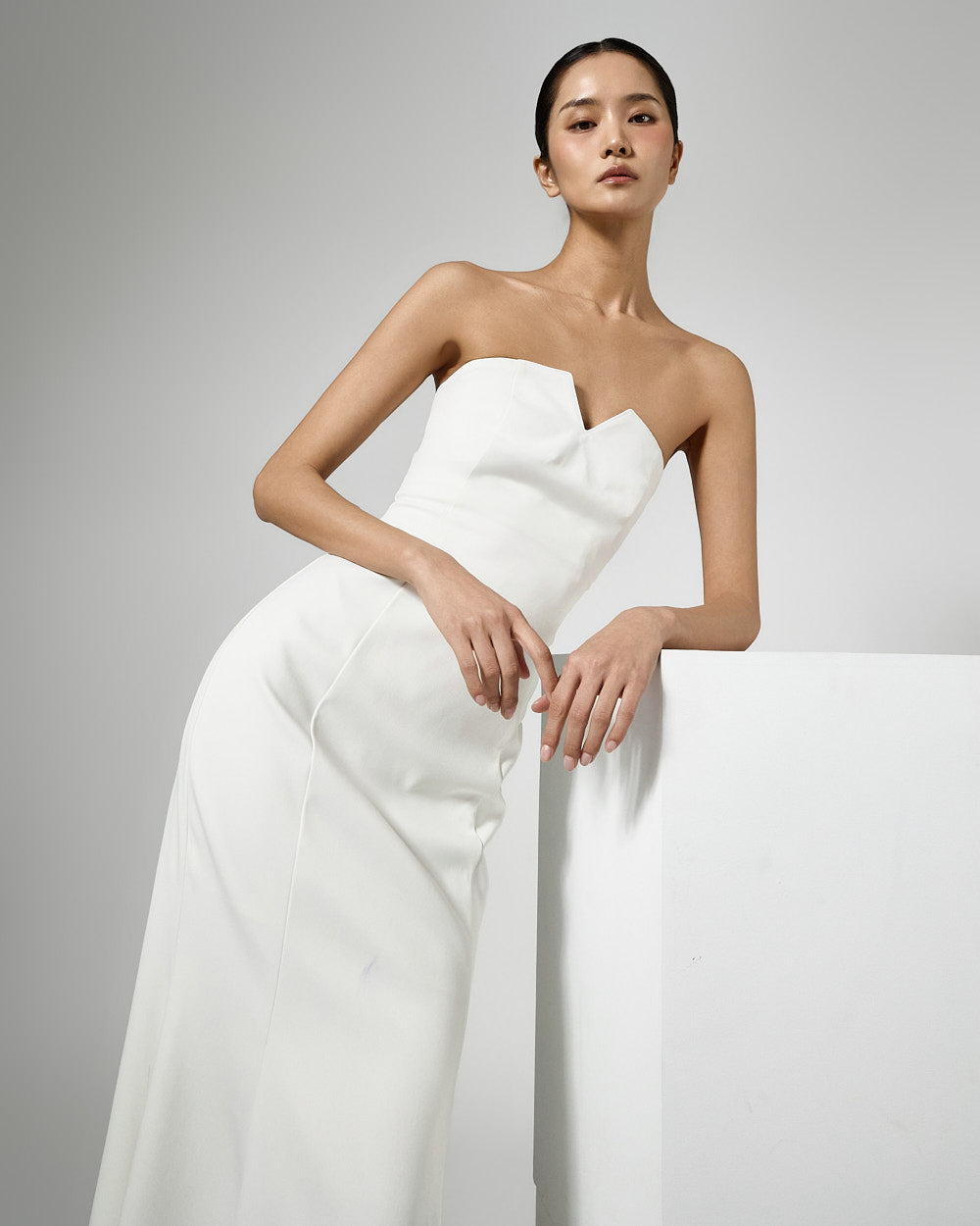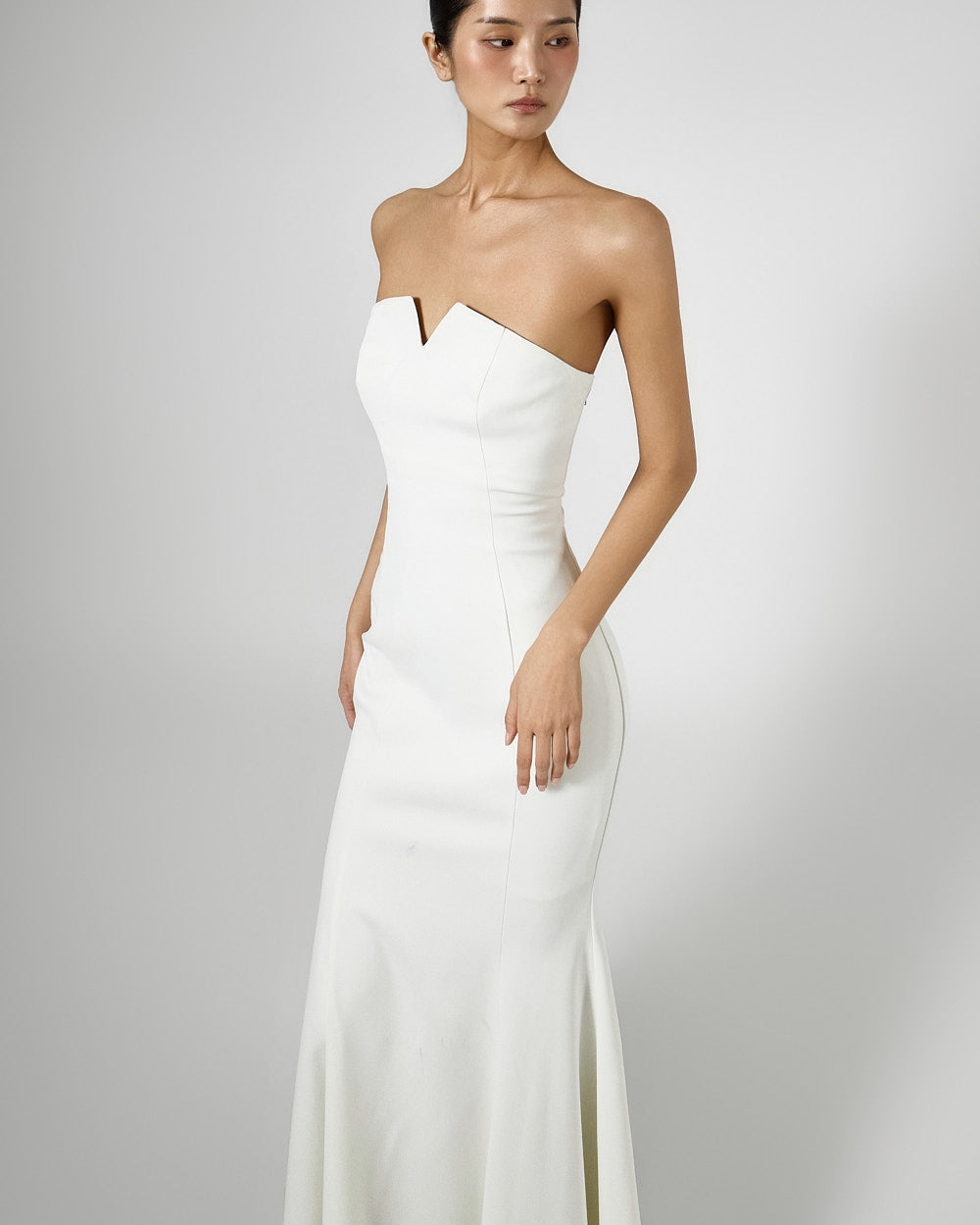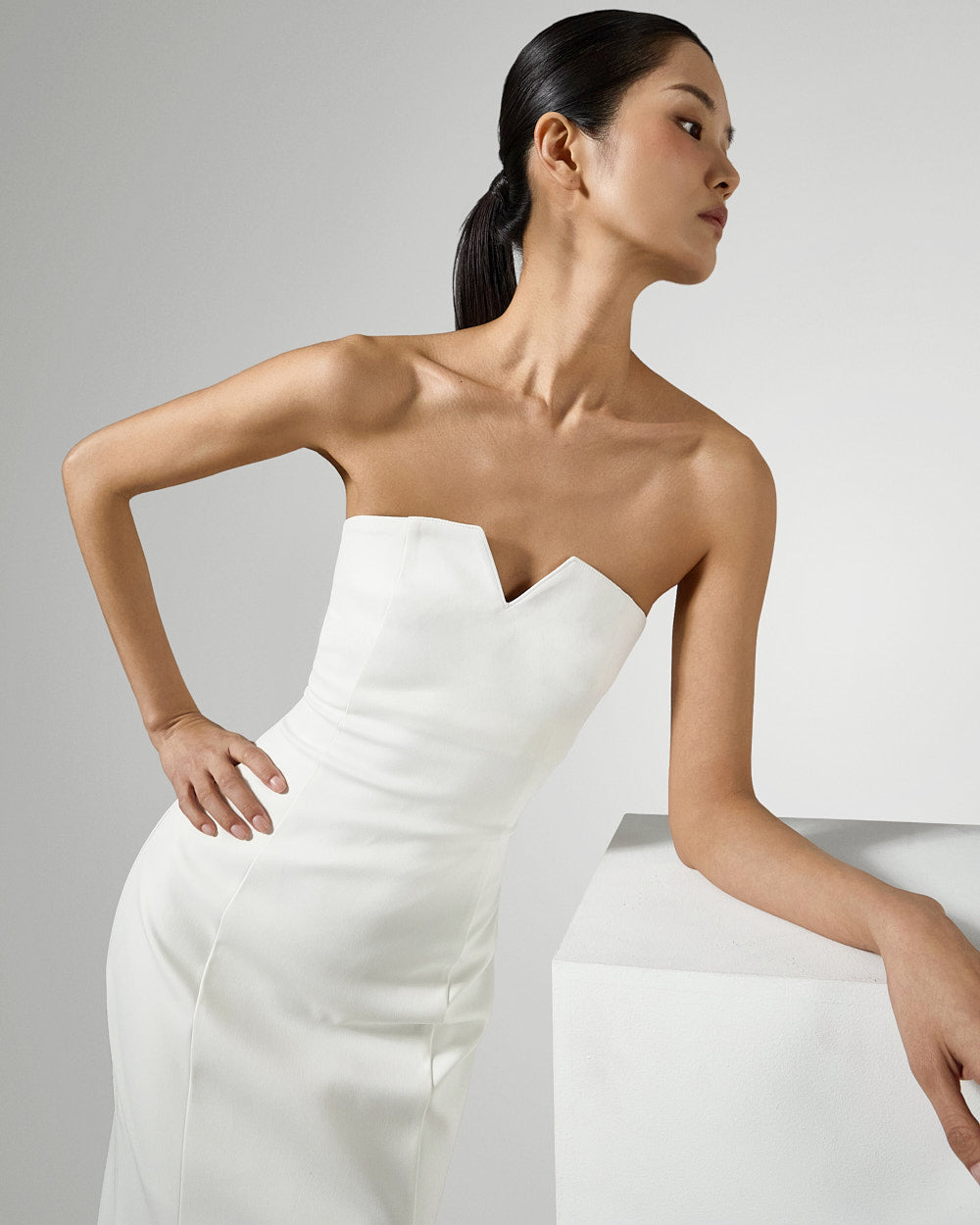 The tube top design neatly highlights the collarbone,