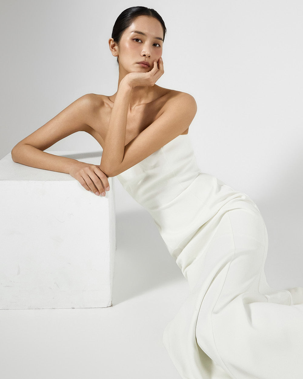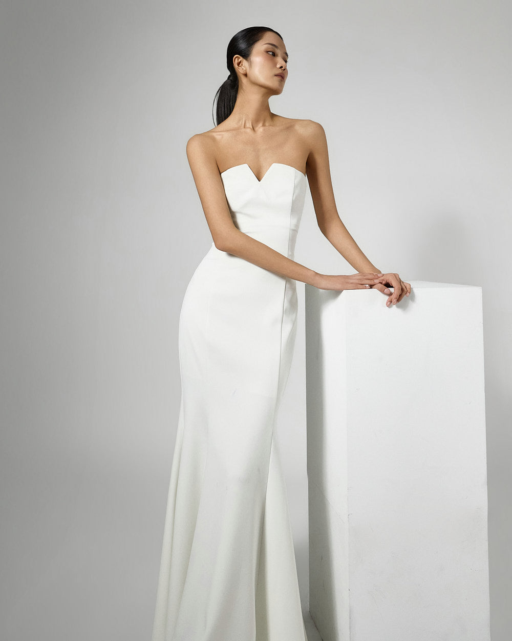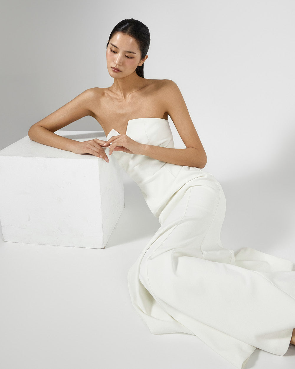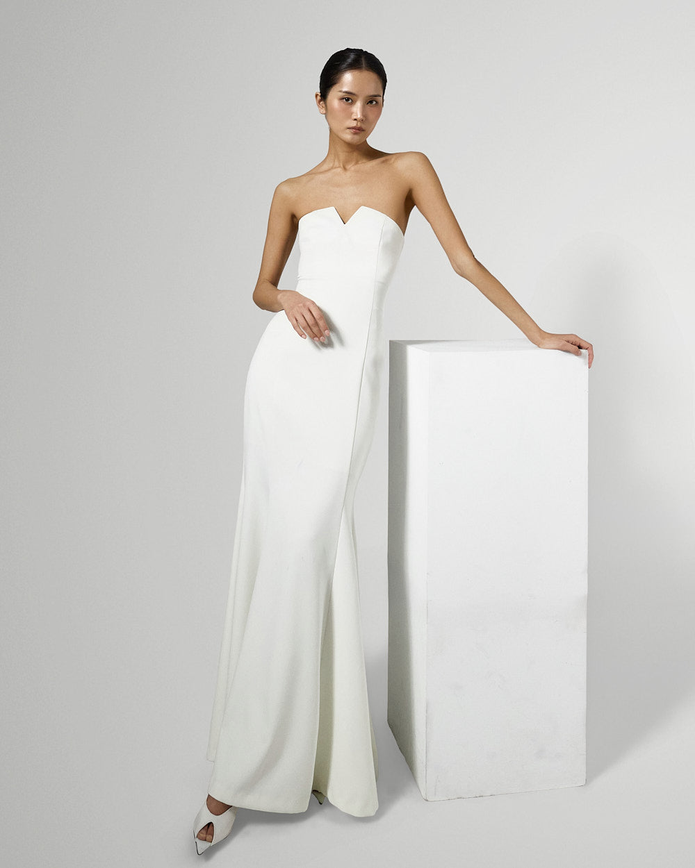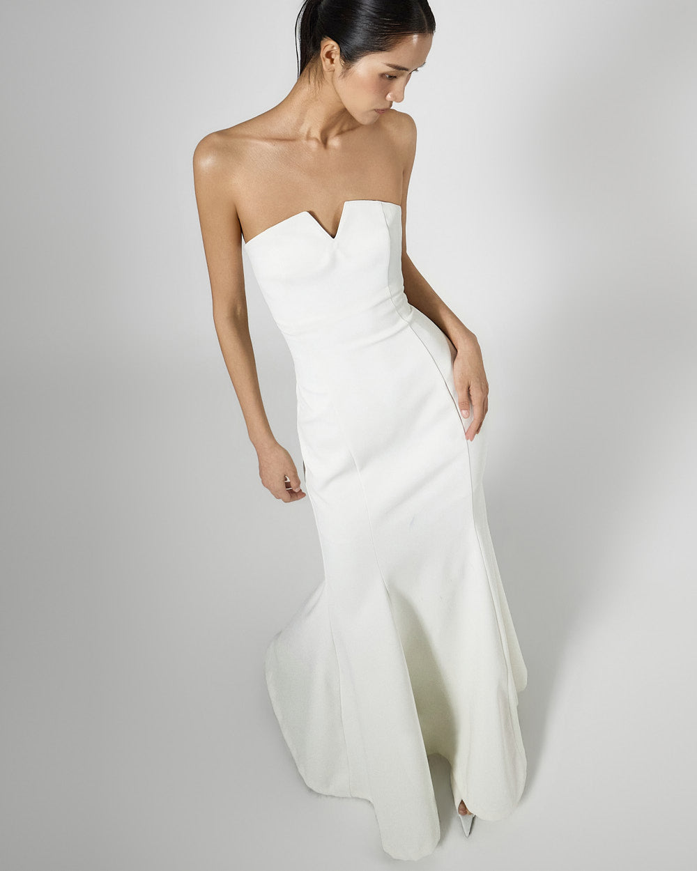 The tube top design neatly highlights the collarbone,