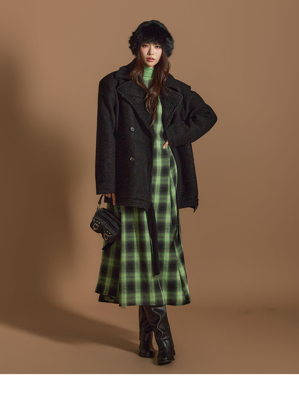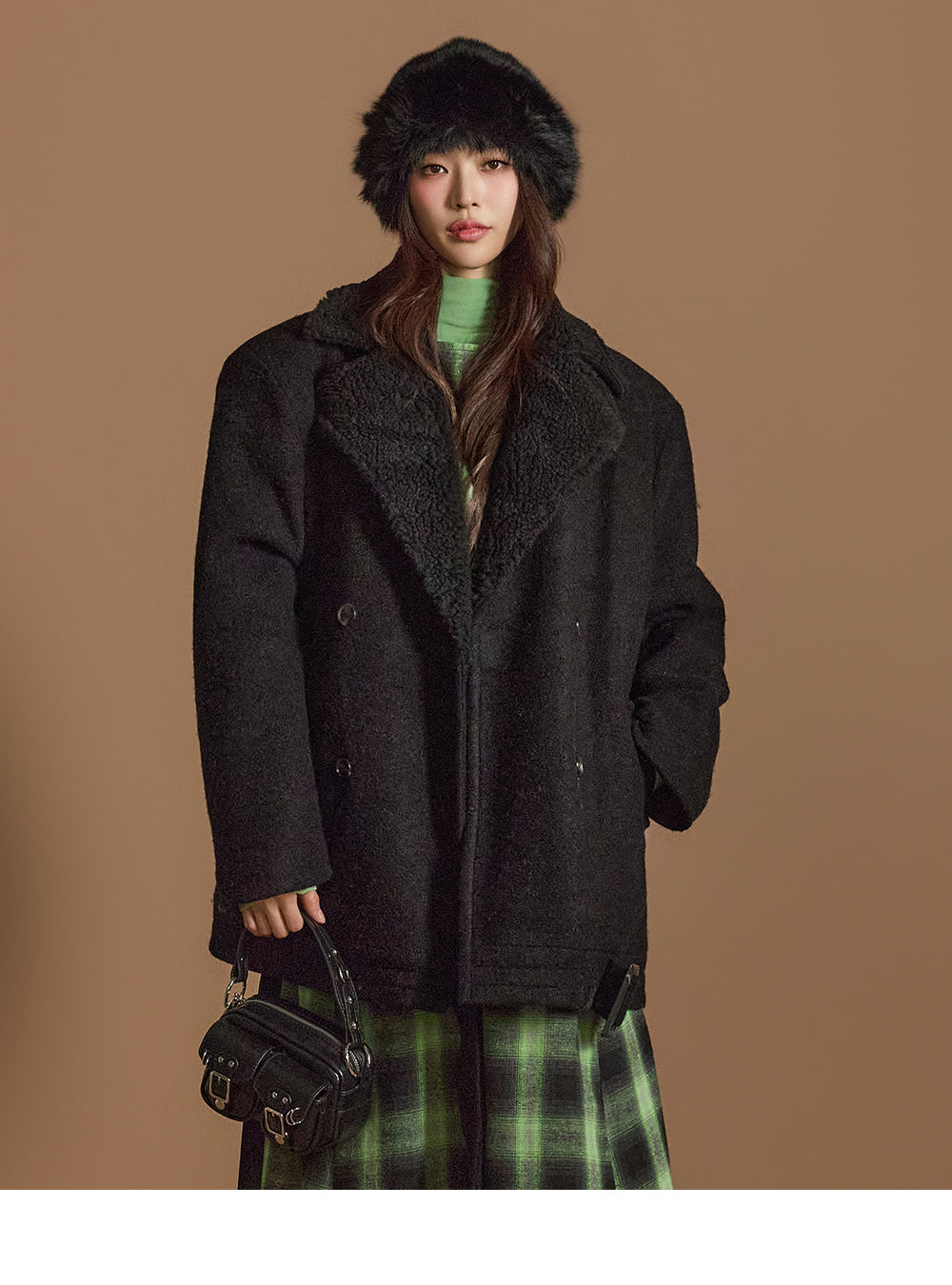 采用高领设计,凸显精致的领口